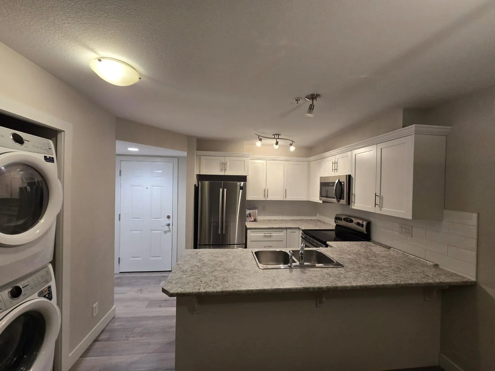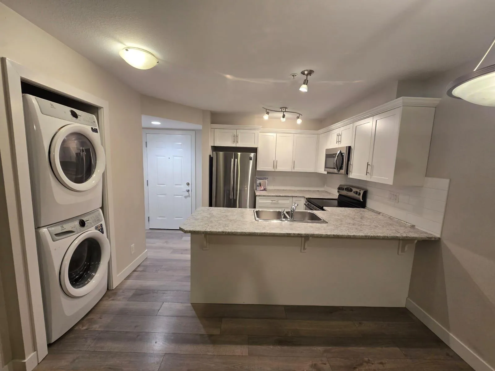 Competitively priced condo offering nearly 700 sqft with 1 bedroom plus a spacious den that can easily serve as a second bedroom, office, play area, or flex space. Bright and airy with large windows, this home features an updated white kitchen with modern appliances, full-sized washer/dryer, and refreshed common areas with new paint, flooring, and trim. Located just steps from the vibrant District 1881 with its shops, cafes, and restaurants, this rental- and pet-friendly building includes secure underground parking, making it an ideal opportunity for first-time buyers or investors. (id:27476)
