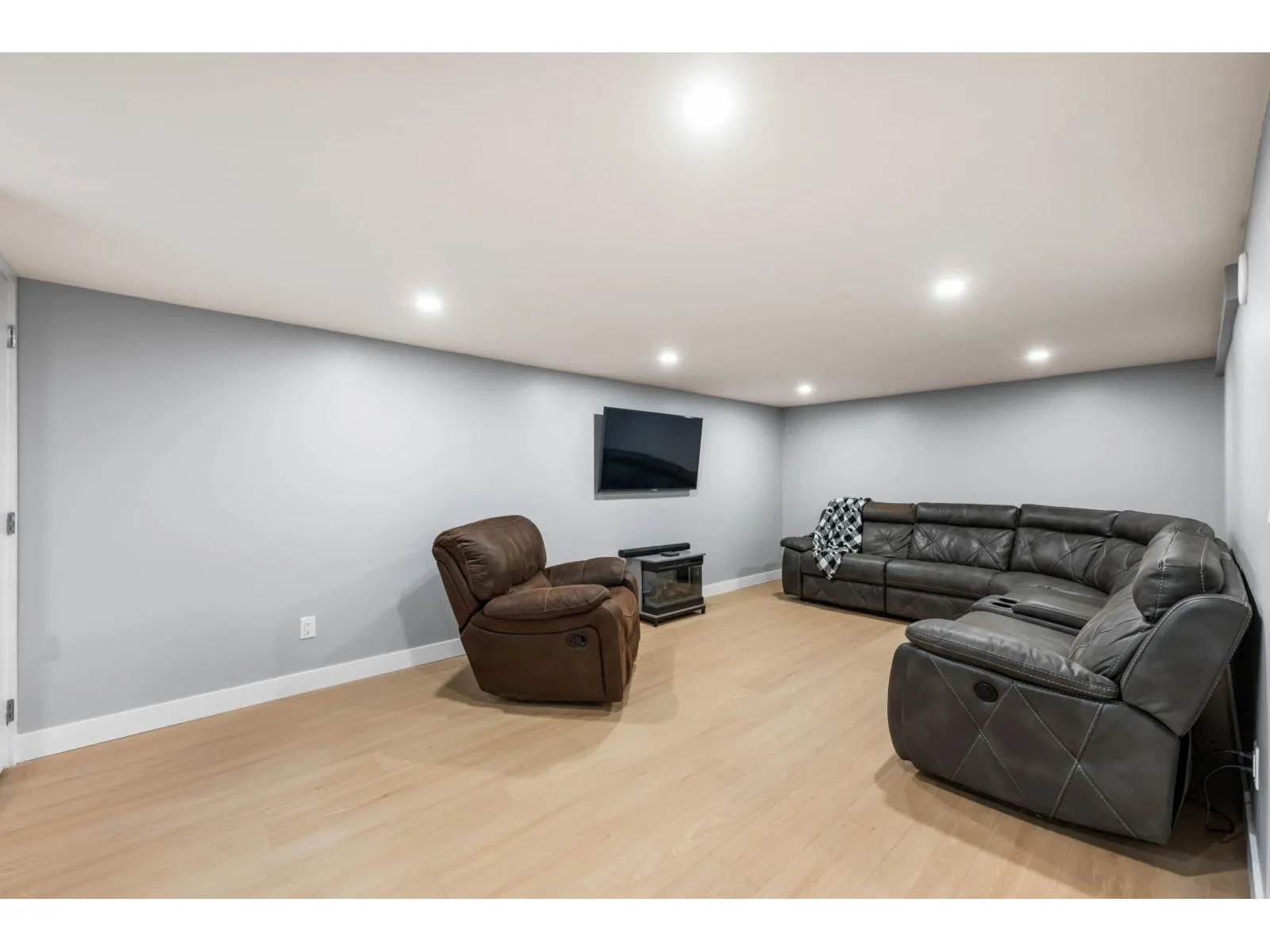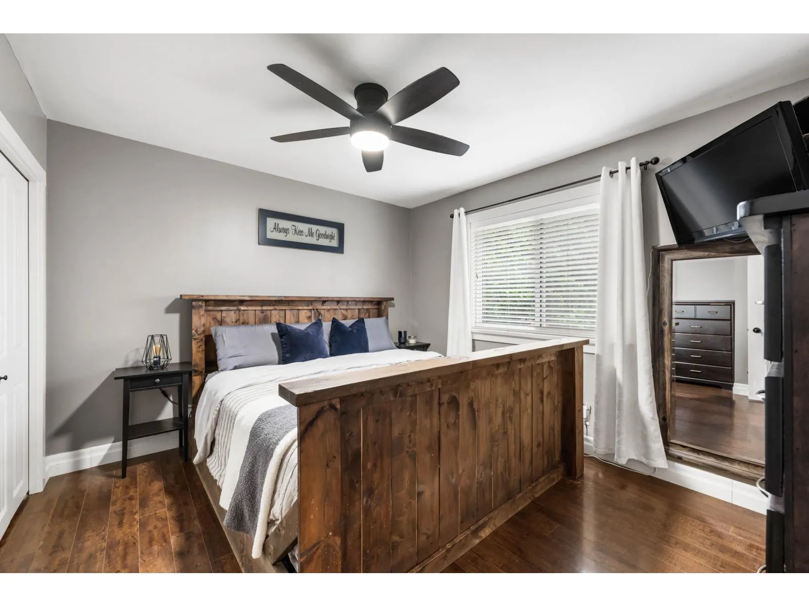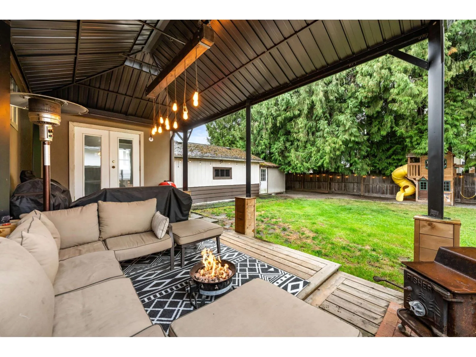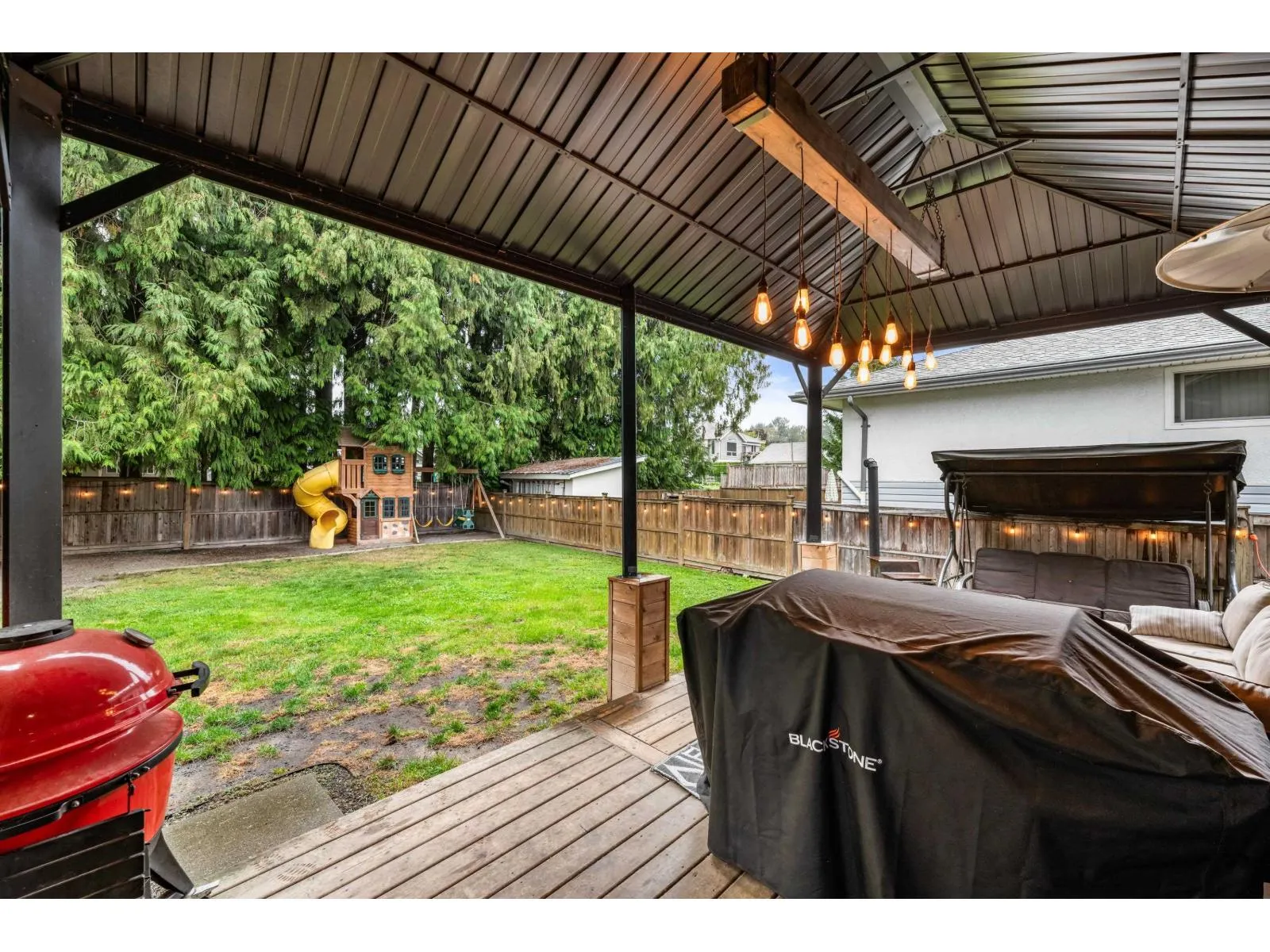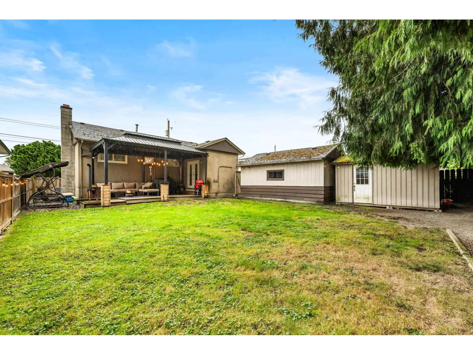 Perfect for first-time buyers & young families! This charming move-in ready home sits on a quiet, family-friendly cul-de-sac just mins from vibrant Downtown Chilliwack. The large lot features fresh landscaping, new fencing, a patio, gazebo & playset, w/ mature trees for privacy & curb appeal galore. Inside, the bright main floor offers a spacious living room, open dining area & refreshed white kitchen w/ subway tile & ample cabinetry. Two generous bedrooms & a fully updated 4-pc bath complete the level. Extensive professional upgrades include new pot lighting, fixtures, appliances, hot water tank, AC, bathroom vanities, finished basement & even an integrated air purifier. Detached garage adds storage, workshop, or parking flexibility. A stylish starter home w/ all the big updates done! (id:27476)