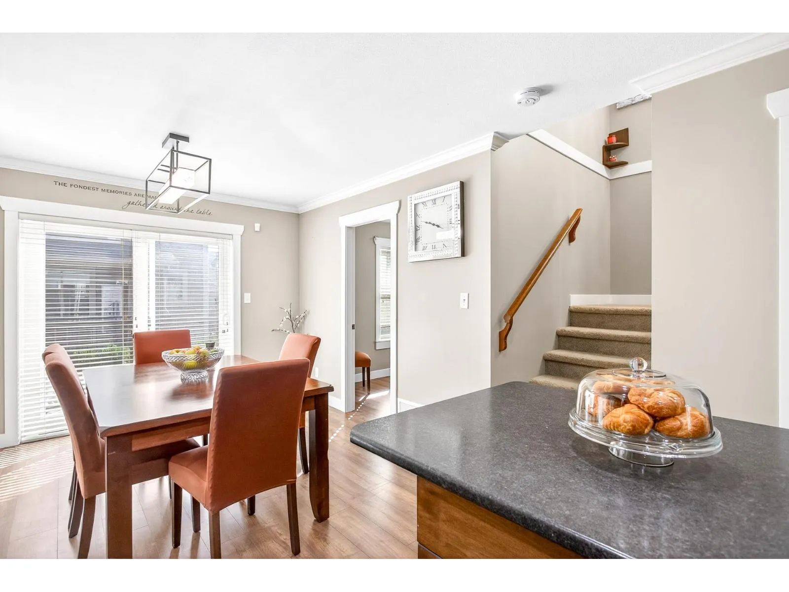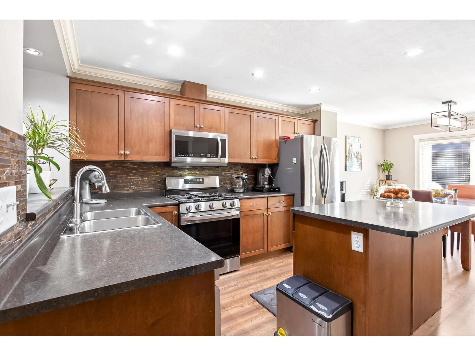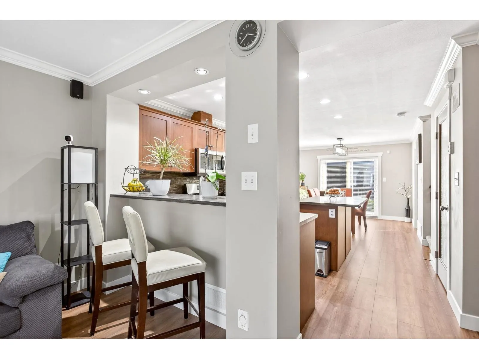 Welcome to Townsend Terrace, a family friendly complex minutes from everything you need. This stunning end unit with A/C and 4 parking sits in a desirable quiet location. This well-kept 4 bed, 3 bath Townhome offers 1,818.00 sqf. The open main floor boasts a bright living room with gas fireplace, laminate floors & a spacious island kitchen with newer stainless steel appliances, ample storage, pantry and adjacent dining leading to a sunny south-facing deck. A den makes a perfect home office. On the third level you'll find a large master w/walk-in closet & 2 bed & 2 full baths & laundry. Lower level offers a recreation room, 1 bedroom (no closet)& powder room, walkout patio, fenced yard w/garden & privacy hedging. Double garage with driveway, security system, BI system Vac. * Pet Friendly* (id:27476)