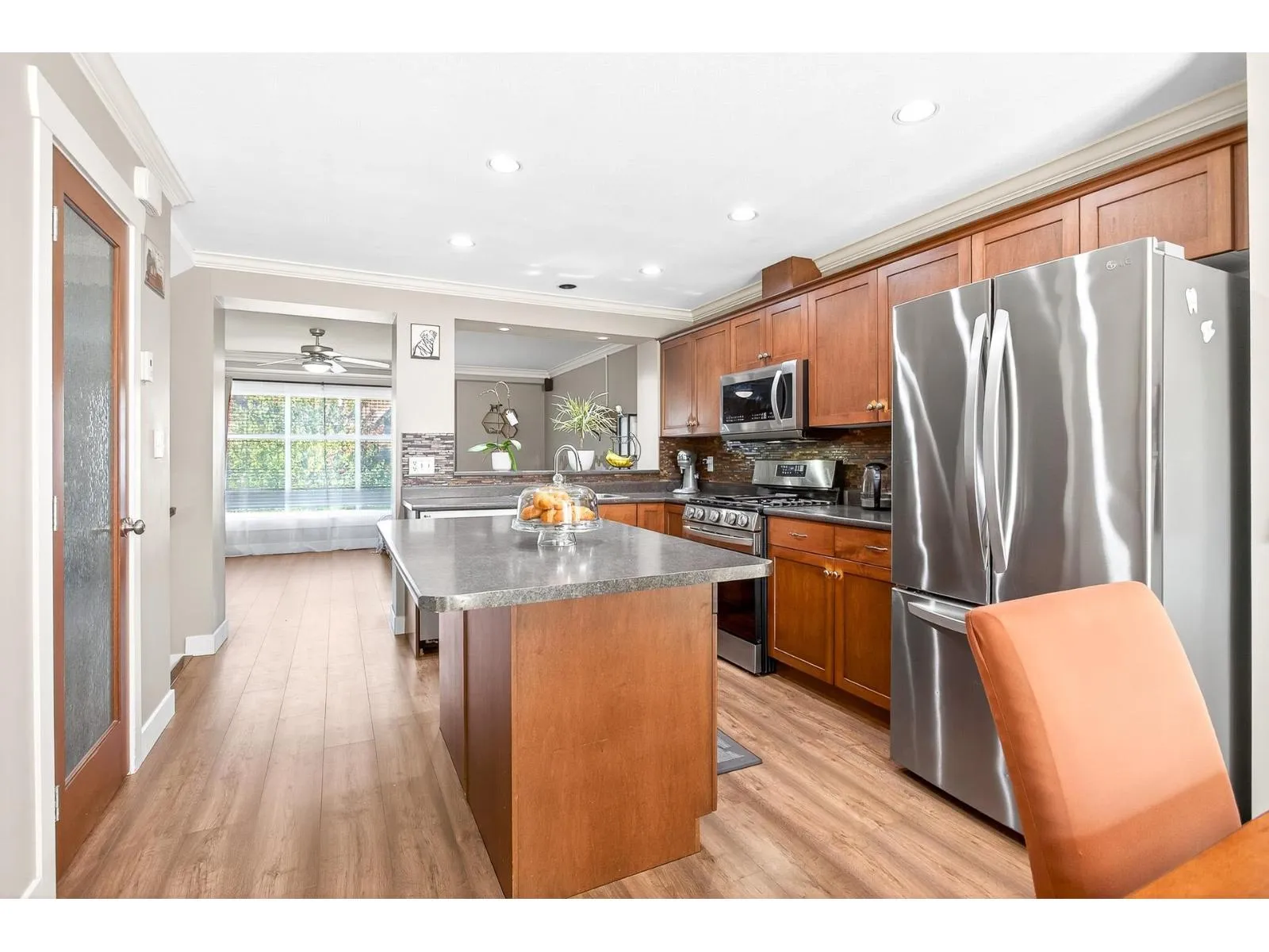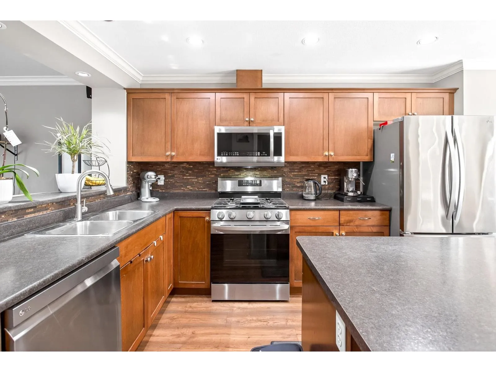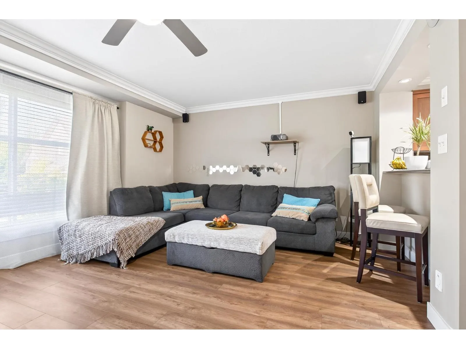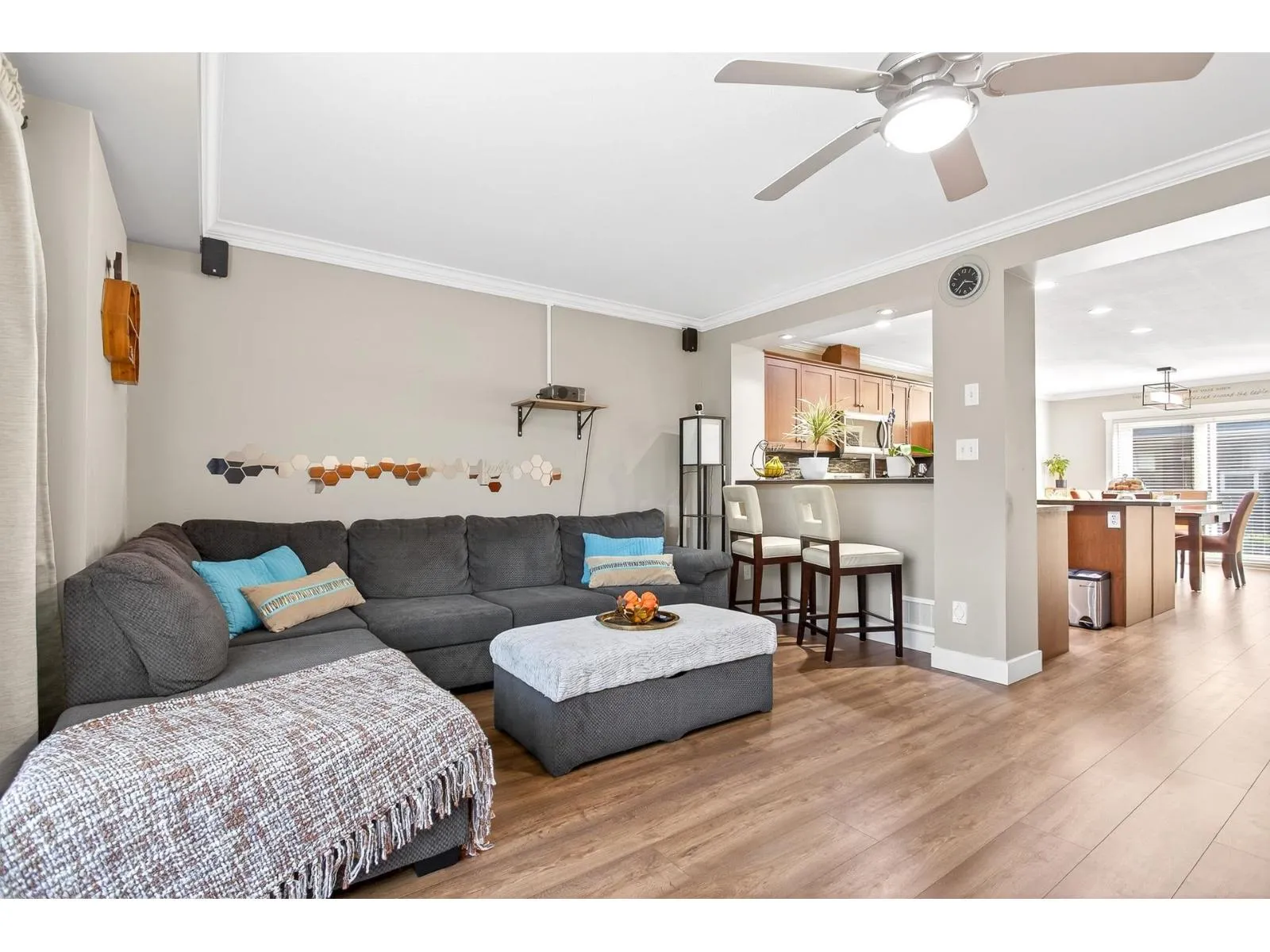 Welcome to Townsend Terrace, a family friendly complex minutes from everything you need. This stunning end unit with A/C and 4 parking sits in a desirable quiet location. This well-kept 4 bed, 3 bath Townhome offers 1,818.00 sqf. The open main floor boasts a bright living room with gas fireplace, laminate floors & a spacious island kitchen with newer stainless steel appliances, ample storage, pantry and adjacent dining leading to a sunny south-facing deck. A den makes a perfect home office. On the third level you'll find a large master w/walk-in closet & 2 bed & 2 full baths & laundry. Lower level offers a recreation room, 1 bedroom (no closet)& powder room, walkout patio, fenced yard w/garden & privacy hedging. Double garage with driveway, security system, BI system Vac. * Pet Friendly* (id:27476)