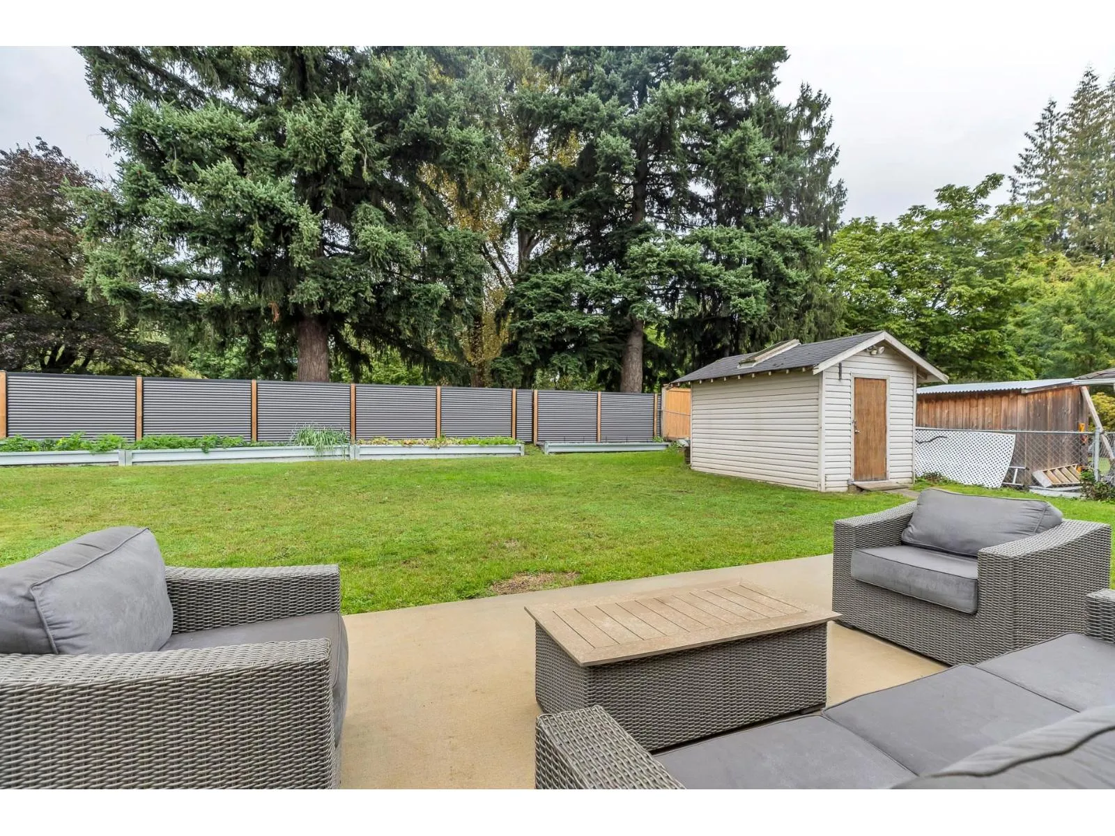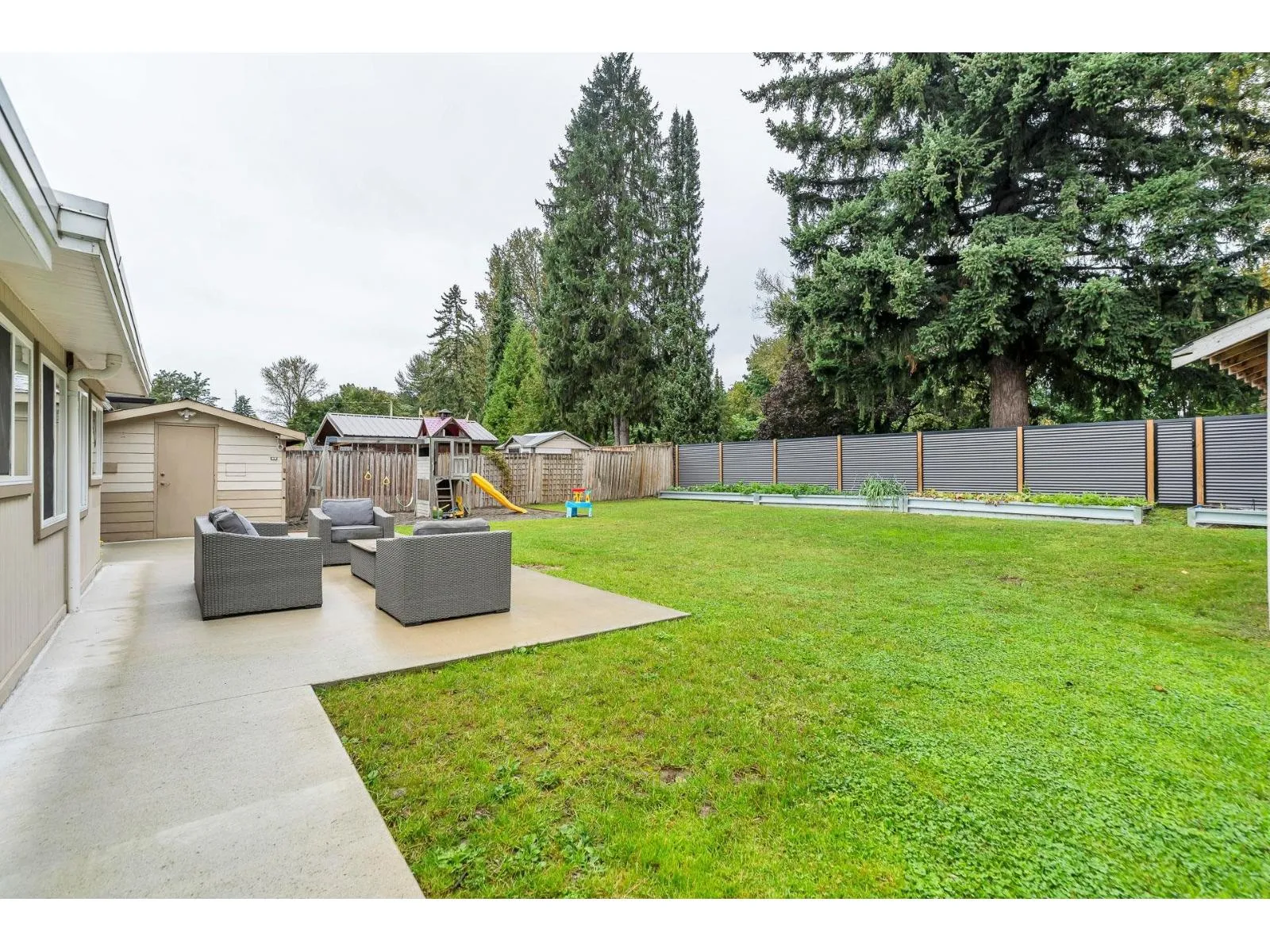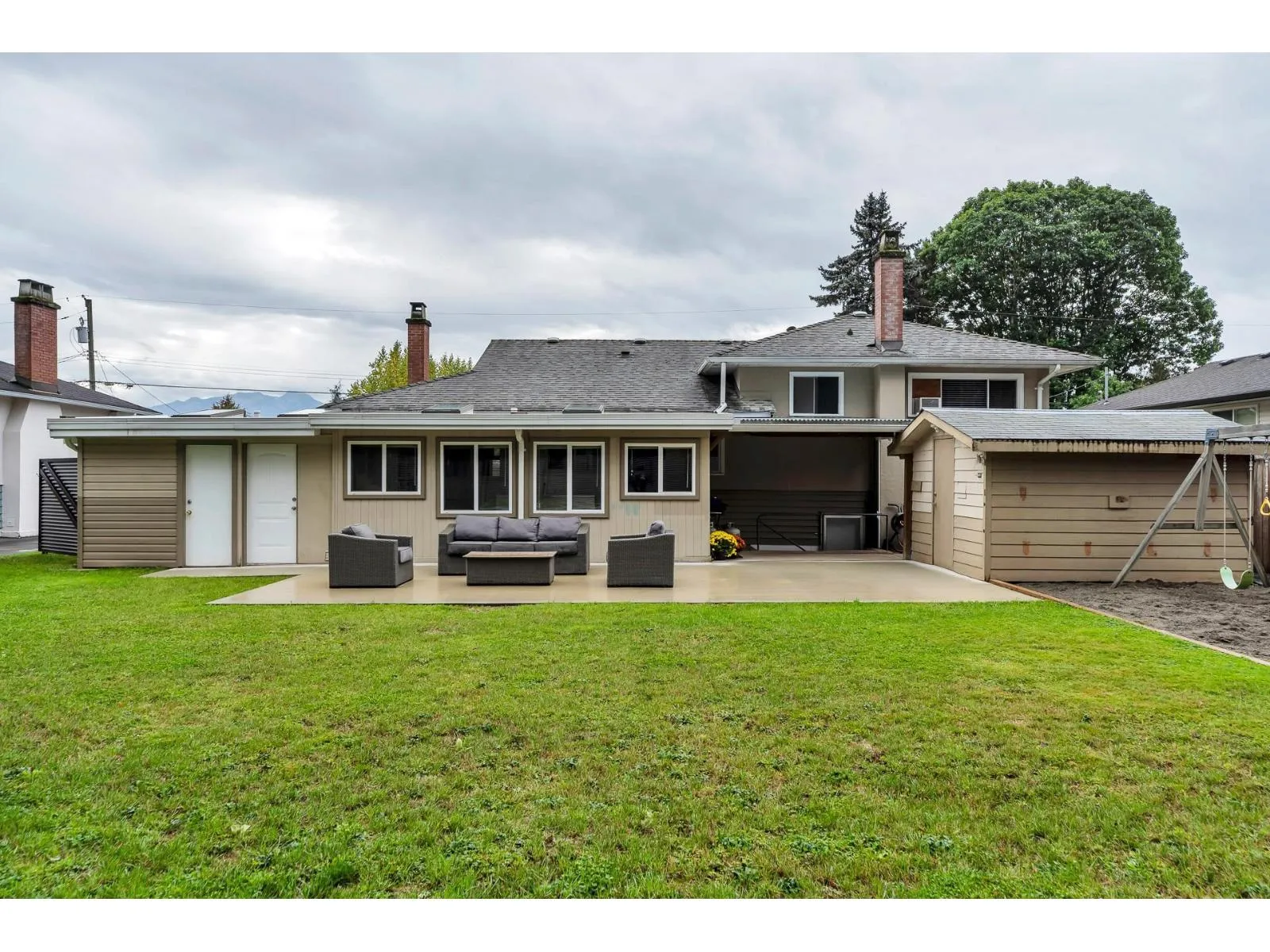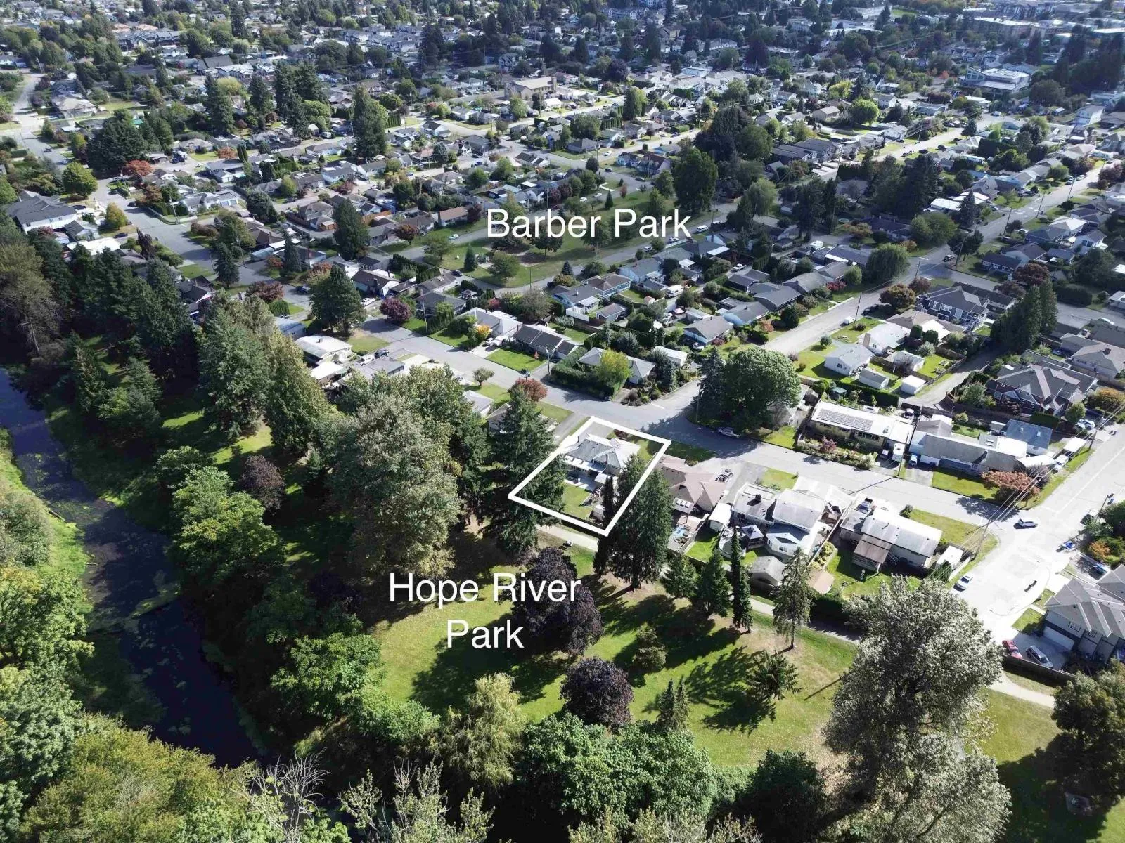 Well kept 3 level split backing Hope River Park/Trail! One of Chilliwack's best locations to live and a great long term investment with future subdivision potential. Updates over the years include: newer roof, new flooring and paint in basement, high efficiency furnace, some vinyl windows, & updated kitchen with plenty of storage and a large island. Upstairs you'll find 3 generously sized bedrooms and a full bathroom. Downstairs features a large rec room( could function as a 4th bedroom) laundry, and its own 3 piece bathroom - suite potential? Solarium (not included in SF) makes a great flex space and has it's own laundry hook-up. Private yard is fenced with 3 storage sheds. New metal garden boxes with automatic irrigation plumbed in, new concrete patio. Great value - book your showing! (id:27476)