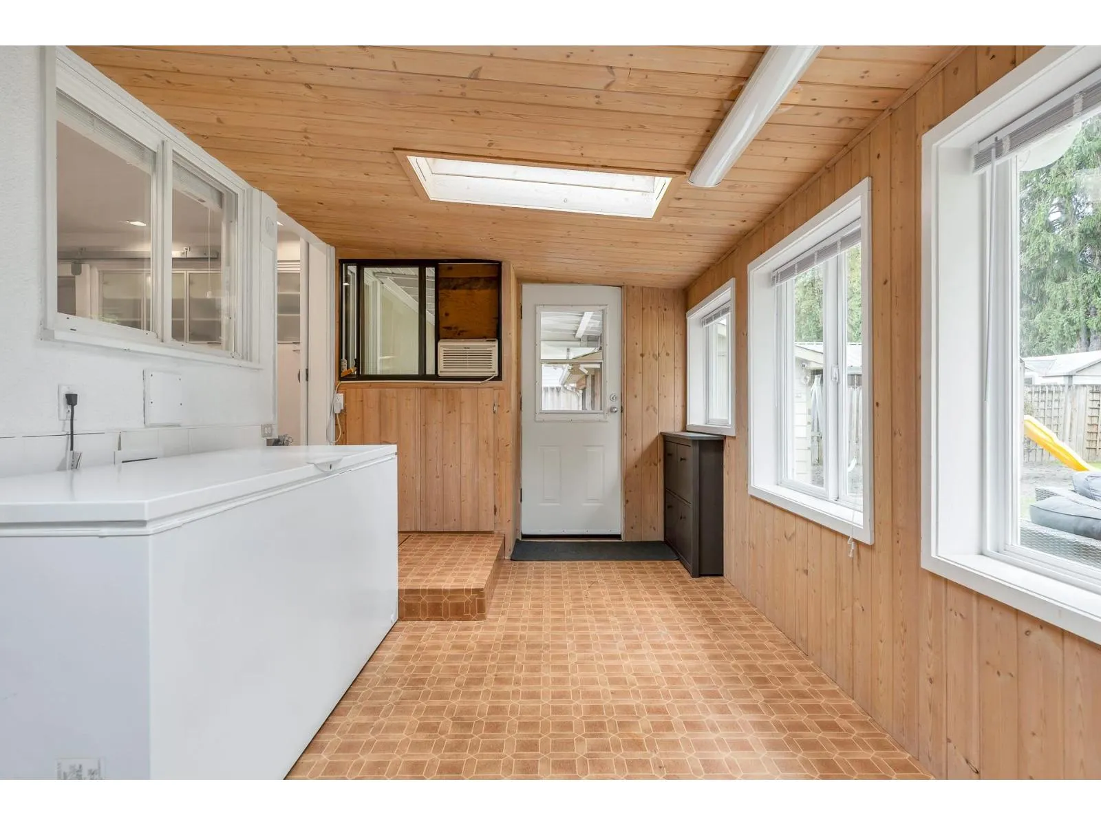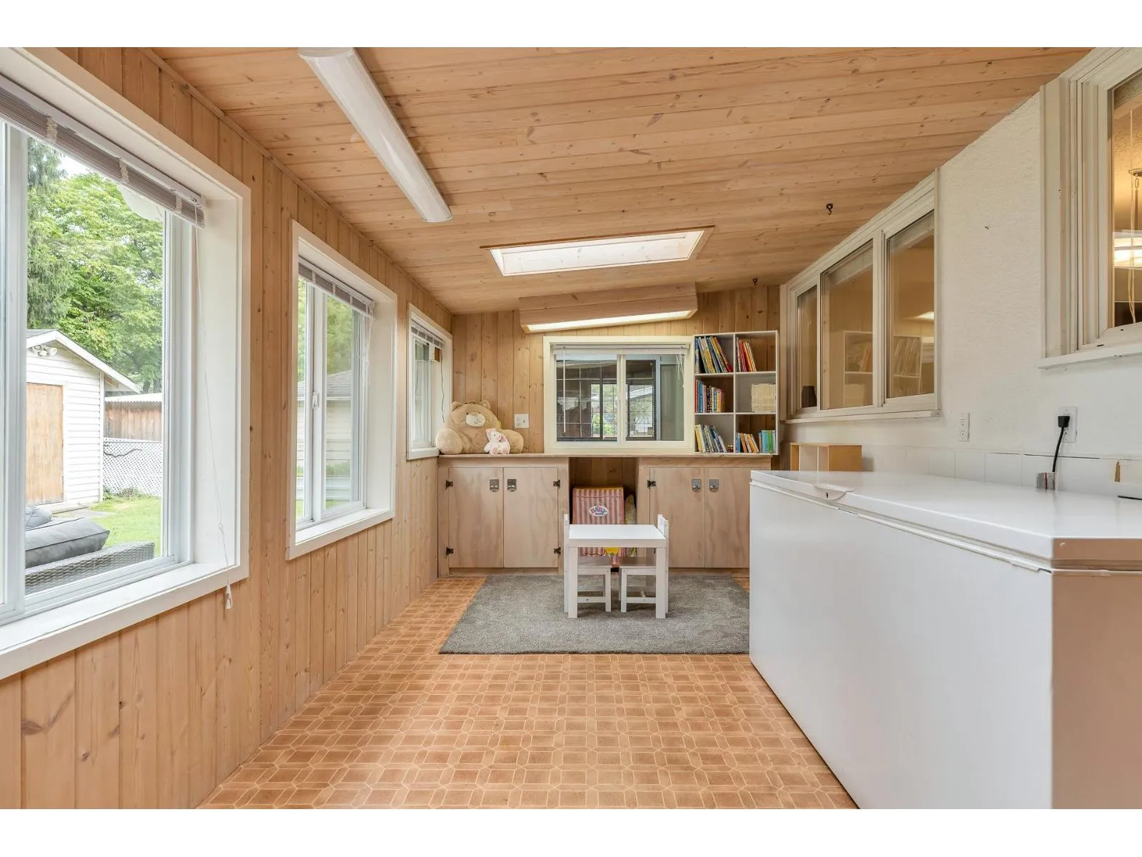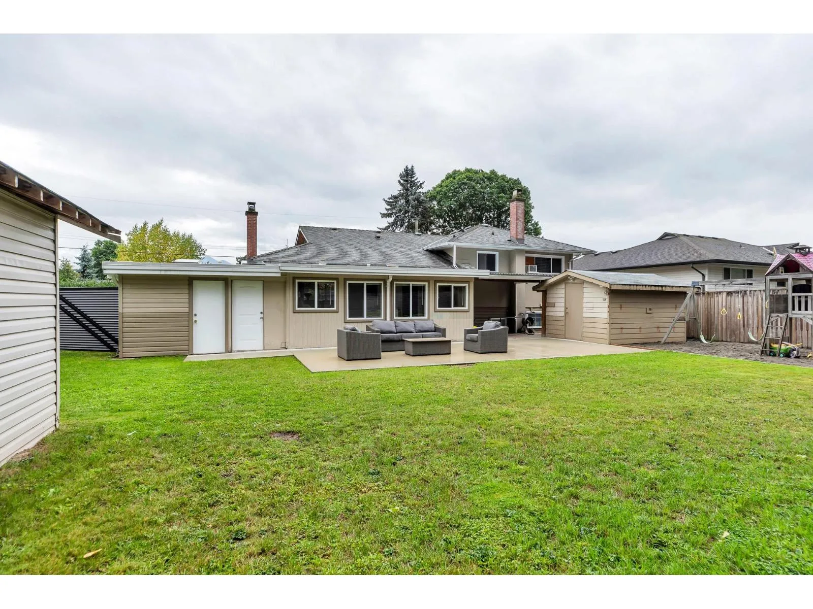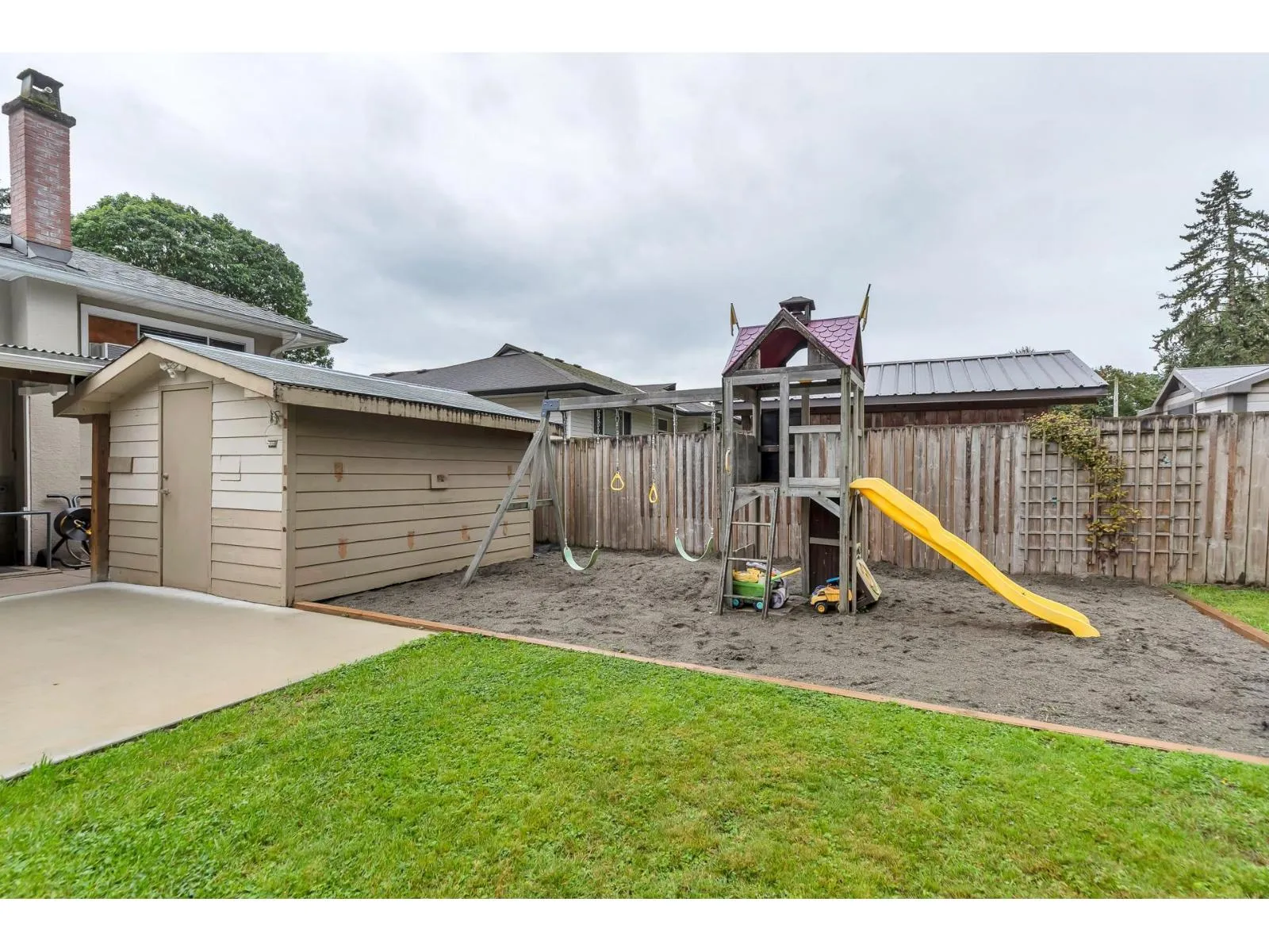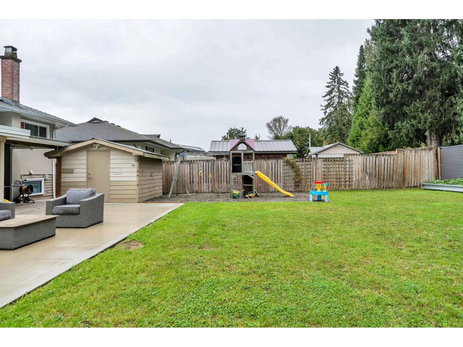 Well kept 3 level split backing Hope River Park/Trail! One of Chilliwack's best locations to live and a great long term investment with future subdivision potential. Updates over the years include: newer roof, new flooring and paint in basement, high efficiency furnace, some vinyl windows, & updated kitchen with plenty of storage and a large island. Upstairs you'll find 3 generously sized bedrooms and a full bathroom. Downstairs features a large rec room( could function as a 4th bedroom) laundry, and its own 3 piece bathroom - suite potential? Solarium (not included in SF) makes a great flex space and has it's own laundry hook-up. Private yard is fenced with 3 storage sheds. New metal garden boxes with automatic irrigation plumbed in, new concrete patio. Great value - book your showing! (id:27476)