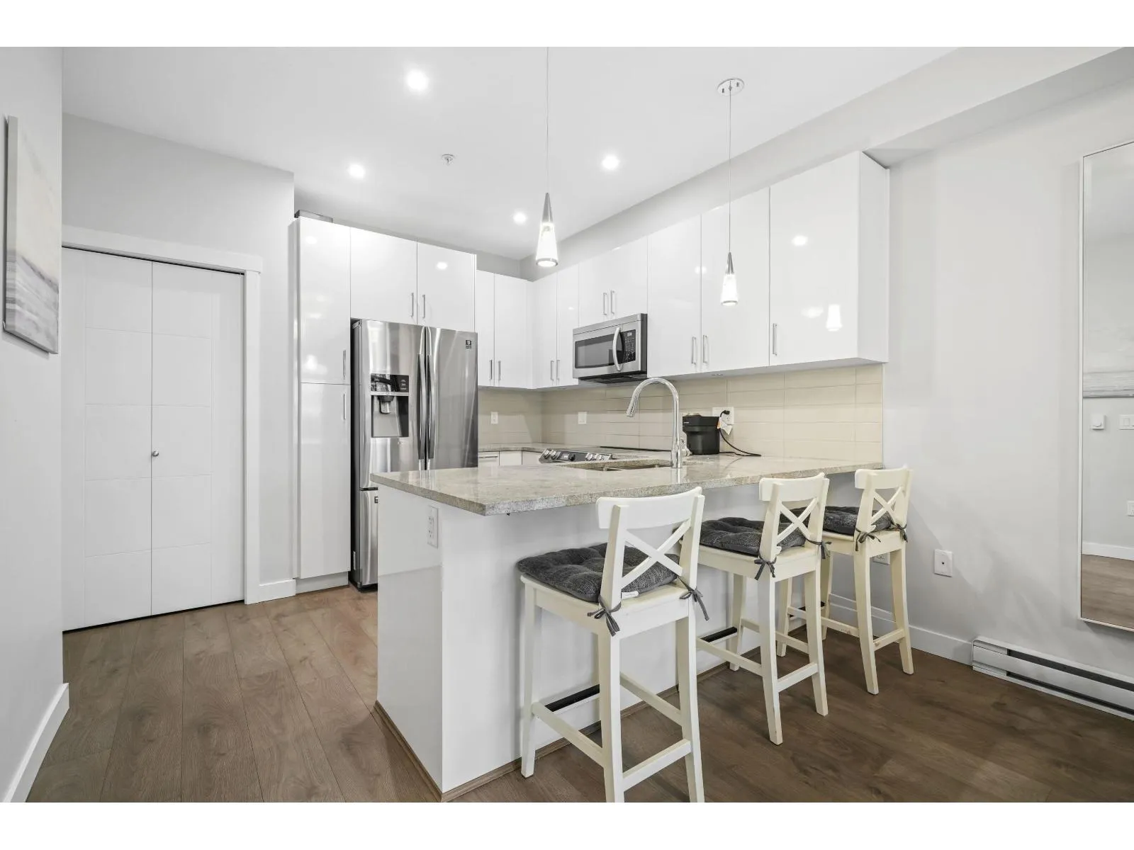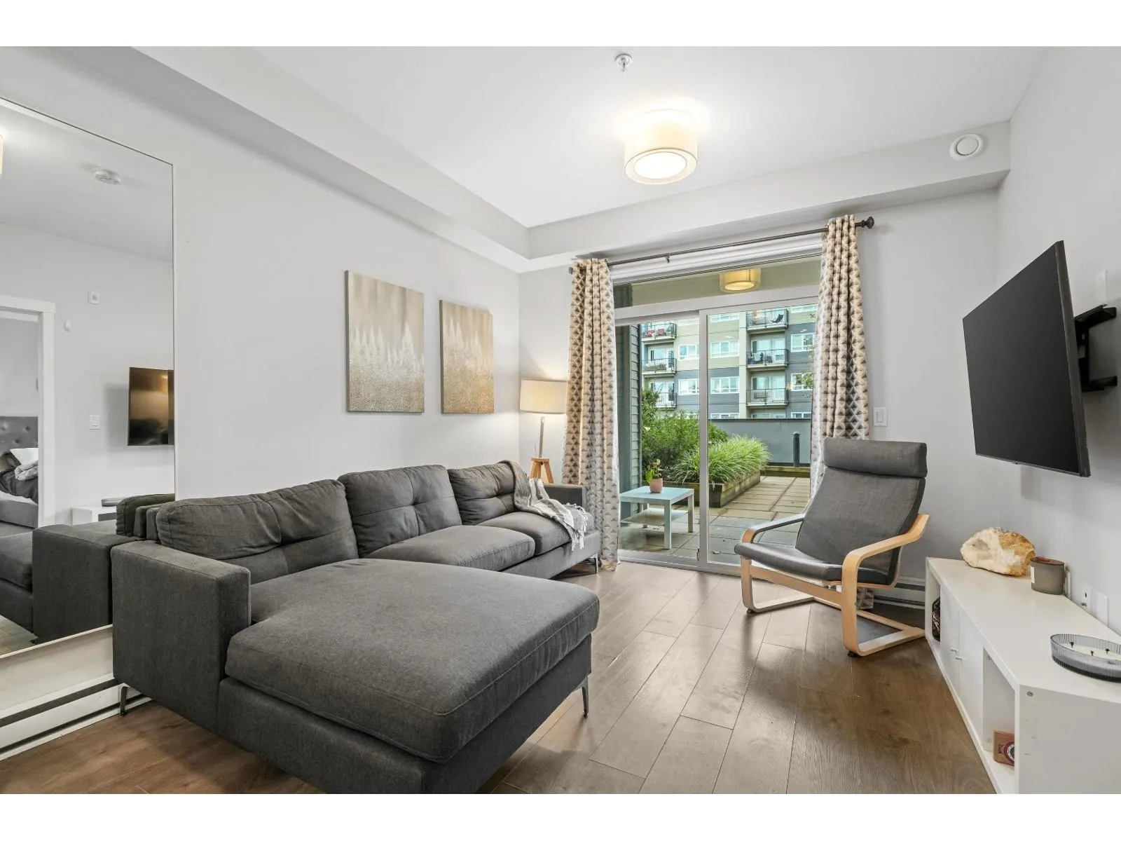 Welcome to The Elliott! This bright, south facing 1 bed home sits on the desirable second floor and features a rare walk-out garden patio perfect for barbecues, entertaining, or enjoying your plants and pets in the sunshine. Inside, the unit is spacious and well laid out. It comes with 2 parking stalls and a double-sized storage locker conveniently located on the same floor. Just minutes from schools, the university, 1881 District, shopping, transit, and highway access, the location couldn't be more ideal. Currently rented furnished at $1,840/mo, this property makes an excellent investment opportunity, or a wonderful home. Garden patio suites at The Elliott are a rare find available only on the second and top floors offering long-term value and strong holding power. Don't miss out! (id:27476)
