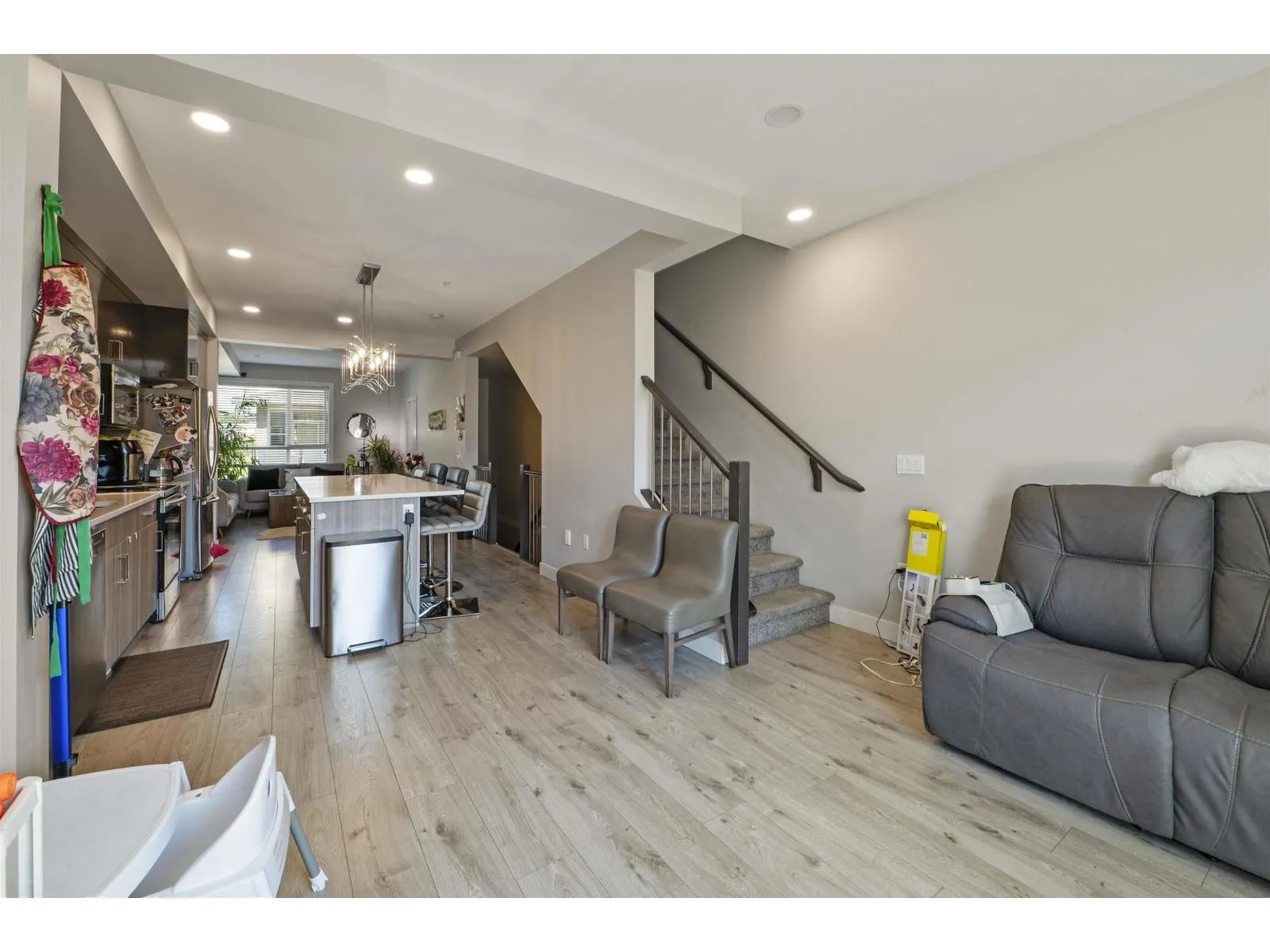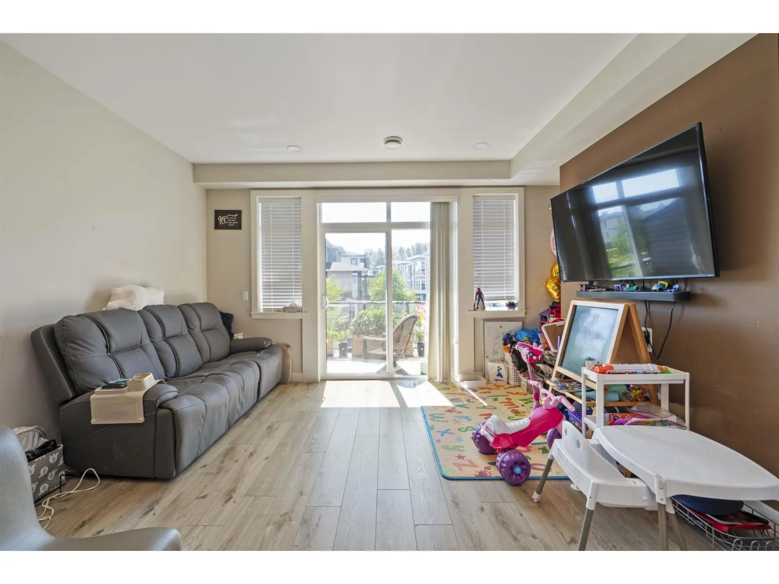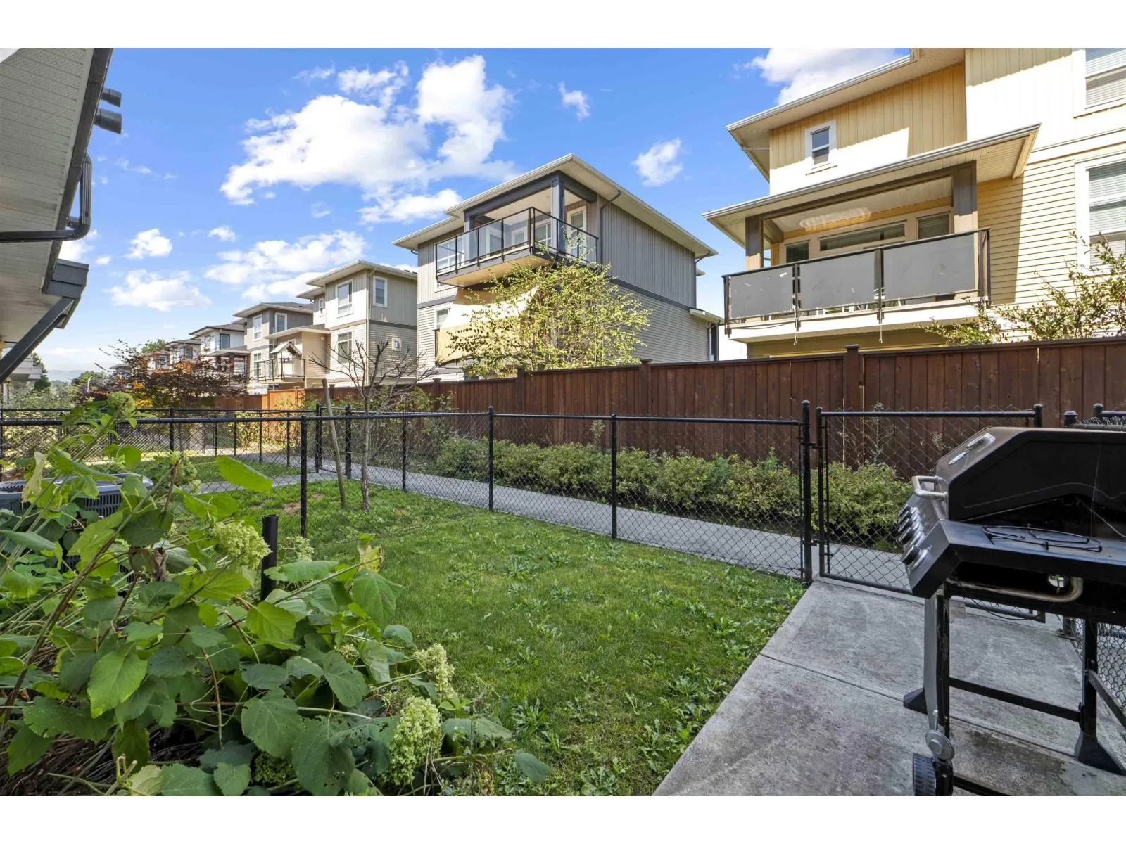 Welcome to Midtown, Chilliwack! Centrally located near schools, shopping, parks, and just 2 minutes to Hwy 1, this modern 2019 townhouse offers over 1,700 sq. ft. with 3 bedrooms, 4 bathrooms, and a large rec room. Enjoy high-quality finishings, soaring 11 ft. ceilings, central A/C, and a bright open-concept main floor with a stylish kitchen featuring quartz counters, ample cabinetry, and walk-out access to a fenced backyard-ideal for family, pets, or entertaining. The spacious master suite includes a walk-in closet and ensuite, while the full basement with separate entry offers endless options for extra living space, a home office, or rental potential. Additional perks include on-demand hot water and a built-in vacuum. The perfect place to call home! (id:27476)