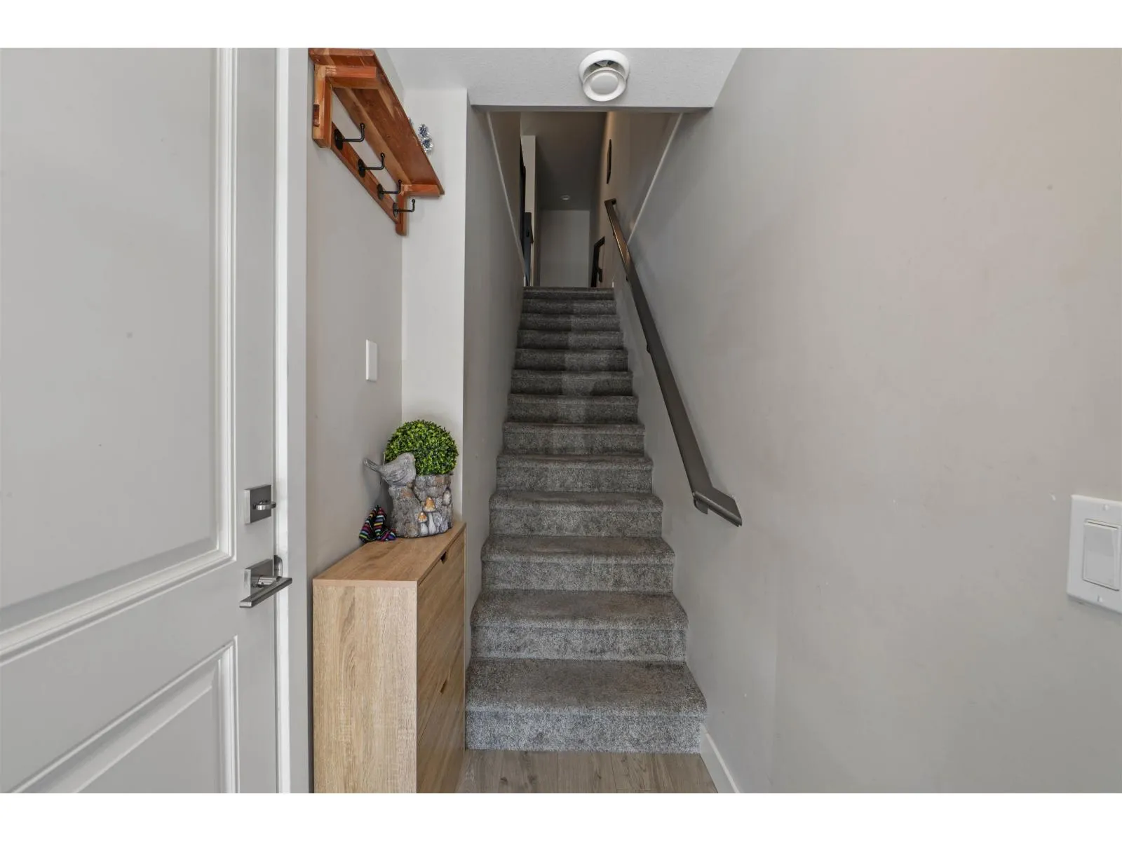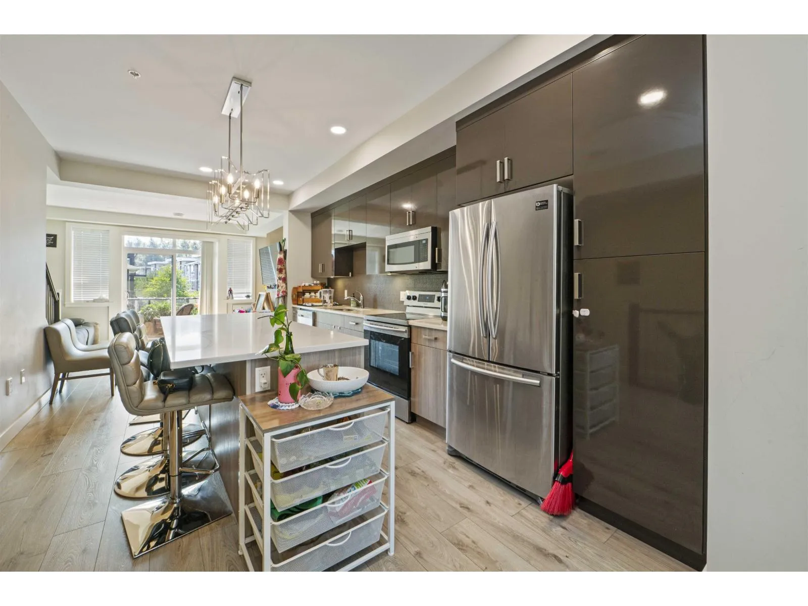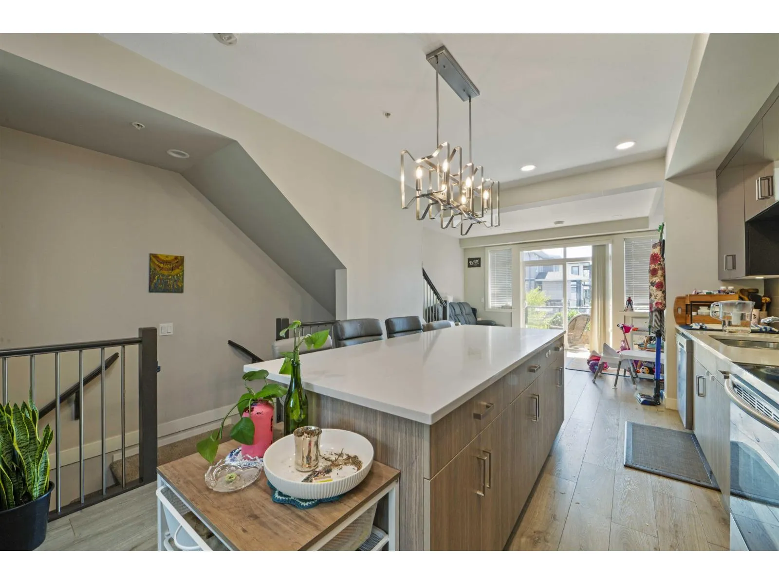 Welcome to Midtown, Chilliwack! Centrally located near schools, shopping, parks, and just 2 minutes to Hwy 1, this modern 2019 townhouse offers over 1,700 sq. ft. with 3 bedrooms, 4 bathrooms, and a large rec room. Enjoy high-quality finishings, soaring 11 ft. ceilings, central A/C, and a bright open-concept main floor with a stylish kitchen featuring quartz counters, ample cabinetry, and walk-out access to a fenced backyard-ideal for family, pets, or entertaining. The spacious master suite includes a walk-in closet and ensuite, while the full basement with separate entry offers endless options for extra living space, a home office, or rental potential. Additional perks include on-demand hot water and a built-in vacuum. The perfect place to call home! (id:27476)