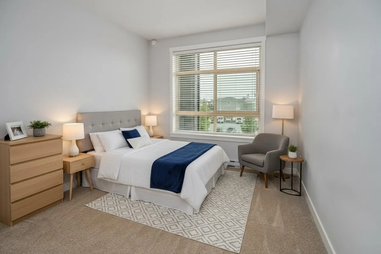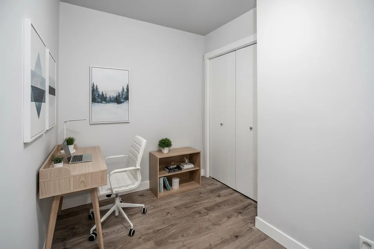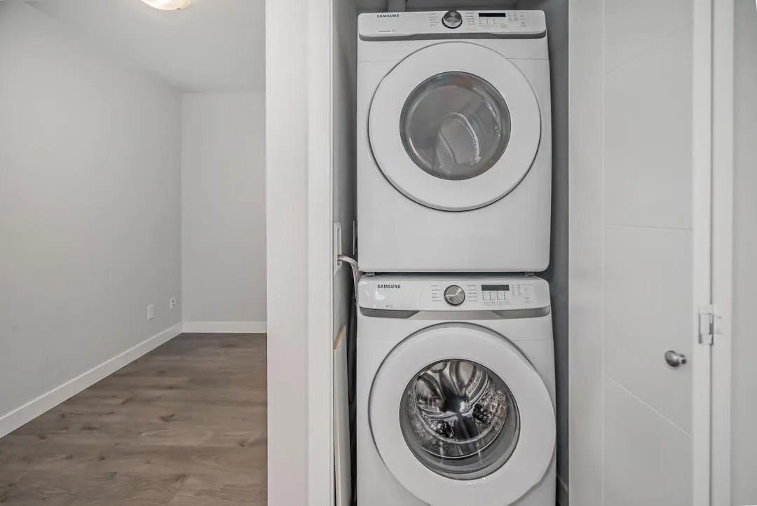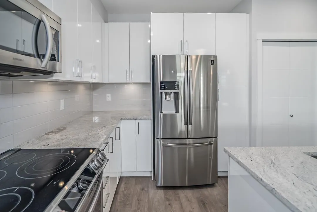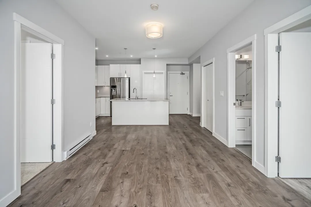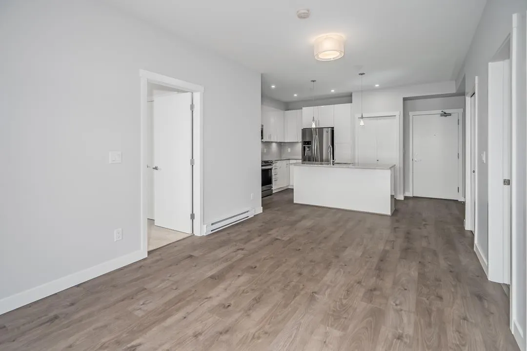 Modern style and comfort blend seamlessly in this 2 bed, 2 bath + den condo at The Elliot. The open layout showcases a sleek kitchen with granite counters, stainless steel appliances, and a large island that flows into a bright living area and north-facing balcony"-ideal for morning coffee or evening BBQs. The primary suite offers a private ensuite, while the den is perfect for a home office or cozy reading nook. With same-floor storage, secure parking, and a pet-friendly policy (no size restrictions), this home delivers effortless living close to shopping, dining, and highway access. (id:27476)