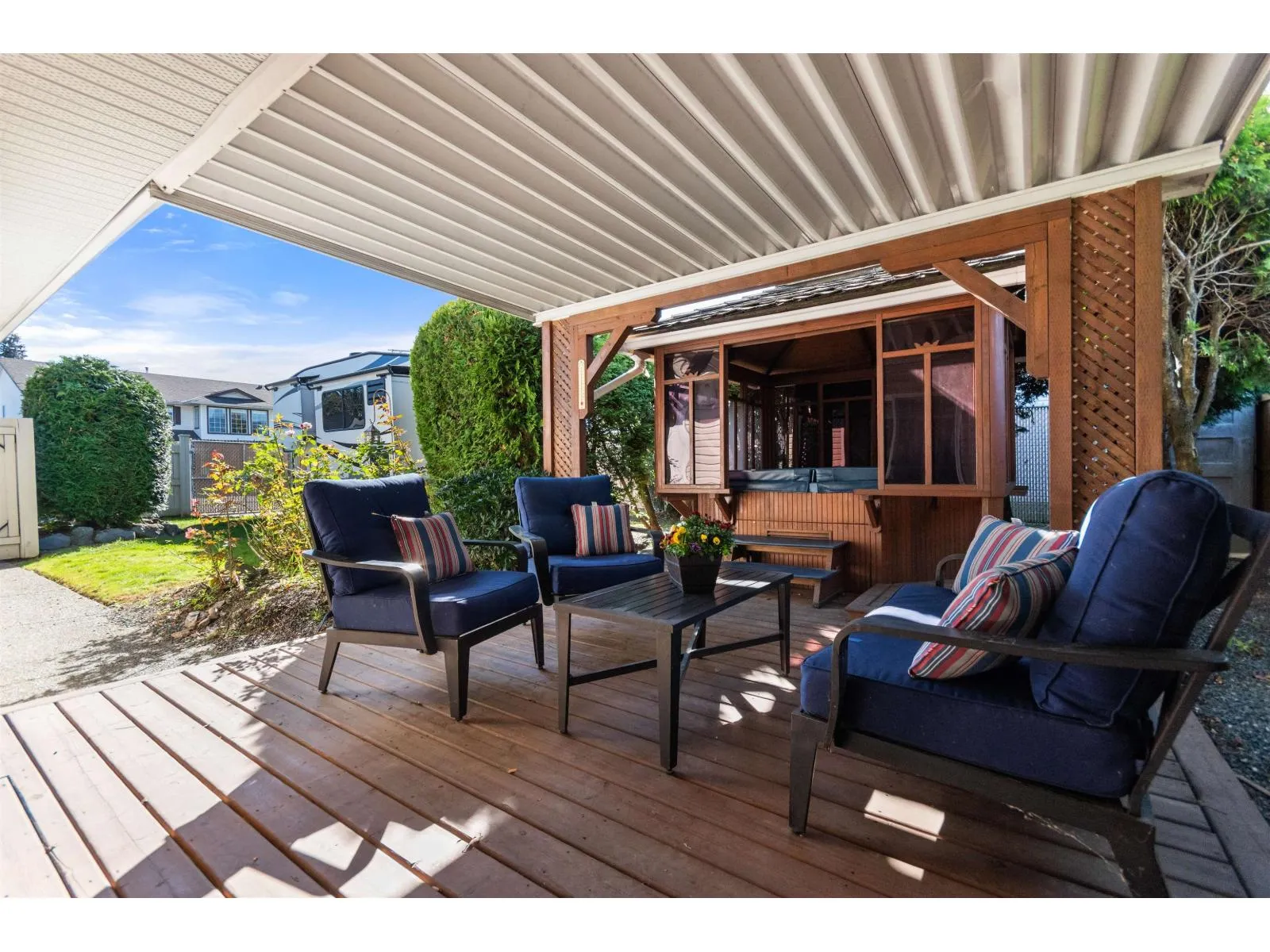 Welcome to this immaculate 2-storey home nestled on a desirable corner lot in the heart of Sardis. Offering 3 spacious bedrooms and 2.5 beautifully renovated bathrooms, this 2,149 sq. ft. home has been thoughtfully updated for comfort and style "- including air conditioning and stunning hardwood flooring throughout. The primary ensuite is a true retreat, featuring heated tile floors and a modern design. The kitchen has ample cabinetry, a gas range, and both formal and casual dining areas to suit every occasion. Enjoy multiple living spaces with both a cozy family room and a bright, inviting living room "- perfect for relaxing or entertaining. Fully fenced yard boasts a covered hot tub area, patio, and an irrigation system. There's even room to park your 32' RV! * PREC - Personal Real Estate Corporation (id:27476)
