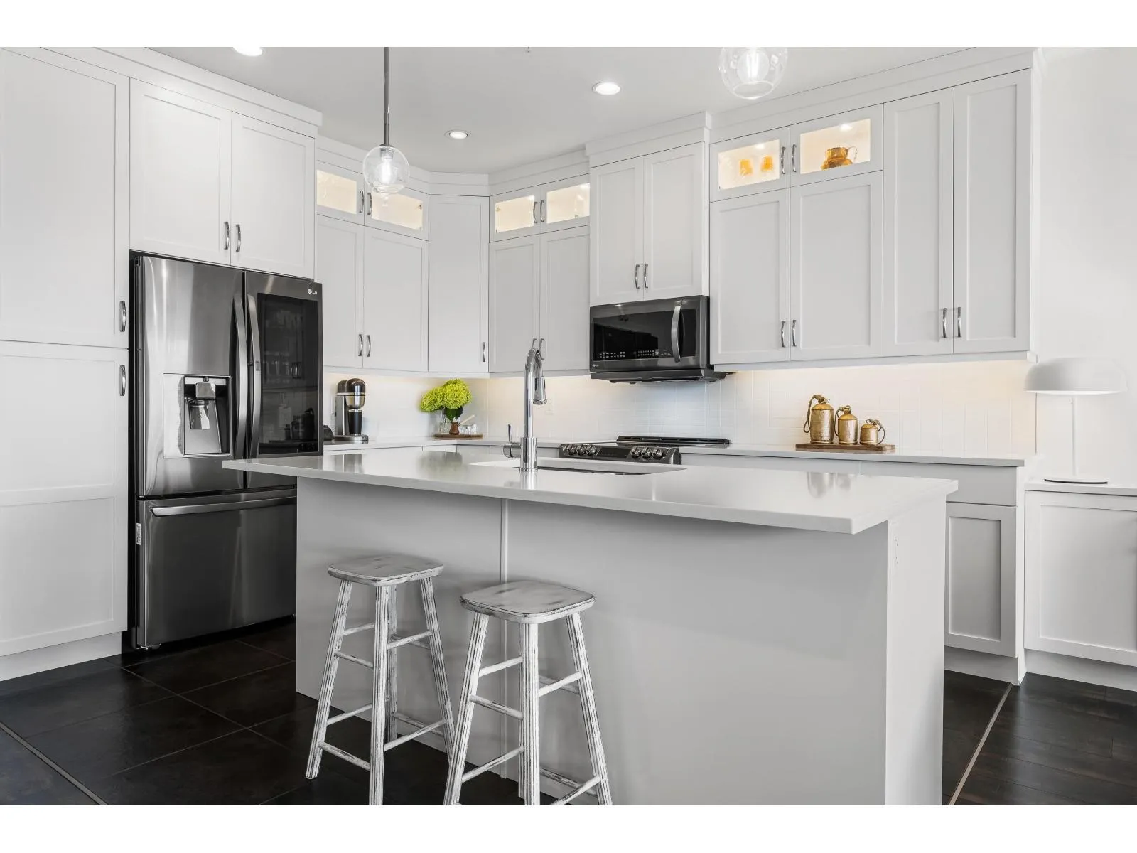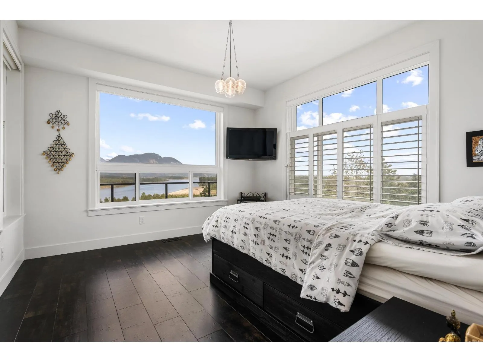 Premium location with unobstructed Fraser River views! This end-unit rancher with walkout basement offers 3 bedrooms & 3 baths. Thoughtfully upgraded with black Italian ceramic tile, Armstrong laminate, custom closet systems, extended kitchen cabinets to ceiling with LED lighting, quartz counters, LG appliances, A/C, EV charger, and premium Savannah fireplace with built-ins. Enjoy privacy shutters, added master bedroom window, finished storage, upgraded bathrooms, and pre-wired premium Polk Audio sound. Immaculate and move-in ready"-luxury living at Seasons at Cedar Sky! * PREC - Personal Real Estate Corporation (id:27476)