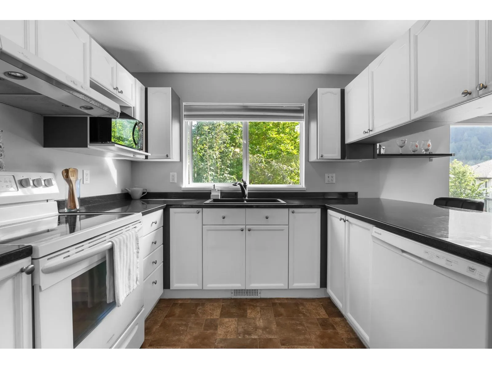 END UNIT at Riverwynd in convenient Sardis location! Nearly 1650 square foot bright and clean townhome with plenty of space for the family and pets! Find above three spacious bedrooms, family bath plus ensuite. Main floor hosts your kitchen, eating area, dining, powder and living rooms. Finished basement makes for a nice rec room and has access to flat and FENCED private backyard. You will appreciate the mountain view and not having other townhomes facing your backyard! Some updates include hot water tank in 2023 and furnace with newer heat exchange. Welcoming all ages plus TWO dogs (and cats) of any size! Reasonable strata fee of 371/month. Great location with short walk to Garrison Village offering coffee shops, groceries and several amenities. (id:27476)