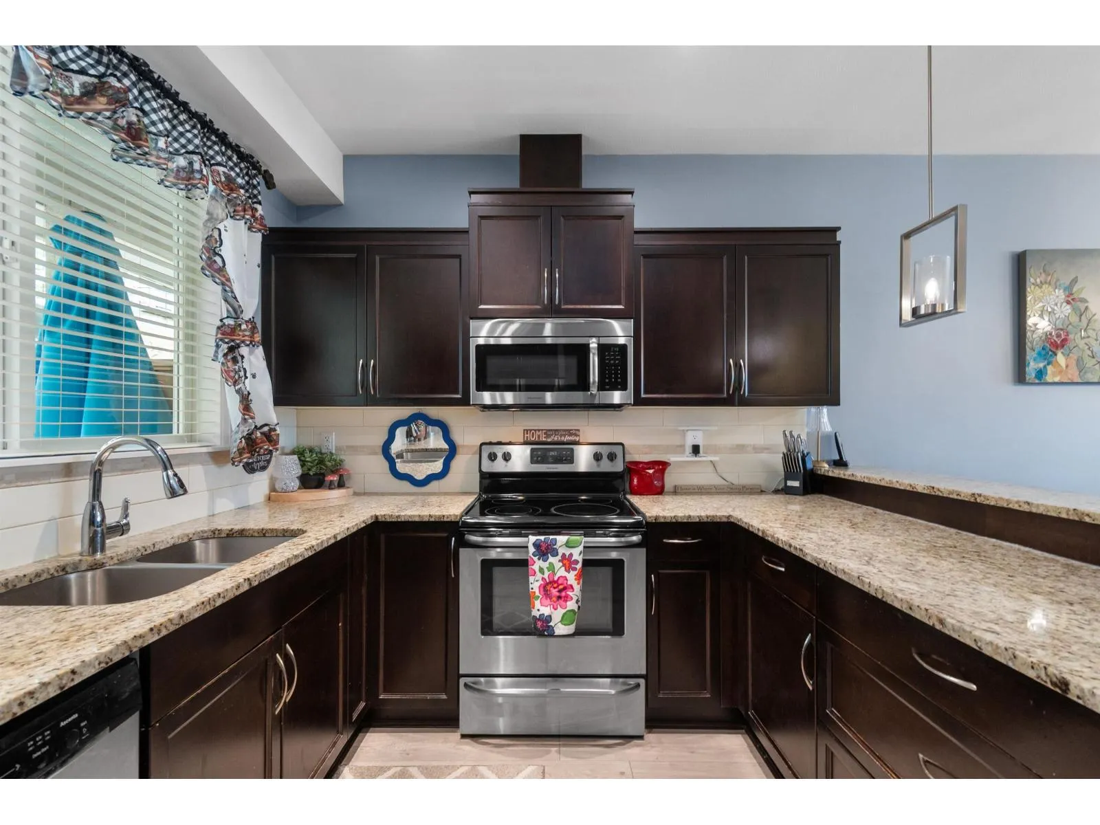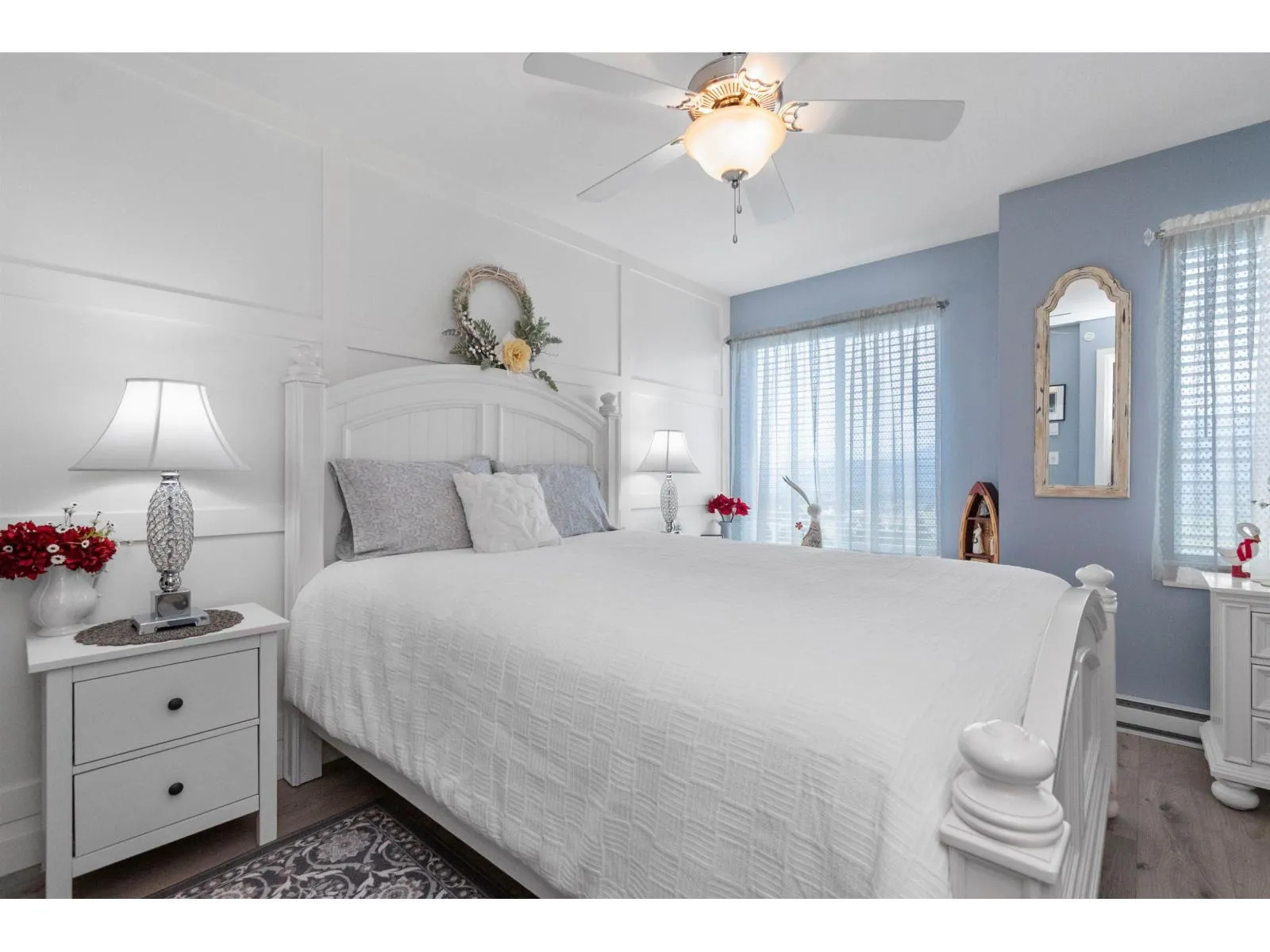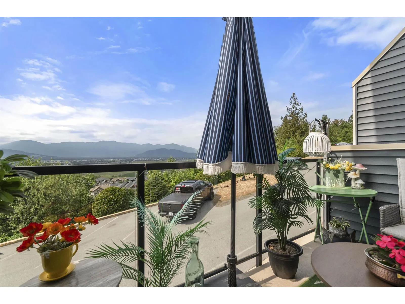 Check out the spectacular, unobstructed, Valley views from this unit! But first, starting from the moment you enter the home, you will appreciate the upgraded details making the home stand apart from others including the upgraded flooring, decorative feature walls in the living space, and a tasteful color palette. Upstairs has 3 bdrms, with the primary bedroom located at the front of the unit facing northwest, and has an amazing view overlooking Chilliwack. The tandem garage gives space for either 2 vehicle parking, or can be finished off to offer additional living space/media room. Backyard features fruit and flower trees, as well as an established perennial garden with ornamental flowering bushes and plants w/accent water fountain feature, and storage shed. Call for your private viewing! * PREC - Personal Real Estate Corporation (id:27476)