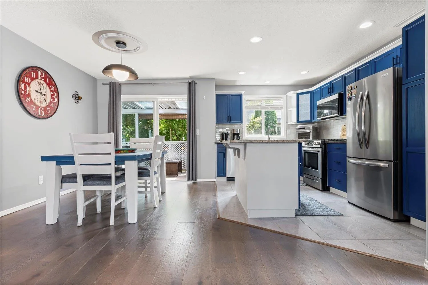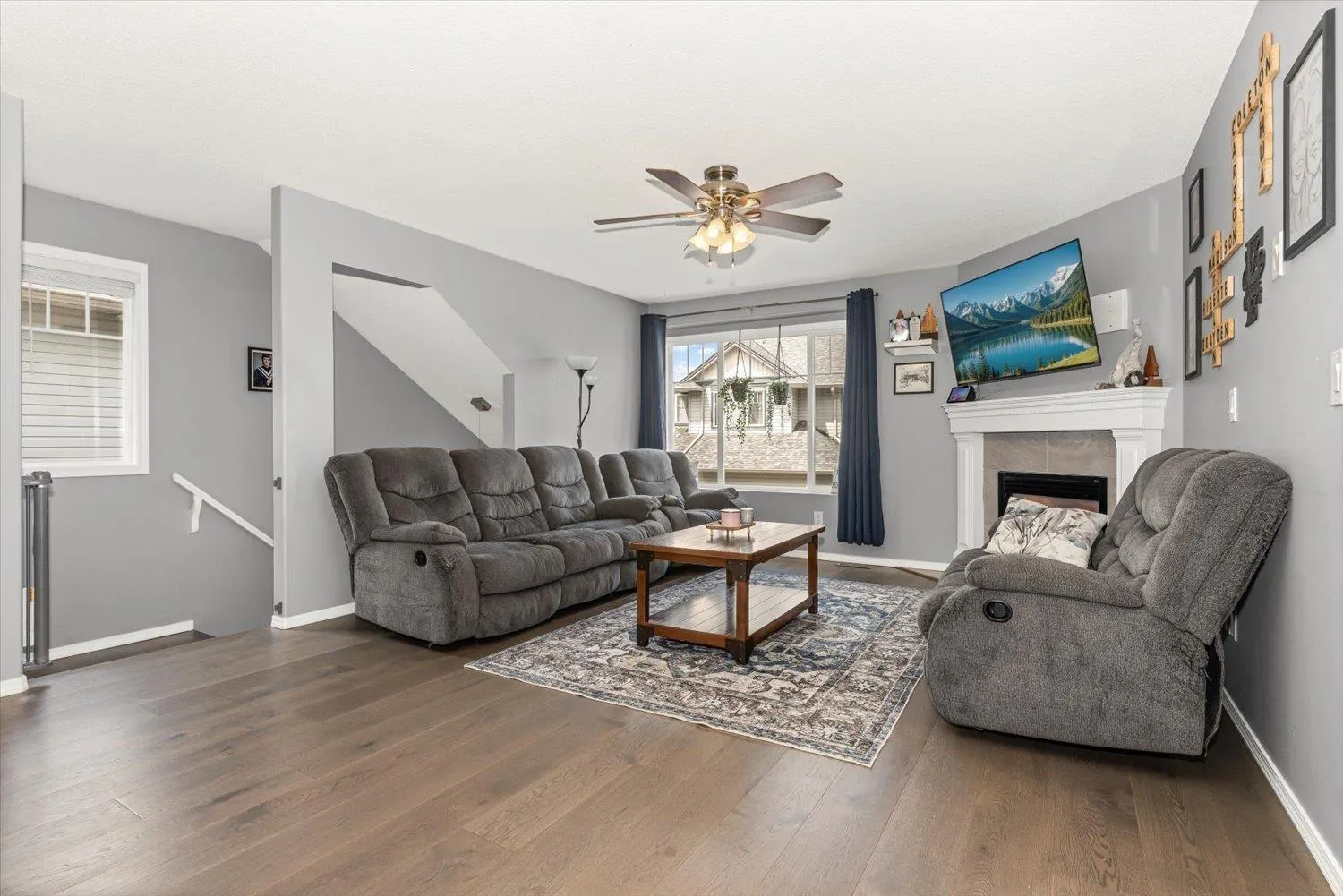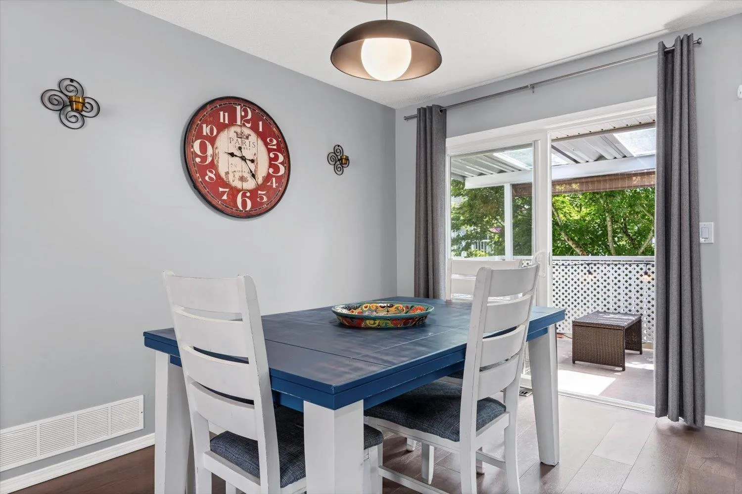 Welcome to this warm and inviting end-unit townhome in a quiet, family-friendly 14-unit complex. Offering 4 spacious bedrooms and 2 full bathrooms, this home features a bright open-concept Great Room with a cozy gas fireplace "- perfect for gatherings. The kitchen boasts a large eating bar and new stainless steel appliances. Enjoy peace of mind with a new 2023 roof, new furnace, A/C for year-round comfort, and a new patio cover. The dining area opens to a private sundeck, ideal for BBQs or relaxing. With a double garage, plenty of storage, and *2 pets allowed with no size restrictions*, this move-in ready , affordable home combines comfort, convenience, and exceptional value close to schools and walking trails ! (id:27476)