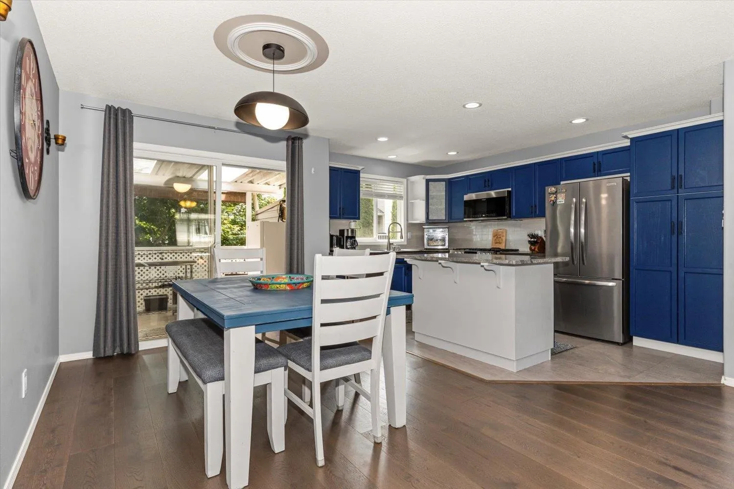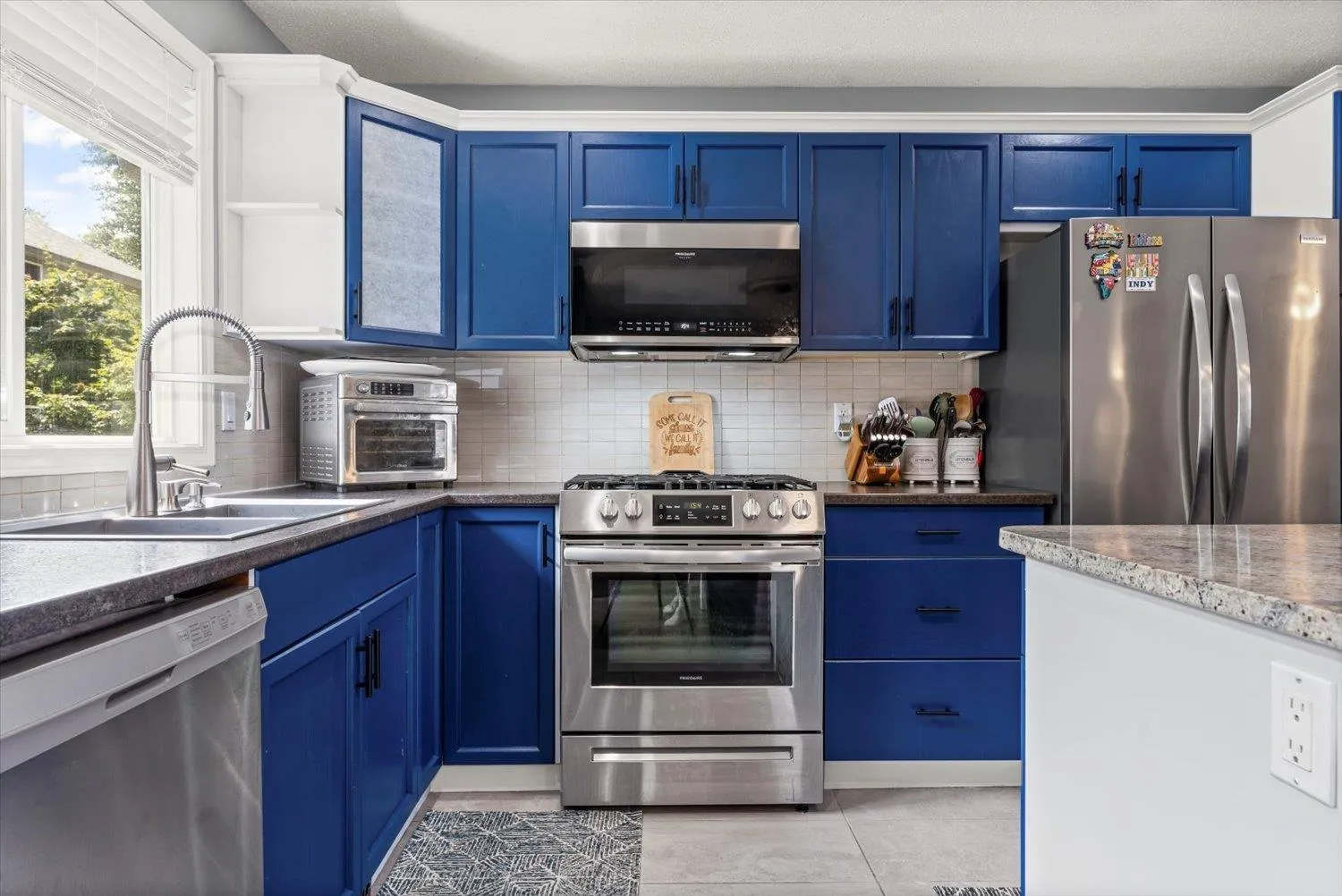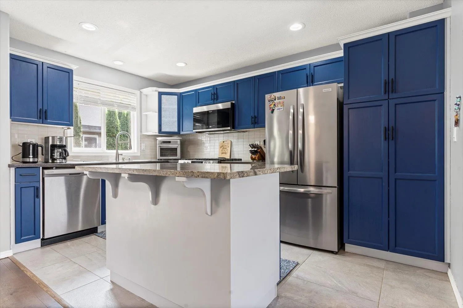 Welcome to this warm and inviting end-unit townhome in a quiet, family-friendly 14-unit complex. Offering 4 spacious bedrooms and 2 full bathrooms, this home features a bright open-concept Great Room with a cozy gas fireplace "- perfect for gatherings. The kitchen boasts a large eating bar and new stainless steel appliances. Enjoy peace of mind with a new 2023 roof, new furnace, A/C for year-round comfort, and a new patio cover. The dining area opens to a private sundeck, ideal for BBQs or relaxing. With a double garage, plenty of storage, and *2 pets allowed with no size restrictions*, this move-in ready , affordable home combines comfort, convenience, and exceptional value close to schools and walking trails ! (id:27476)
