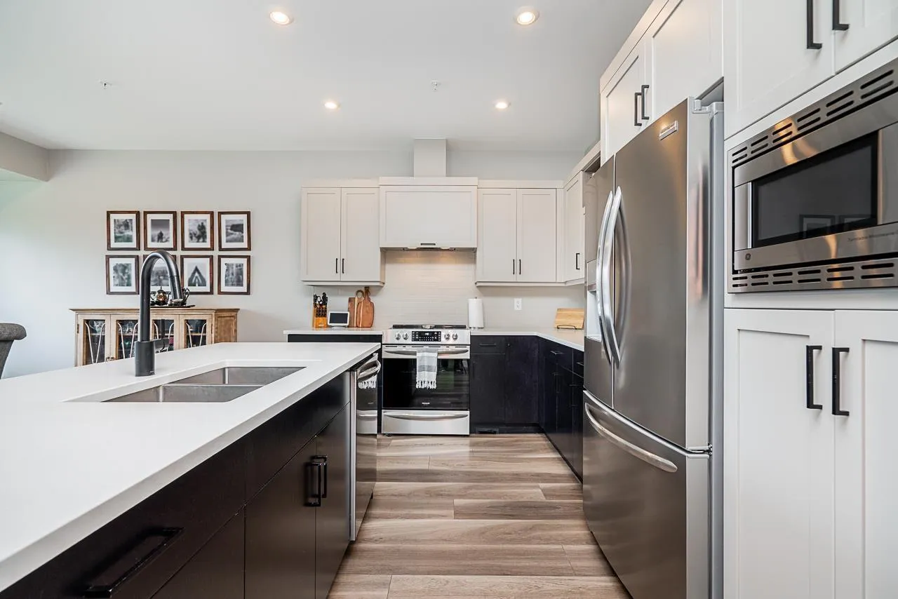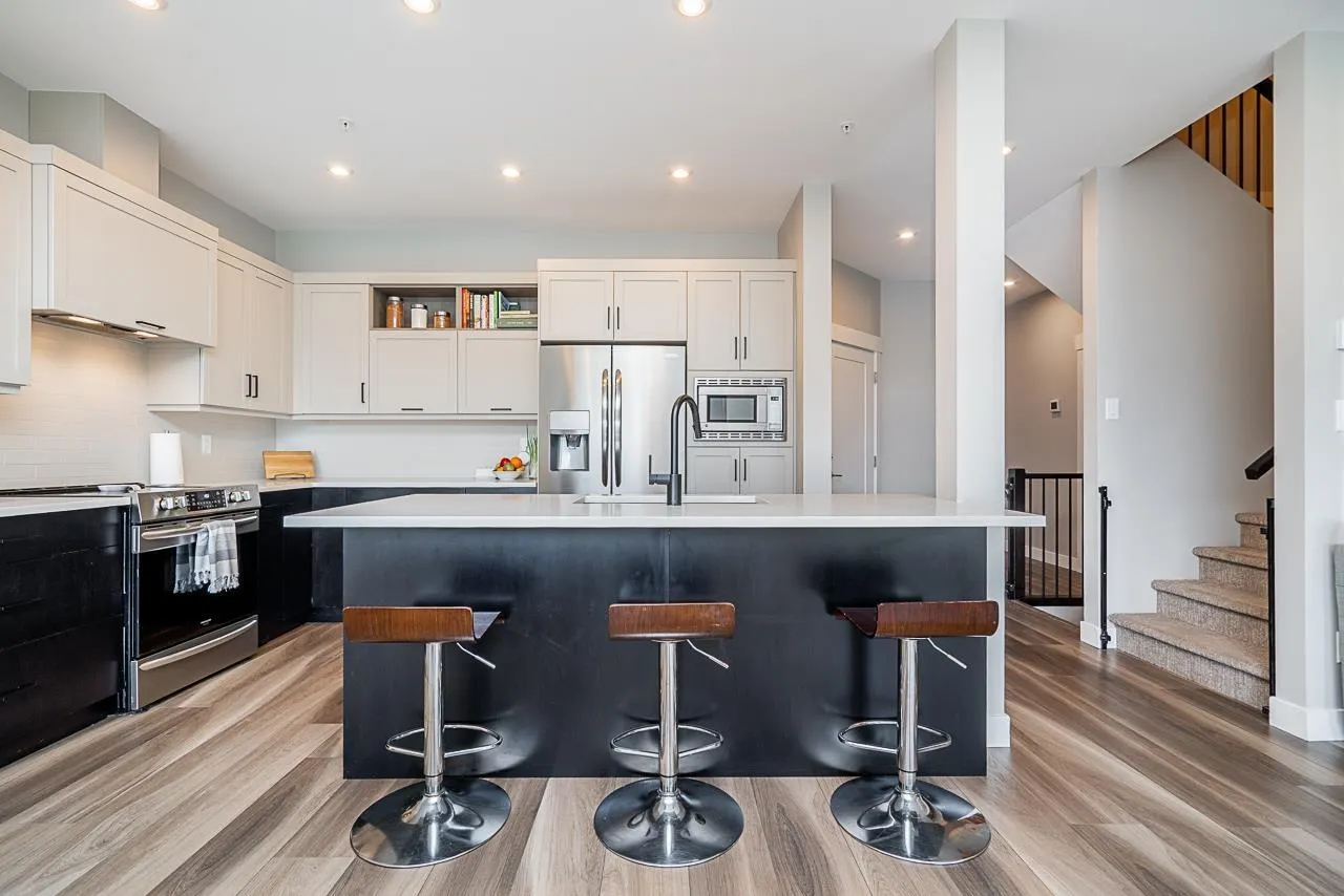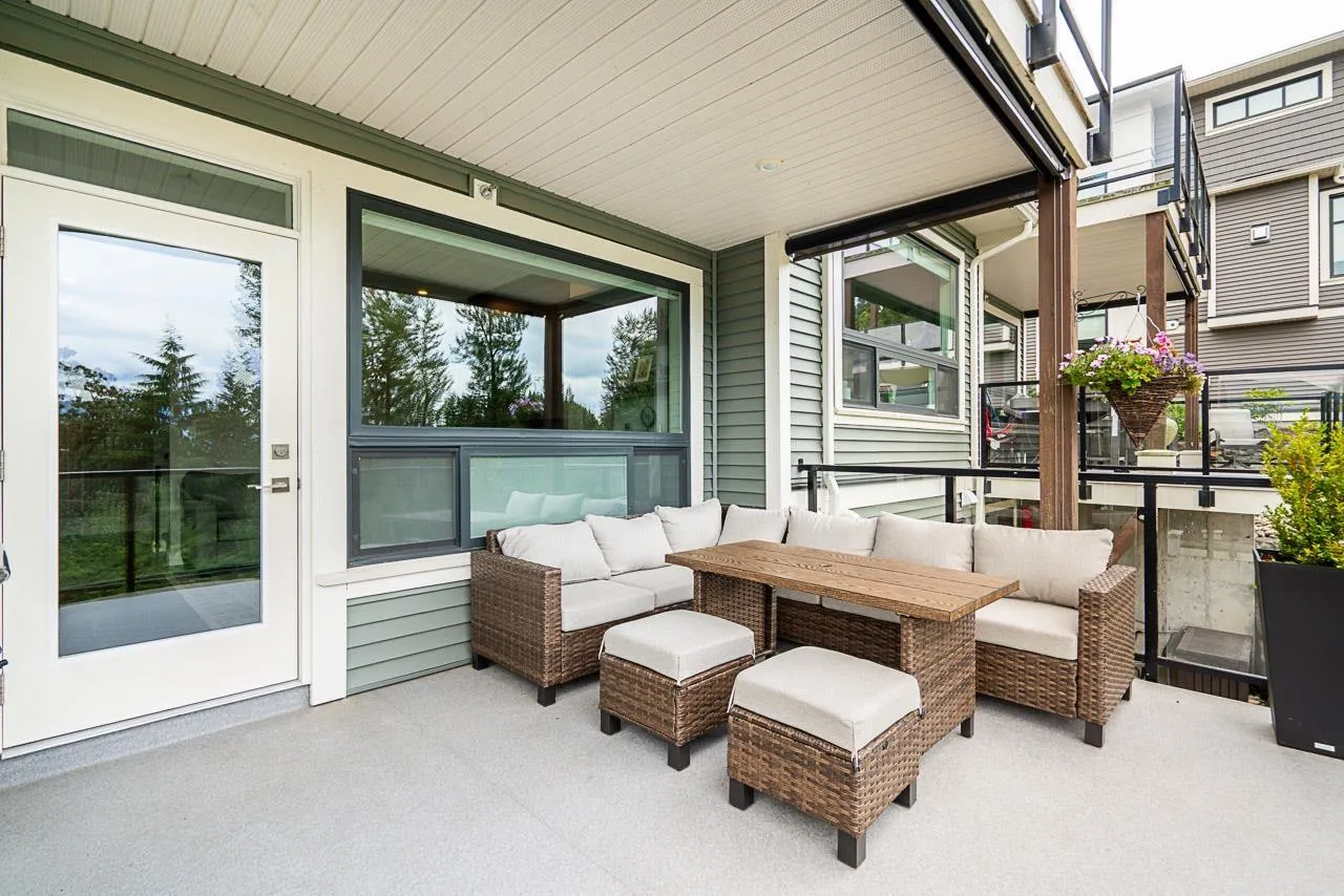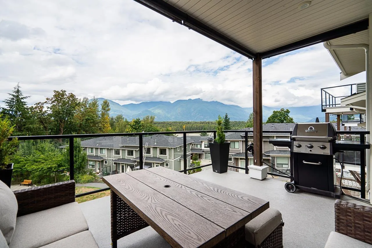 Welcome to Water's Edge! This beautiful 4-bedroom, 4-bathroom, three level townhouse with beautiful views of the Fraser River is not to be missed! Open-concept kitchen & living room area with stainless steel appliances, quartz countertops is perfect for hosting, with access to the deck with custom sun shades. This townhouse features 3 bedrooms up, with a beautiful primary suite boasting a large walk-in closet, ensuite with soaker tub and shower, and has its own private deck to enjoy the amazing views. Downstairs enjoy a large Rec Room, and additional 4th bedroom, along with a large storage room, and a fully fenced patio area on the basement floor, perfect for kids or pets. This home comes complete with a double side-by-side garage, A/C. Call to book your private showing today! (id:27476)