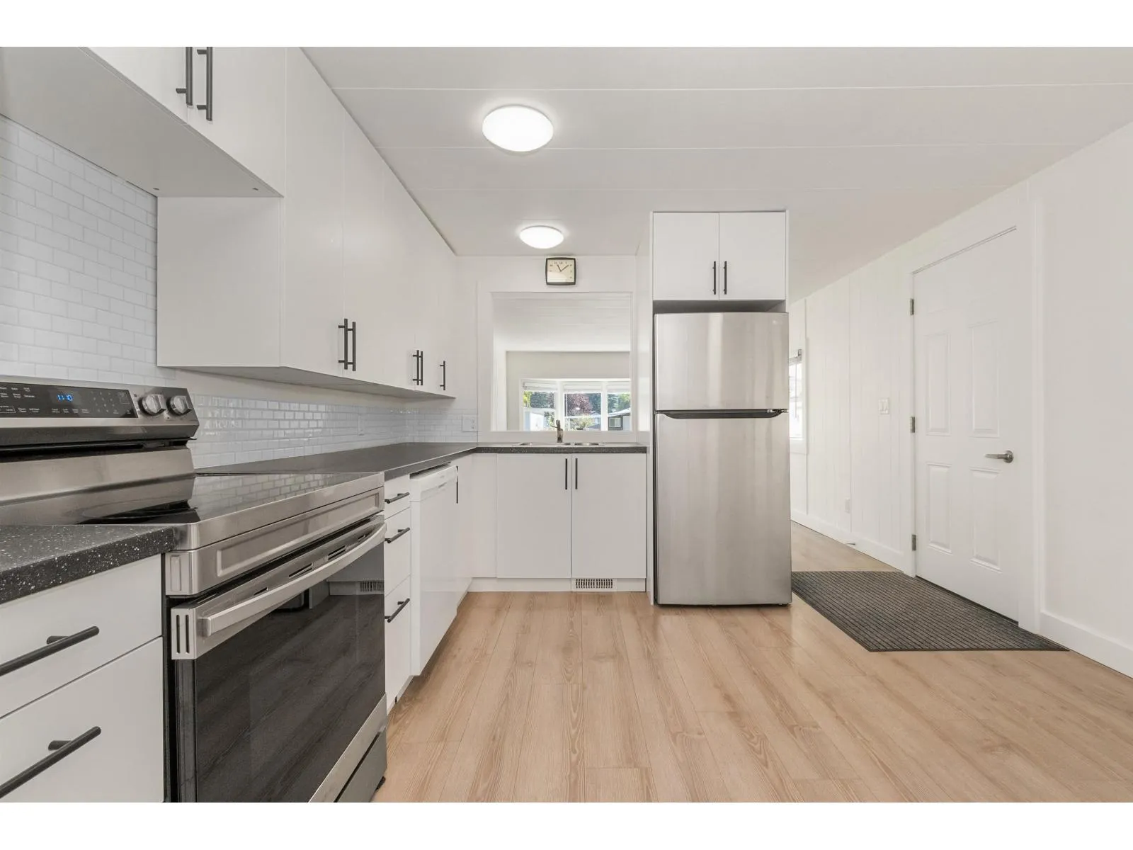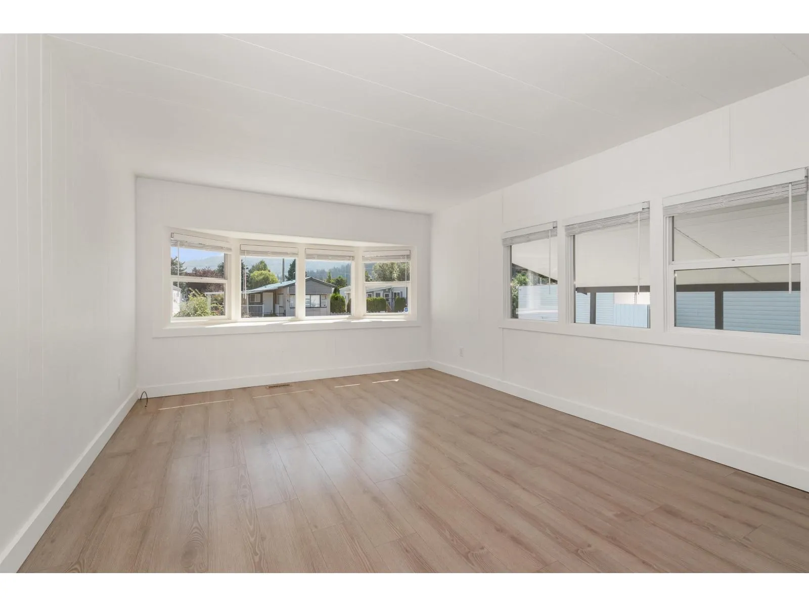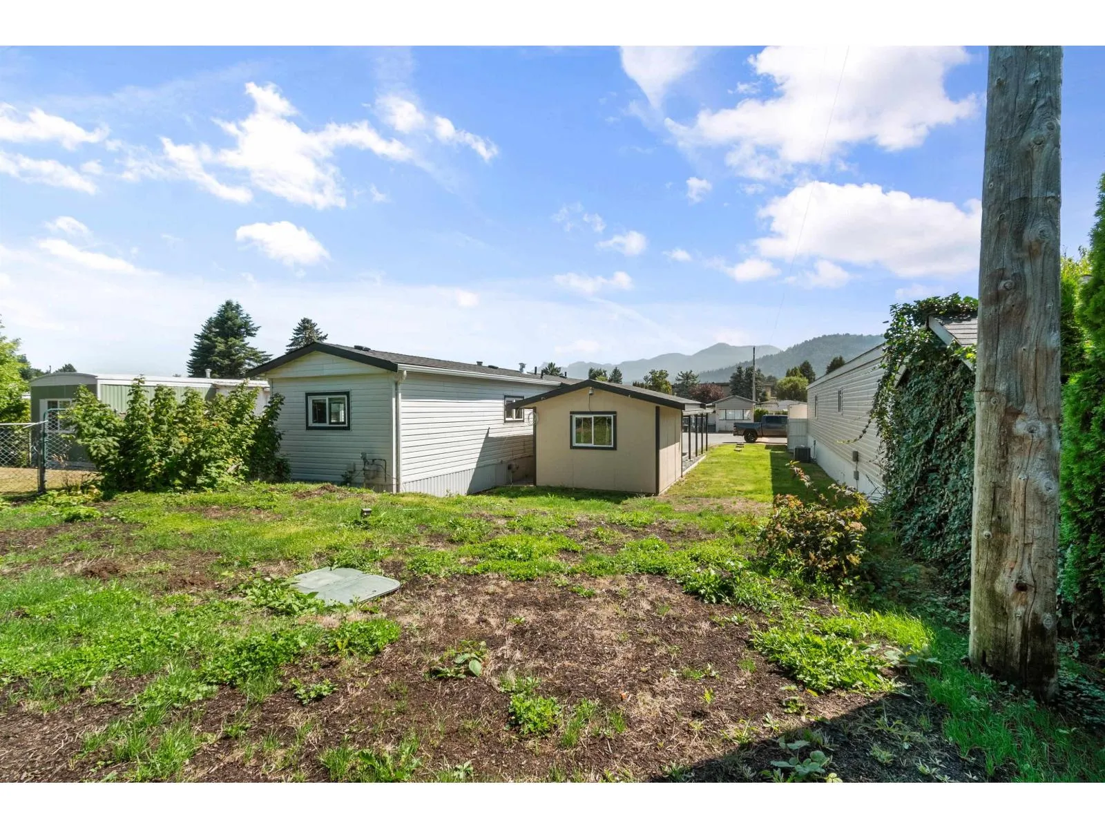 Located steps outside Garrison Village, this freshly updated mobile home is perfect for anyone looking for a move in ready home, that is walking distance to all amenities including shopping, restaurants, and the Vedder river trail. Family friendly park welcomes children and small pets, and is centrally located to all levels of schools. Garrison Village offers several parks and paths, a water park for summer use and enjoyment, and a leisure center for gym, swimming, and sports. Updates include roof, windows, plumbing, and the professionally enclosed deck offers additional living space. Bonus* Workshop has been insulated, and has power, for use as a quiet retreat or mancave! Bring your ideas, and make this space your own! * PREC - Personal Real Estate Corporation (id:27476)