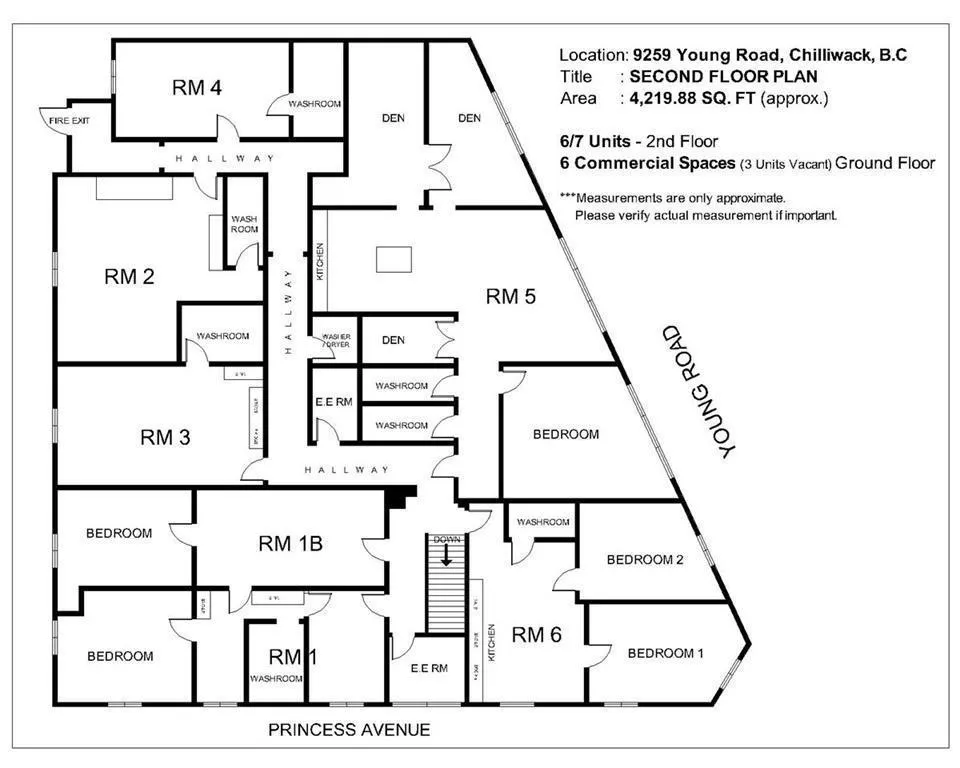 Motivated Seller! This free-standing building, located in downtown Chilliwack, is brimming with significant future potential. After a recent rezoning, which allows for high-density usage (verification with Chilliwack City Hall is recommended), the property boasts seven fully leased residential units on the upper floor and six retail spaces. Motivated Seller! (id:27476)