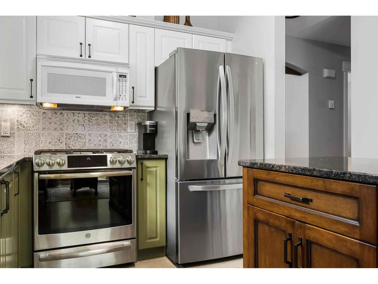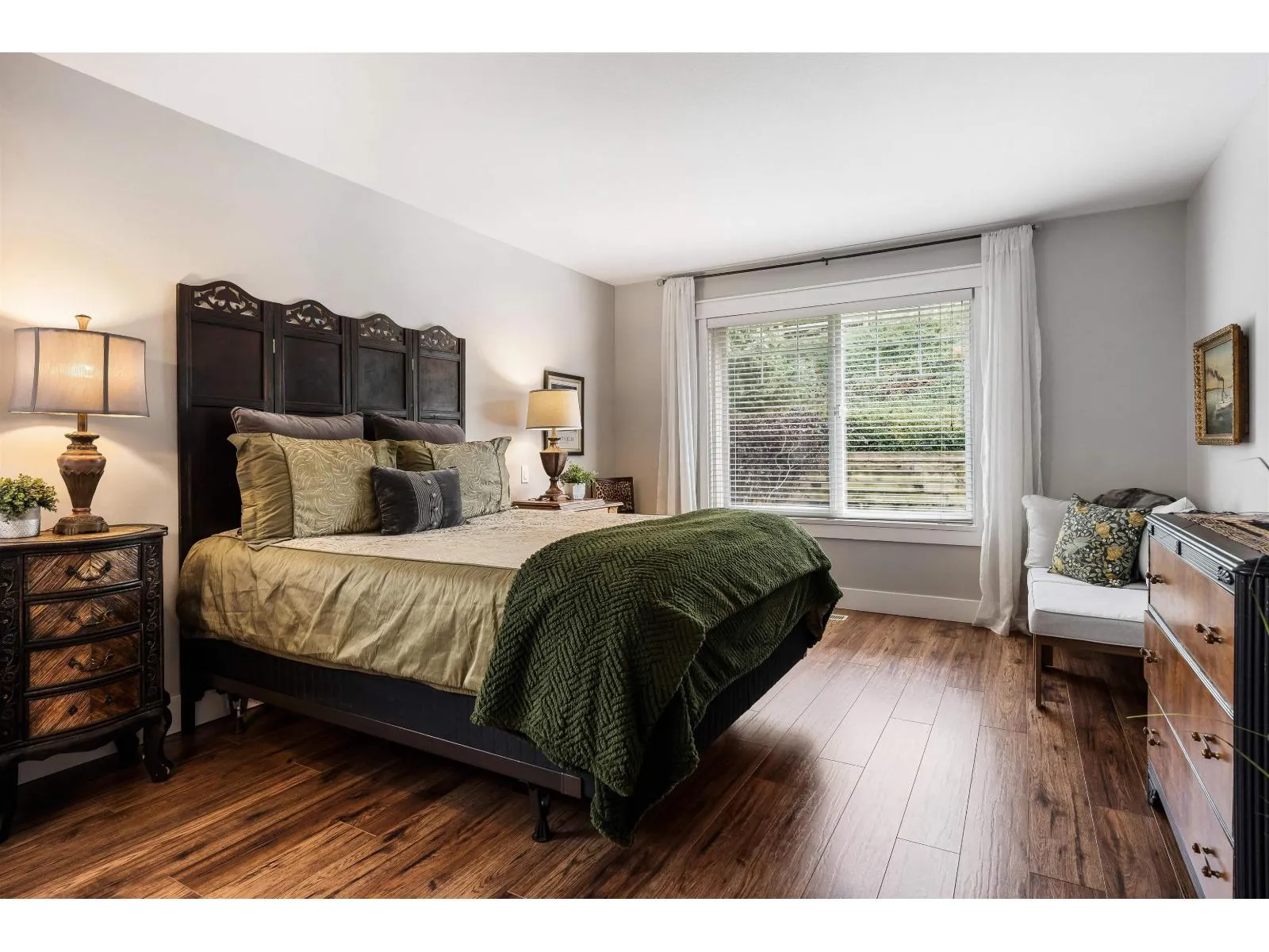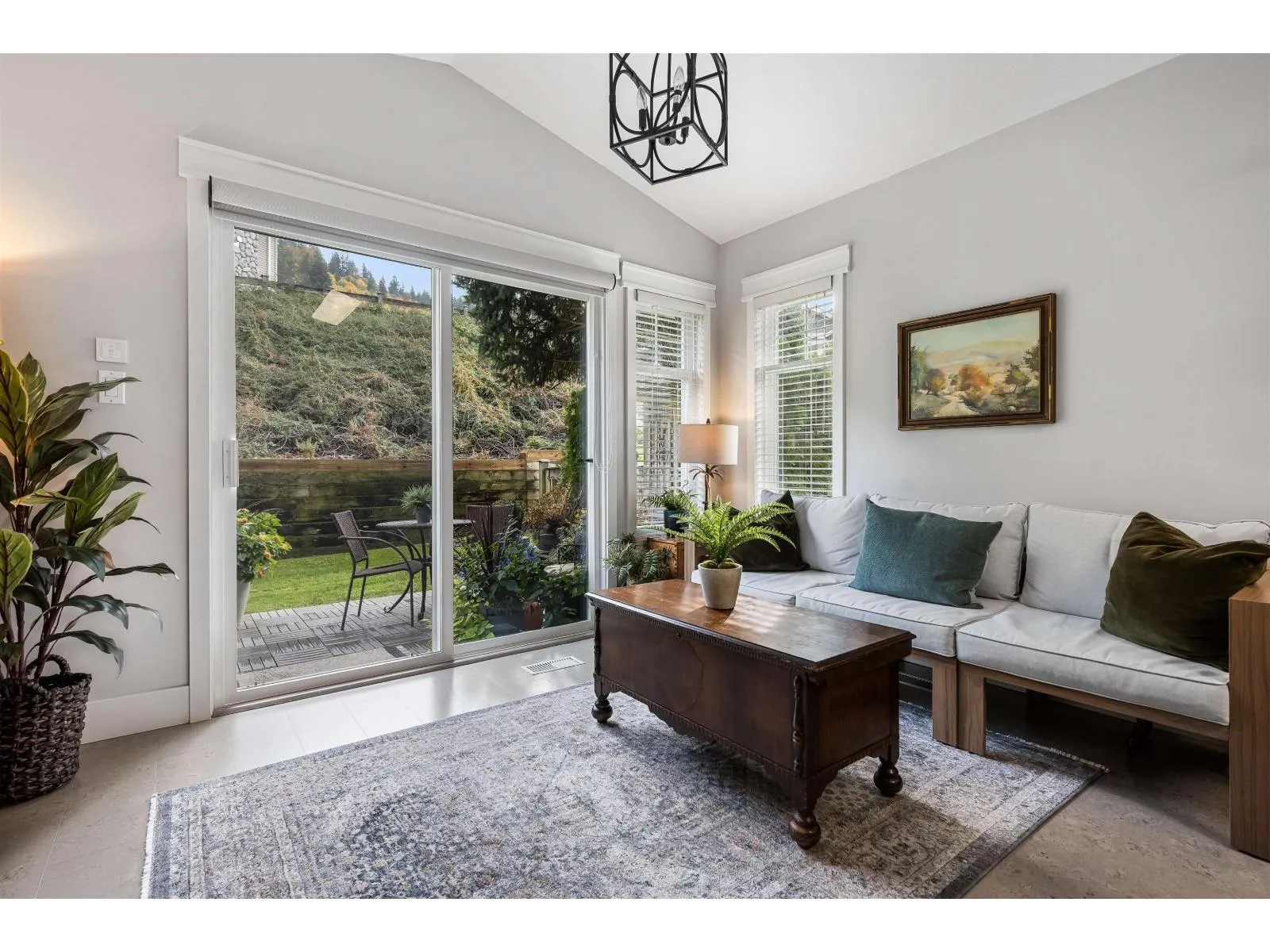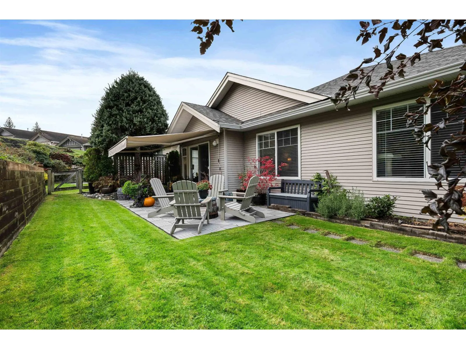 Welcome to Thom Creek Ranch! A stunning 55+ GATED community nestled on scenic Promontory, offering beautifully maintained grounds, walking trails, breathtaking VIEWS & a welcoming clubhouse. This 2 bed 2 bath RANCHER has had many stylish upgrades incl. stainless steel appliances, gas range, modern lighting, updated cabinetry, feature walls, paint & flooring. Relax & unwind in your private, charmingly kept backyard featuring a lovely patio & powered awning for shade & ease. Primary bedroom w/ walk in closet & 4pc ensuite showcasing a relaxing soaker tub & sep shower. Designed for easy living & peace of mind, this home offers central A/C, recent upgrades to the roof, furnace & HWT, oversized single car garage & the confidence of a well-run strata! A wonderful home in a community you'll love! * PREC - Personal Real Estate Corporation (id:27476)