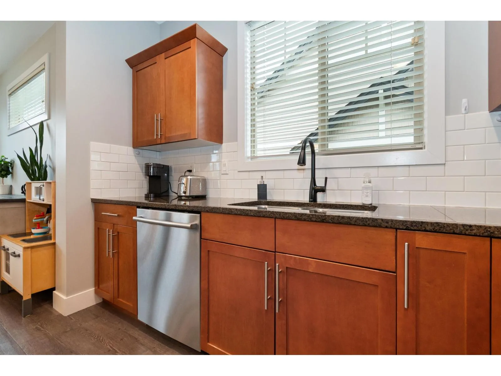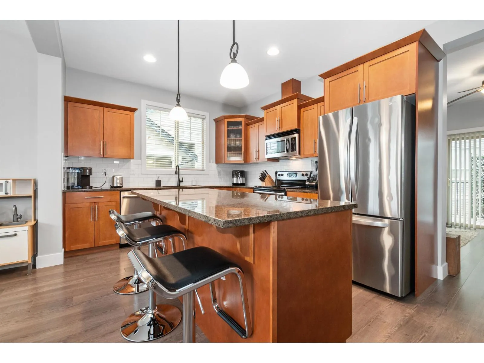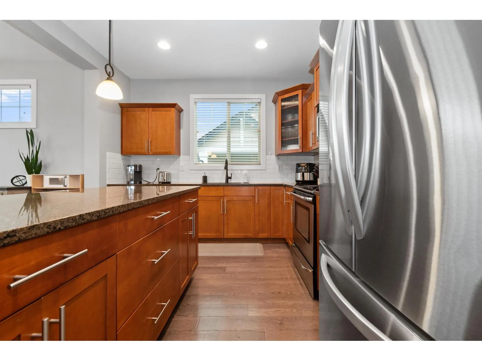 Pristine, bright END-unit townhome offering over 2,027sqft in convenient central location. Main floor features 9' ceilings, wide plank laminate flooring, a spacious kitchen w/ample cabinetry, large island, stainless steel appliances & expansive dining area + powder room. Plus a huge lvgrm w/elec fireplace, + access to balcony! Upstairs, enjoy an oversized primary bdrm w/ensuite & walk-in closet, laundry(new W/D) & 2 big bdrms w/full bath. The lower level incl lrg recrm (4th bdrm?) w/4-piece bath & sliders to patio & south facing fully-fenced yard. Single garage + lrg pkg pad & handy visitor pkg beside. Small, family-friendly 8-unit complex, mins to shopping, restaurants, schools & all amenities. Shows beautifully! Heat pump (3yo), HWT(2021), strata $479.54/mo & 2 small pets ok (max 14"). * PREC - Personal Real Estate Corporation (id:27476)