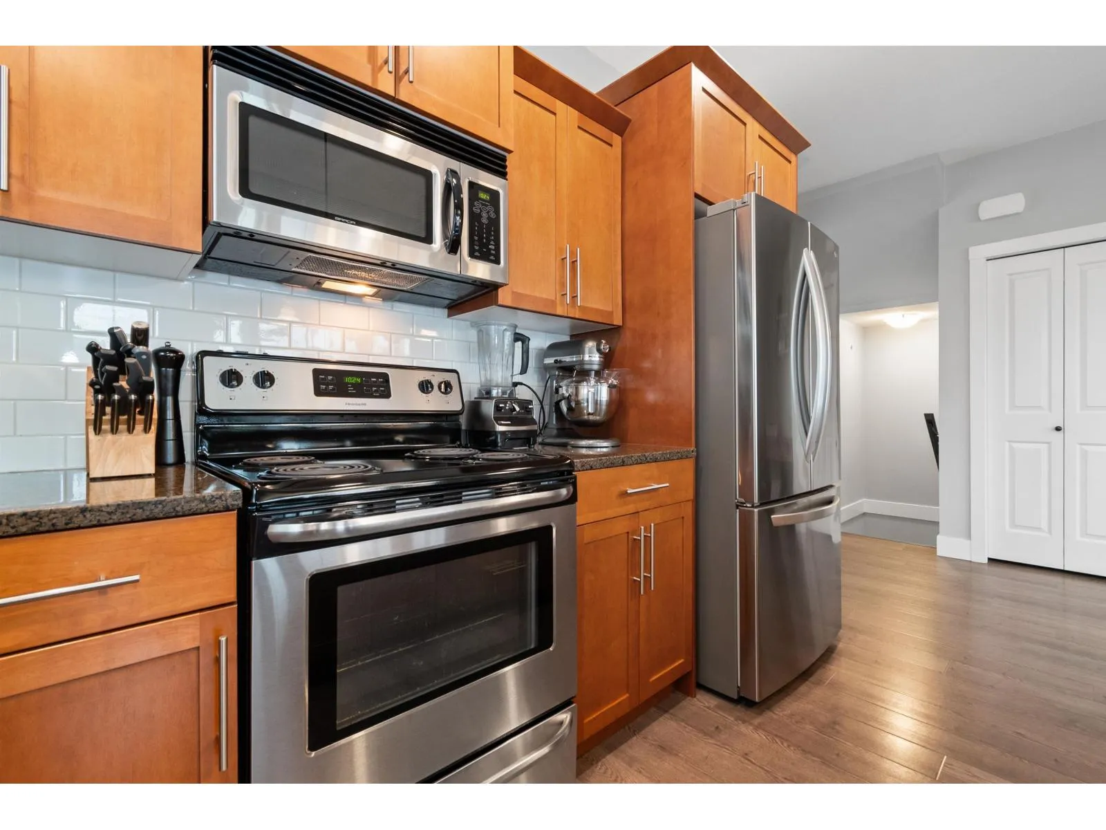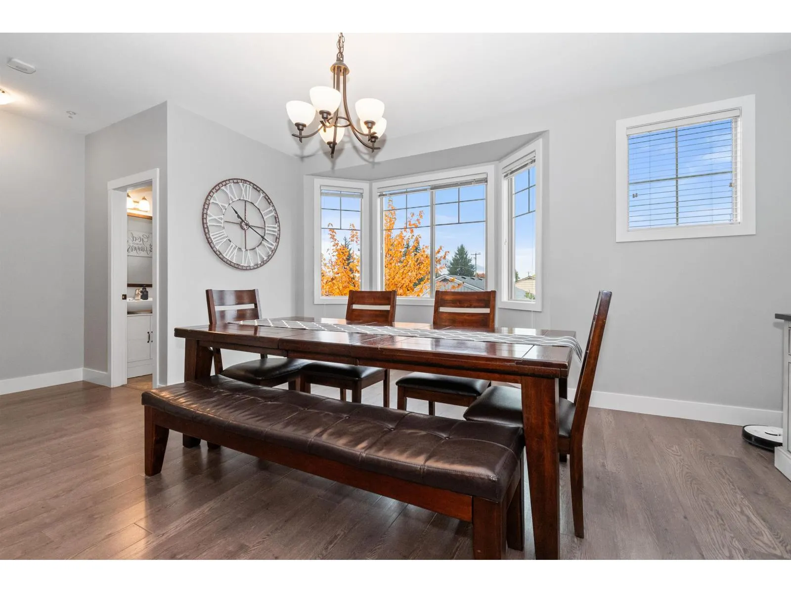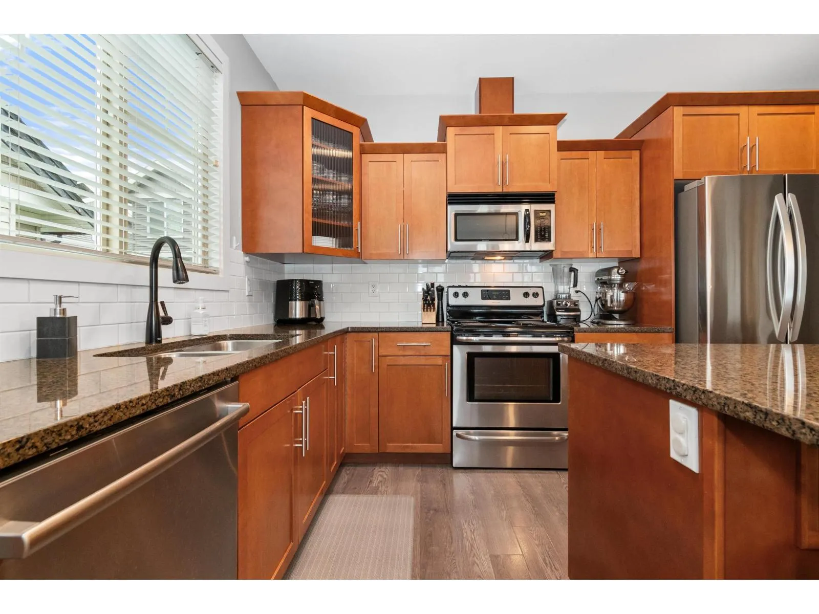 Pristine, bright END-unit townhome offering over 2,027sqft in convenient central location. Main floor features 9' ceilings, wide plank laminate flooring, a spacious kitchen w/ample cabinetry, large island, stainless steel appliances & expansive dining area + powder room. Plus a huge lvgrm w/elec fireplace, + access to balcony! Upstairs, enjoy an oversized primary bdrm w/ensuite & walk-in closet, laundry(new W/D) & 2 big bdrms w/full bath. The lower level incl lrg recrm (4th bdrm?) w/4-piece bath & sliders to patio & south facing fully-fenced yard. Single garage + lrg pkg pad & handy visitor pkg beside. Small, family-friendly 8-unit complex, mins to shopping, restaurants, schools & all amenities. Shows beautifully! Heat pump (3yo), HWT(2021), strata $479.54/mo & 2 small pets ok (max 14"). * PREC - Personal Real Estate Corporation (id:27476)