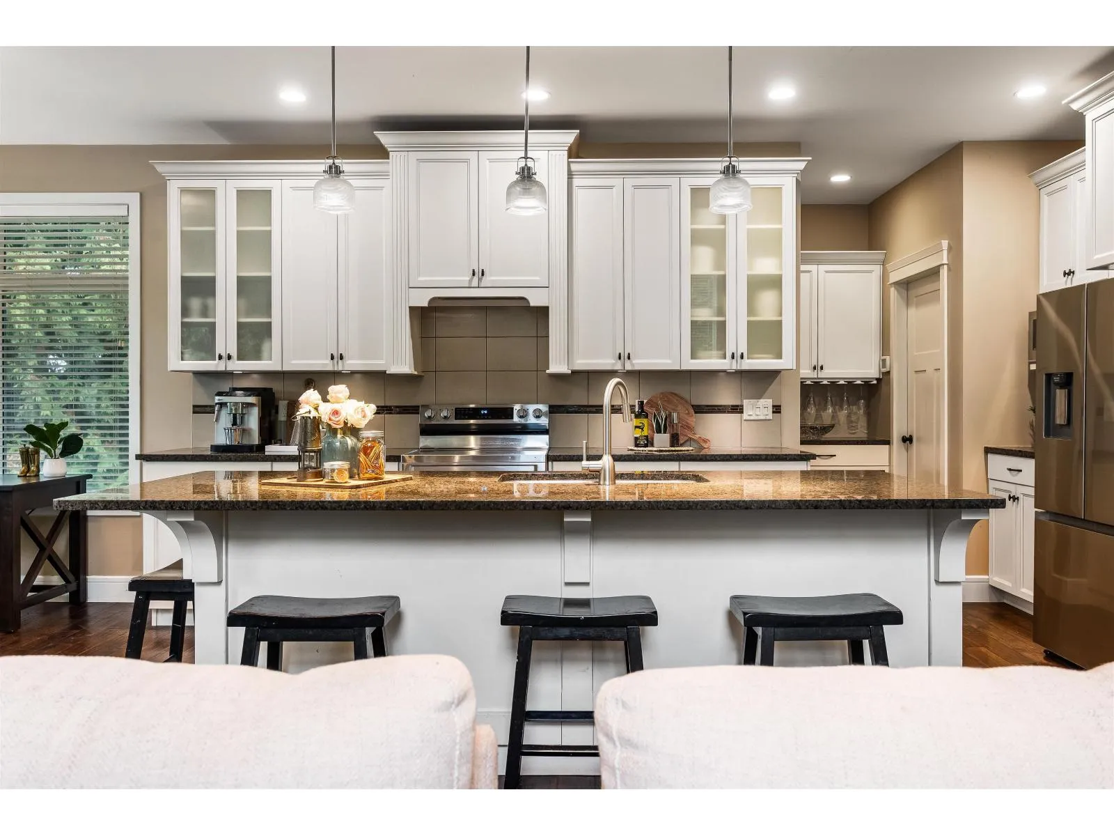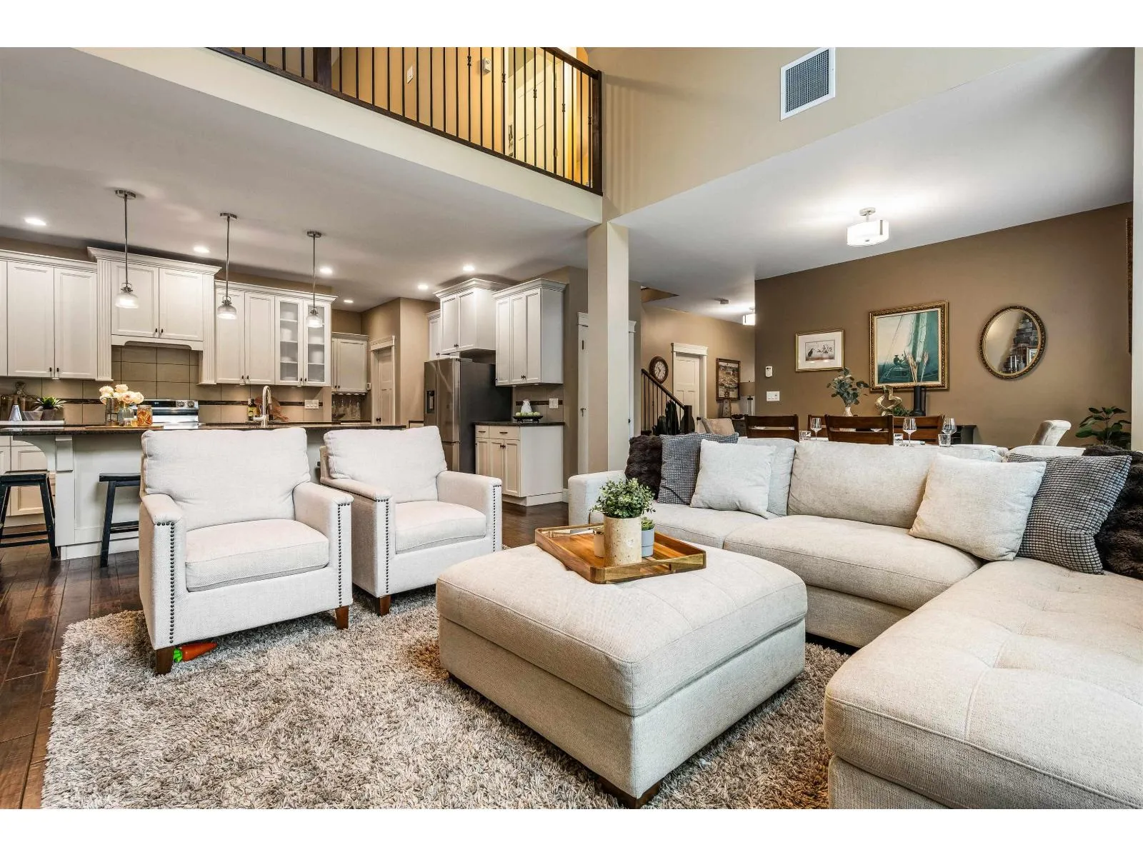 Peaceful, serene location next to the Falls Golf Course w/ easy highway access and walking distance to Unity Christian School. UNIQUE layout w/ PRIMARY and 2nd bedroom on main + 1 bdrm UP w/ flex room and a walkout STUNNNING 3 bdrm basement suite! Whoa! A layout designed for comfortable multigenerational living w/ equal quality finished top to bottom! Triple wide driveway with RV spot and additional side parking near the suite entrance for easy access. Open concept living w/ vaulted ceilings, rock faced floor to ceiling fireplace, Eng HW floors, stone countertops, and high end SS appliances - THE WORKS!! Not to mention, AC, DBL car garage, and a large fenced yard w/ AMPLE privacy - PERFECT for entertaining! Experience elevated living at its finest "- this is where luxury feels like home. * PREC - Personal Real Estate Corporation (id:27476)