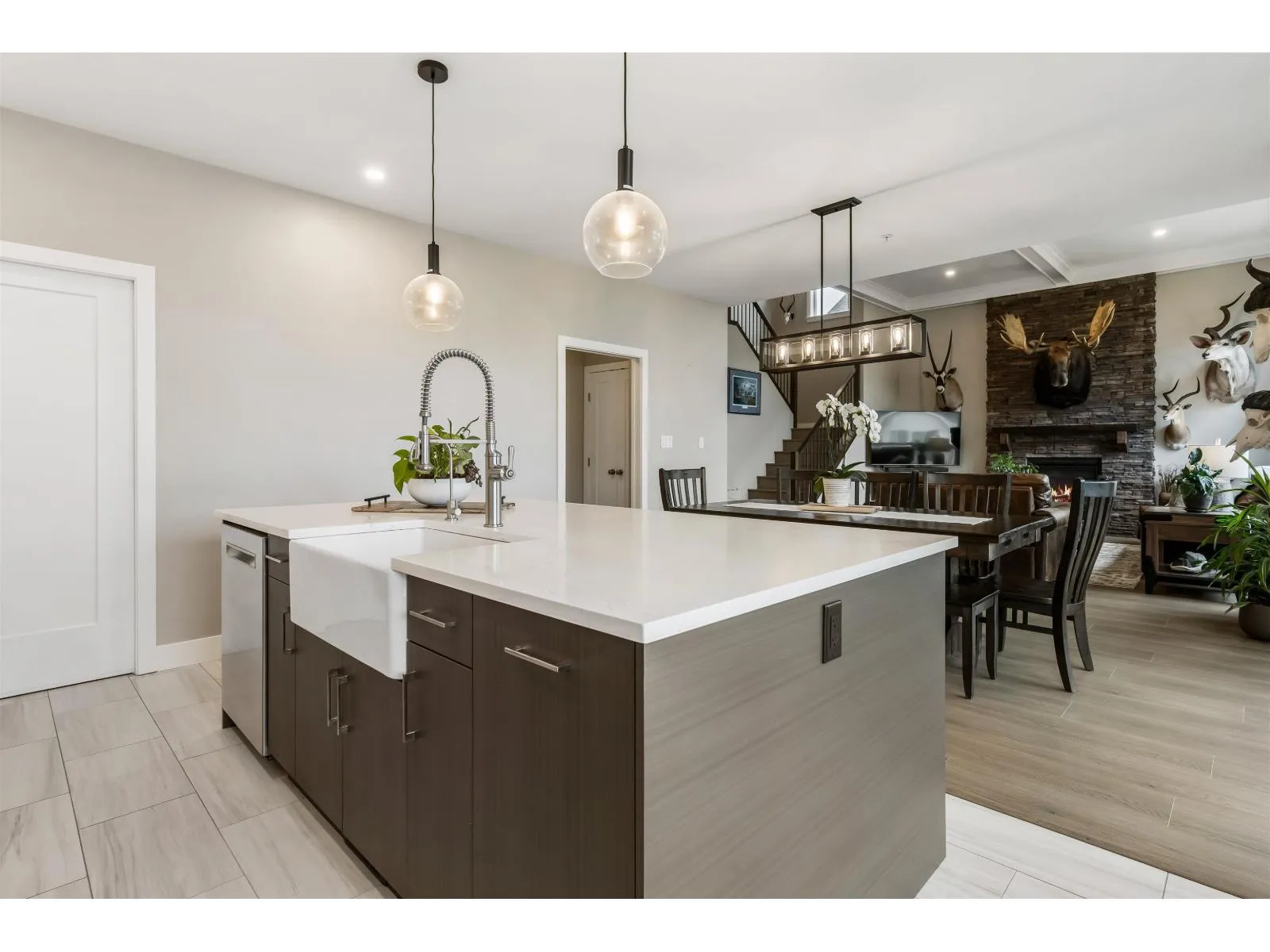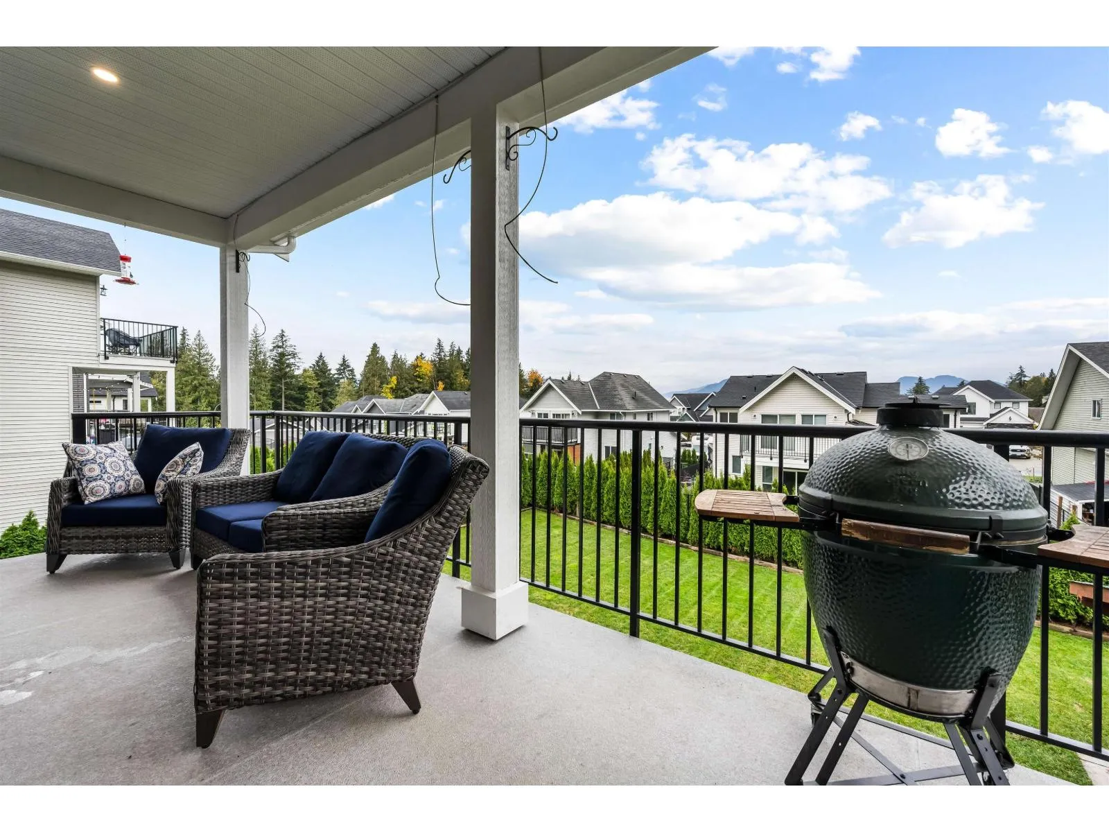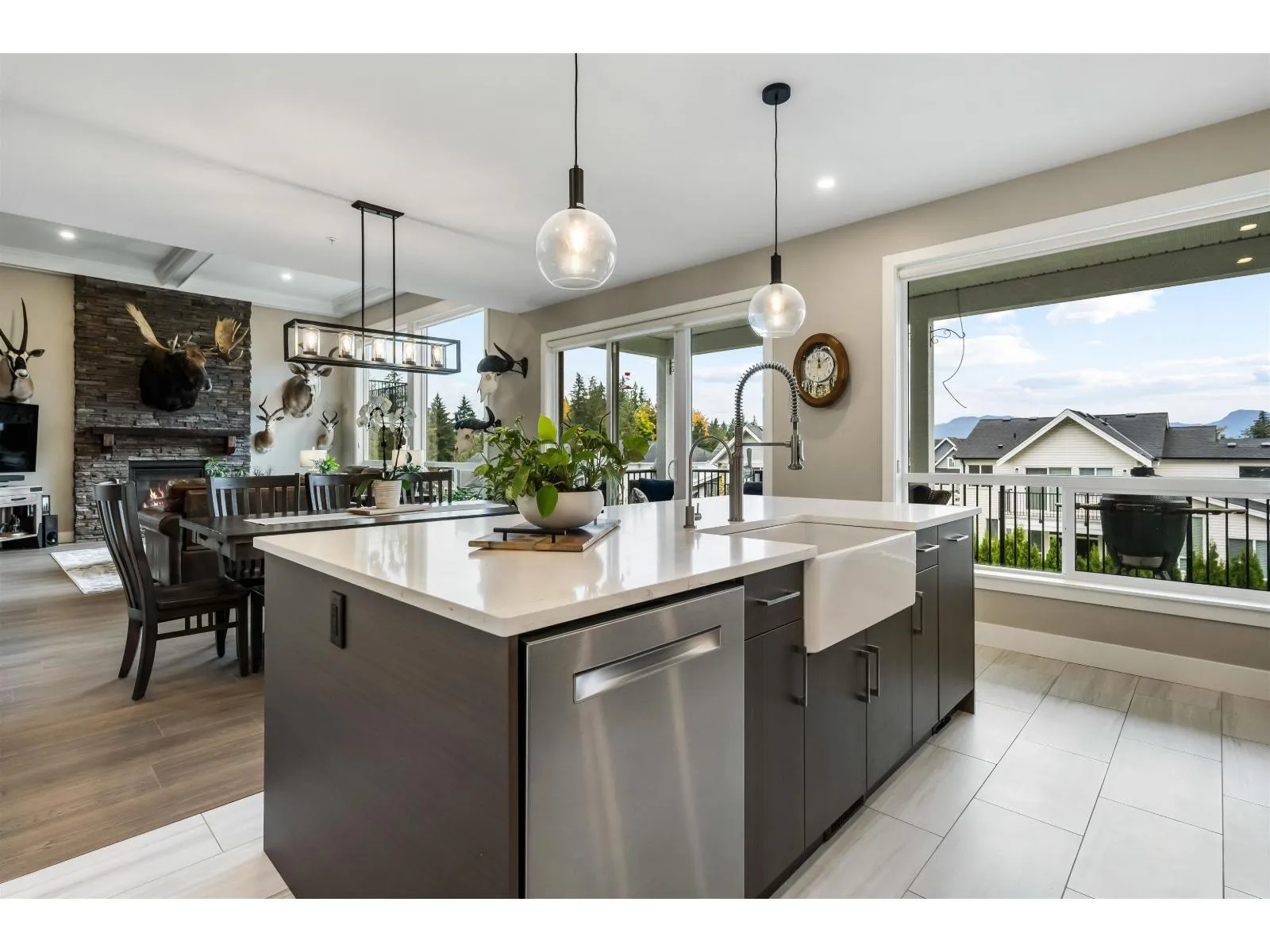Extras Galore! Renovated & shows like BRAND NEW! Inviting open-concept main floor featuring soaring ceilings, warm wood tones & a floor-to-ceiling stone fireplace. The GOURMET kitchen impresses w/ an oversized island, sleek tile flooring, stainless steel appliances & a custom pantry. Step out from your kitchen to the COVERED BALCONY complete with a BUILT-IN BBQ, Gemstone lighting & mountain views "- a true entertainer's dream. Professionally completed daylight suite downstairs (1"â2 bedrooms) offers high-end finishes, cozy fireplace, & separate entrance-perfect for extended family or a high class rental. Enjoy the fully irrigated, landscaped & fenced yard complete w/ a dog run "- ready for kids, pets & outdoor fun. Located in a FABULOUS FAMILY AREA surrounded by parks, trails & scenic views!! * PREC - Personal Real Estate Corporation (id:27476)