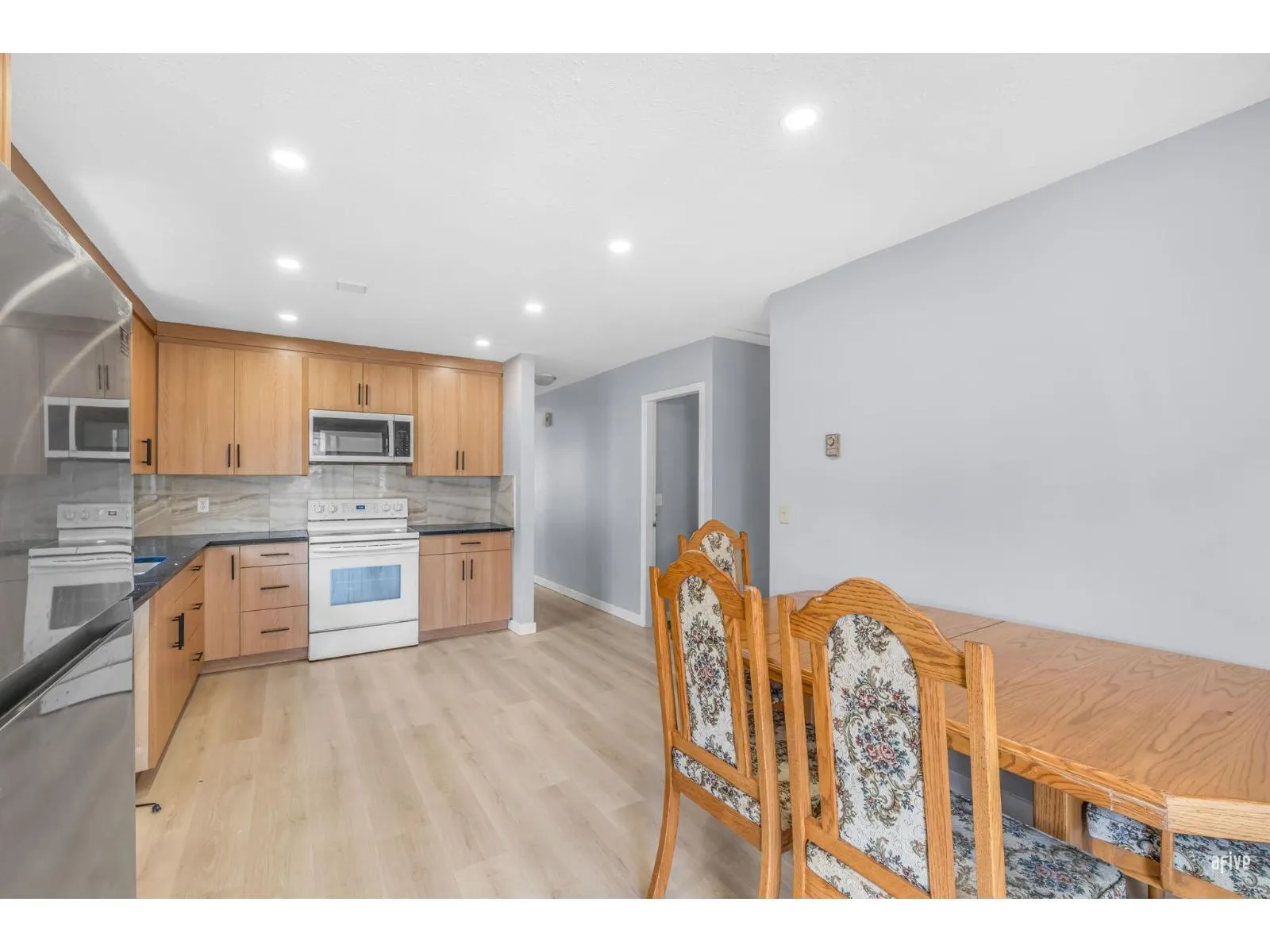 Charming 3-Bedroom Rancher with Modern Upgrades & Prime Location! Welcome to this beautifully updated rancher featuring fresh paint, new flooring, and modern lighting throughout. The stylish kitchen was fully renovated in 2025 with new cabinets and open shelving, perfect for everyday living and entertaining. The home offers three well-sized bedrooms, including a primary suite with a full ensuite bathroom. Enjoy outdoor living on the covered, south-facing patio overlooking a fully fenced yard ideal for kids, pets, or gardening. Located just steps from Starbucks and Midtown shops, with quick access to Hwy 1 for commuters. Room for 2 in the driveway plus ample street parking. A fantastic opportunity for first-time buyers, downsizers, or investors. Call to book your private showing today! (id:27476)