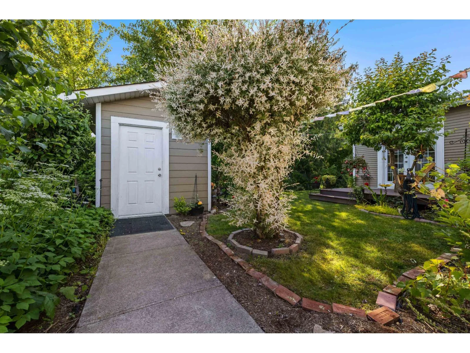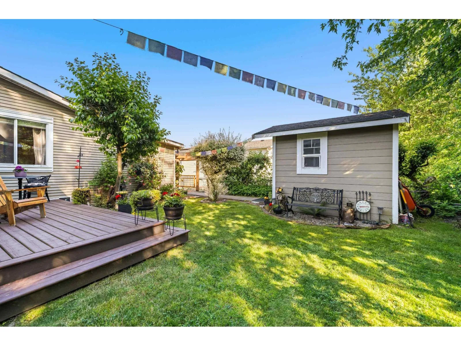 This spacious 2-bedroom, 2 bath modular home is one you don't want to miss. Over 1250 sqft of living space & many outdoor areas to enjoy. The home features, natural gas heating & stove, central A/C & recently upgraded plumbing. Impressive primary suite feature flex room & French doors to a private garden setting w/ sundeck. Fenced yard has bountiful fruit trees, established concord grape vine & newly built pergola. There is still more! Attached workshop, covered patio (currently set up as outdoor kitchen) & separate 7'5x 9'8 powered shed, Extra wide driveway w/ plenty of parking. Located in the desirable Rainbow Estates with Clubhouse & RV parking. EXCELLENT location w/ mountain views, tons of amenities nearby. Pad rent $495. Lease ext. 2072. Age restriction only 40 years young! (id:27476)