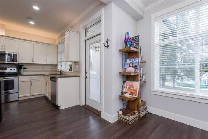 Large and modern 3 bed/2.5 bath townhome that is centrally located and steps away from Kinsmen Park and close to all levels of schools with central A/C! The open concept main floor has a stunning kitchen with a large island that leads out to a private deck. Spacious family room with a beautiful gas fireplace and powder room. There is also a open flex area that could be a home office or dining area. Built in speakers. Upstairs has 3 spacious bedrooms, including a bright master bedroom with a gorgeous ensuite with a separate water closet! Additional 2 bedrooms/1 full bath and laundry are also located on the upper floor. Basement has a large rec room that enters into the garage that has been upgraded with an epoxy floor! Perfect large townhome for the whole family, that also allows 2 pets! (id:27476)