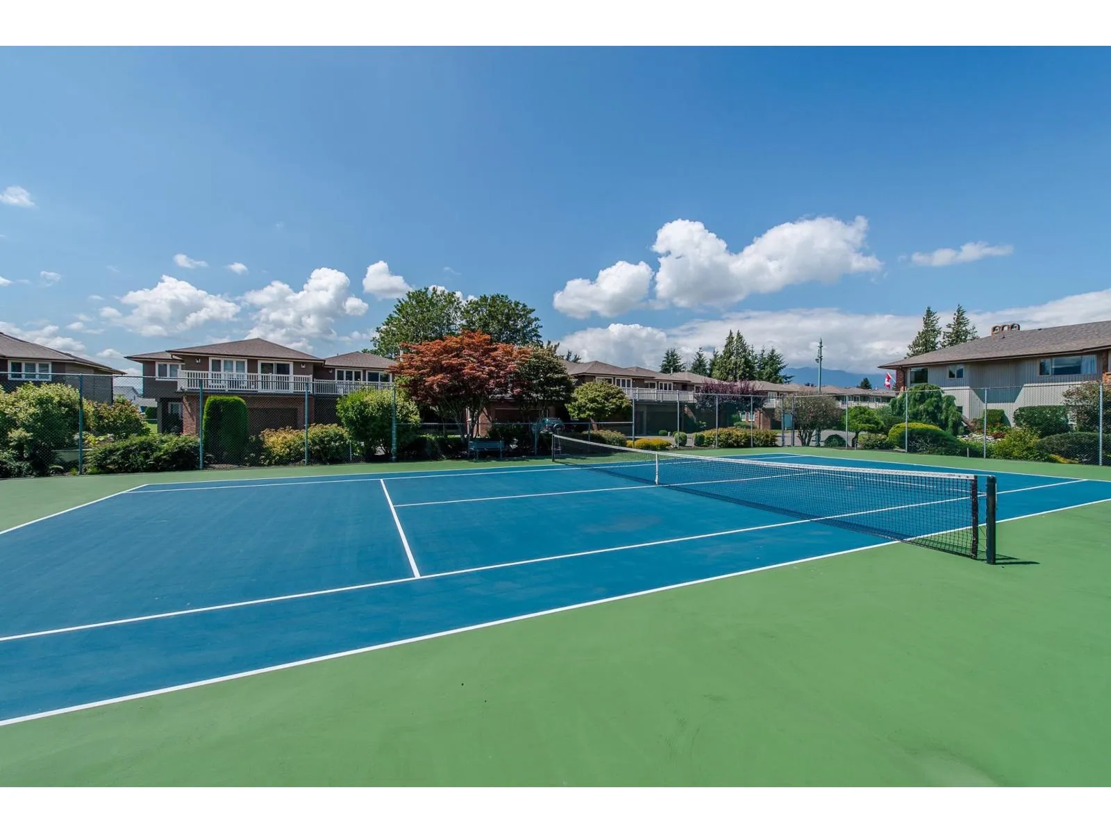 Welcome to Edenbank "- Sardis' premier 55+ gated community featuring unmatched amenities and beautifully manicured grounds. This end-unit townhome offers 3 beds + den, 3 baths, and elegant living throughout. The bright living room impresses with soaring 14' ceilings and a cozy gas fireplace, while the large primary suite includes a private balcony, walk-in closet, and ensuite. Enjoy peace of mind with updated crawlspace insulation and poly, increased attic insulation, a new hot water tank (2024), and central A/C (2021). Relax or entertain in the private backyard (backs greenspace!) with a new steel gazebo. Enjoy the indoor pool, spa, sauna, games room, tennis court, clubhouse, workshop, and serene walking paths along Luckakuck Creek "- all in a central location close to everything. Get in!!! * PREC - Personal Real Estate Corporation (id:27476)