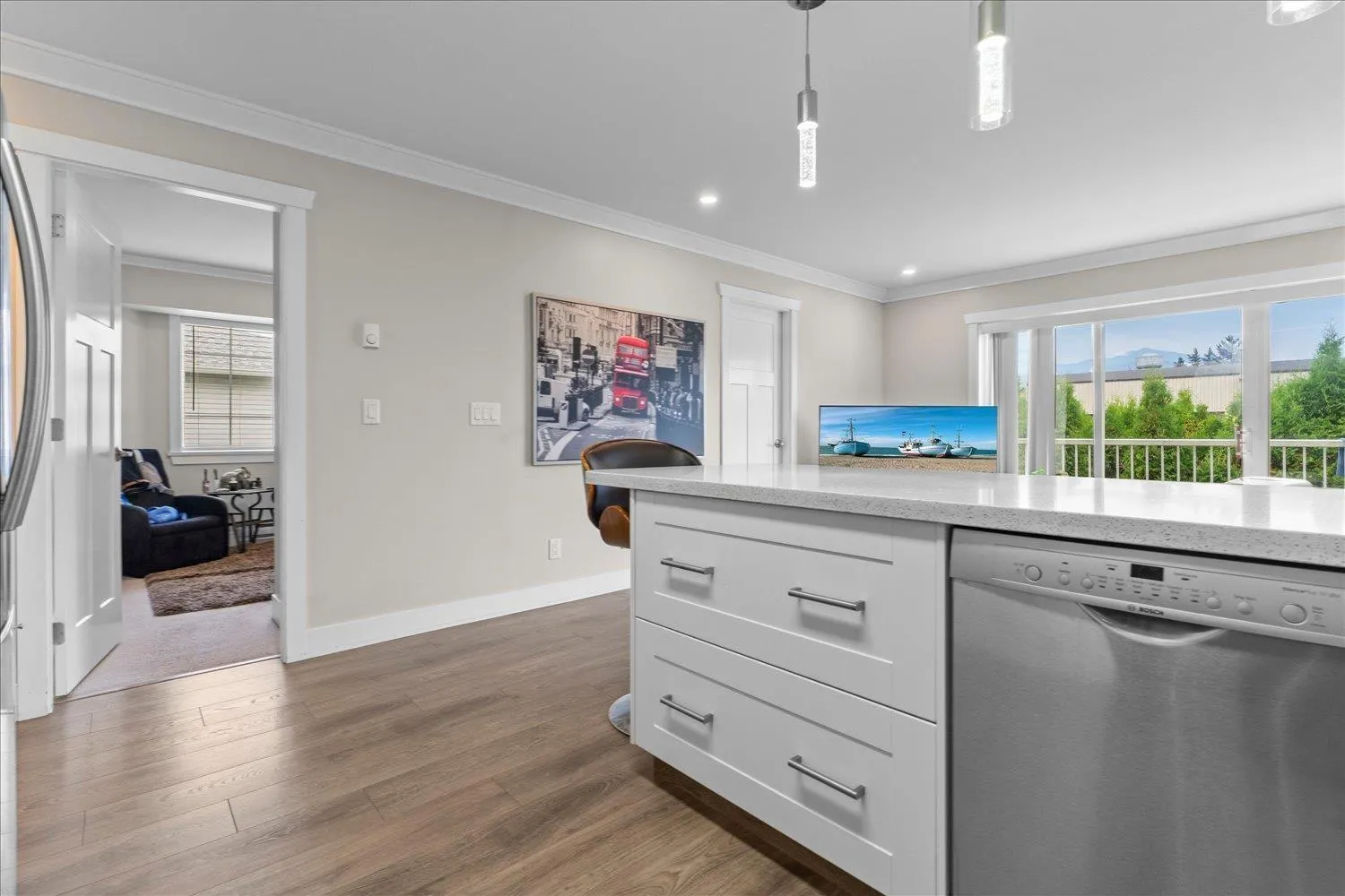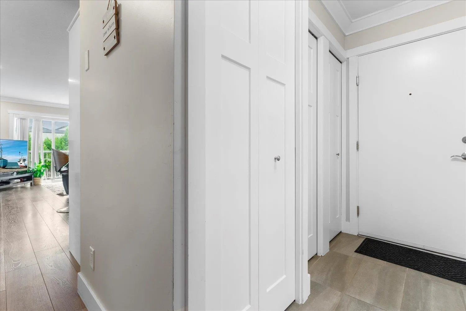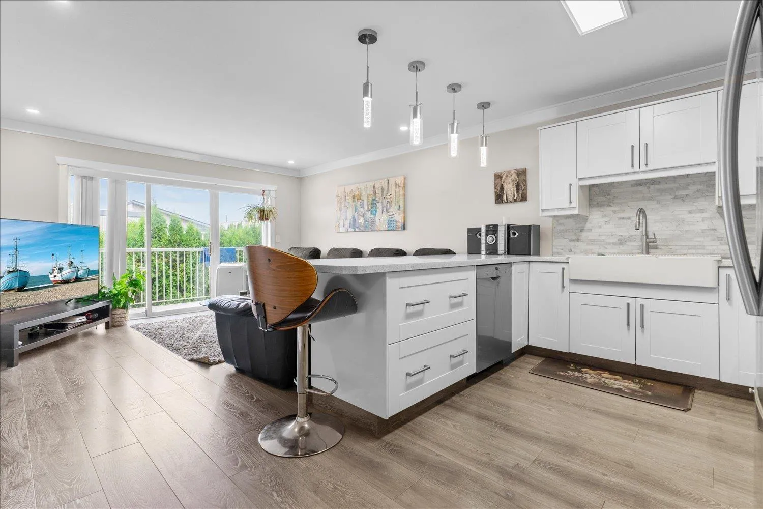 Be impressed by this large THREE BEDROOM corner condo at McIntosh Village! You'll love the floor to ceiling renovations and an abundance of living space. This suite features trendy laminate floors, updated LED lighting, crown molding, and in-suite laundry. A gorgeous white kitchen with quartz counters and an eating bar is the focal point of the open living area and offers plenty of cabinetry. From the living area, step out onto the private balcony with mature landscaping all around. The bathroom is also beautifully updated with slate tile and white cabinetry. Extra perks include an in-condo storage room, affordable strata fees, and top-floor living. Conveniently located between Sardis and Chilliwack's rejuvenated downtown, this condo is the ideal home for a first time buyer. SHOWS A TEN! (id:27476)
