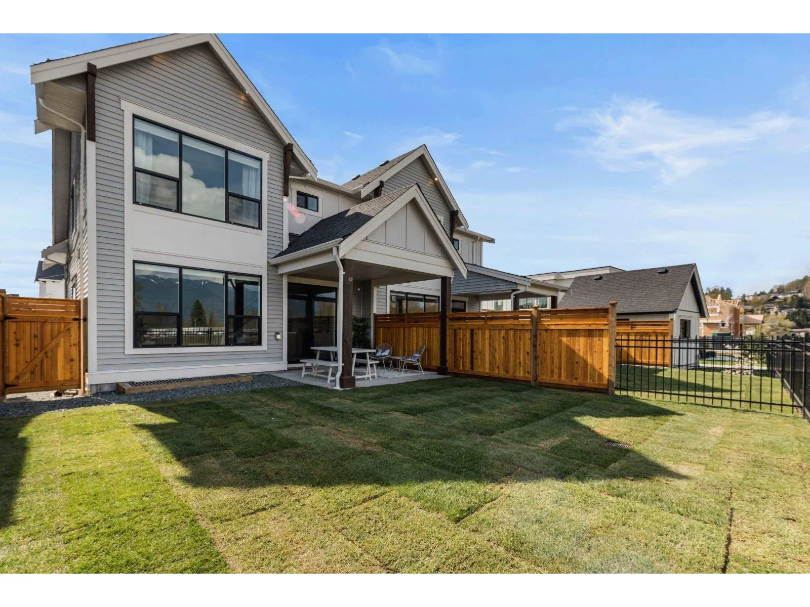 Welcome to Cedarbrook"-Fraser Valley's Residential Community of the Year"-built by Multi-Family Home Builder of the Year, Westbow. Looking for a brand new duplex that has never been live in? This is the only one in Chilliwack and still includes warranty. It features 4 bedrooms, 3 bathrooms, and a full basement perfect for a media room, home gym, or kids play area. Step inside to high ceilings, an open-concept layout, and large windows that fill the home with natural light. Enjoy a covered patio and a large fenced backyard backing onto a walking trail, green space, mountain views, and the best playground and splash park Chilliwack has to offer. This is more than a home"-it's where families thrive, with community events, walkable amenities, and a lifestyle designed for family and connection. (id:27476)
