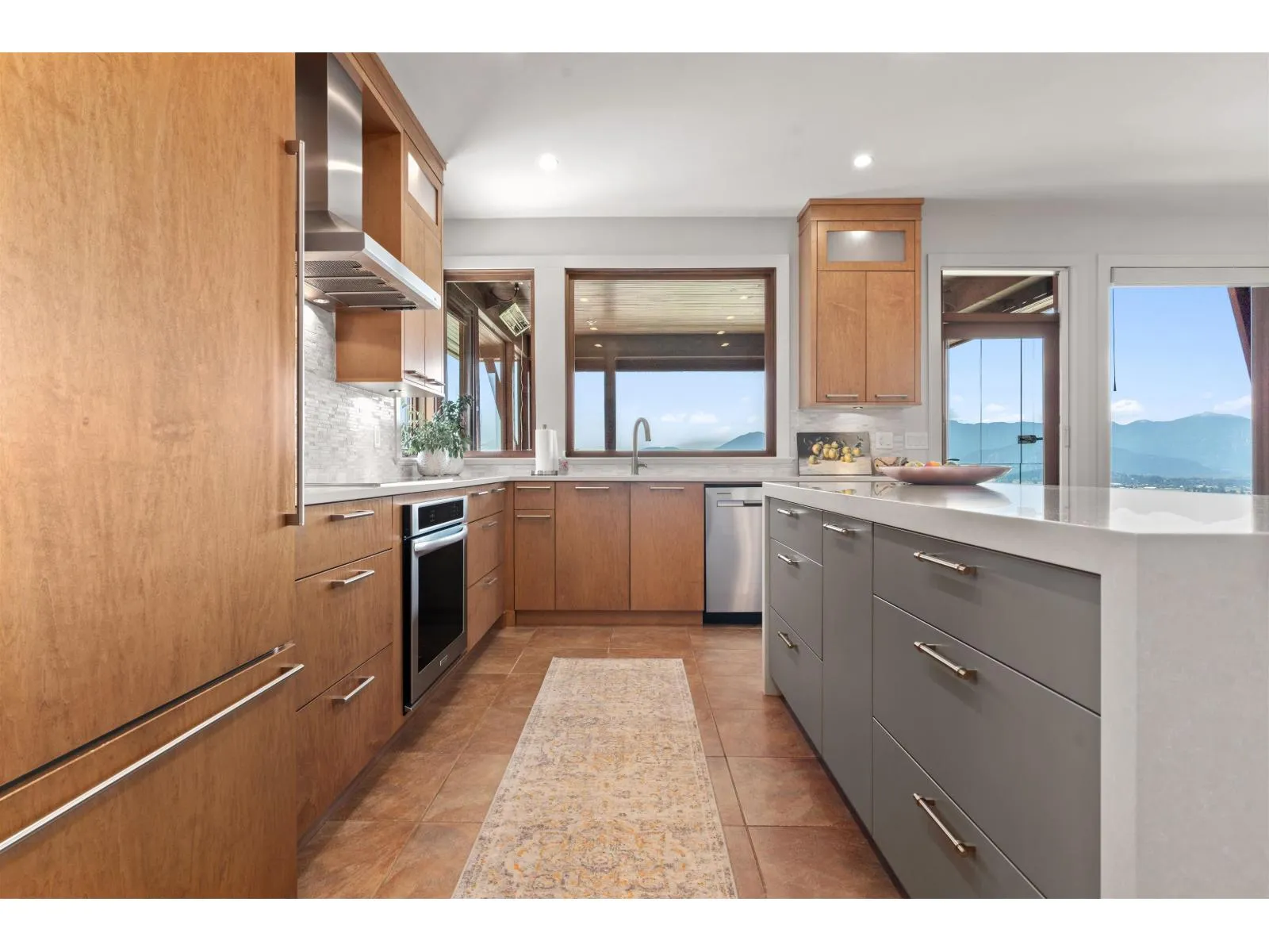 First time on the market! This stunning Mt. Archibald home offers privacy, tranquility, and sweeping views from Harrison to the Mission Monastery. A timeless Trace Wisse design, this 4-bedroom, 4,500 sq. ft. rancher with walkout basement sits on a beautifully landscaped 1/3 acre. Features include soaring ceilings, large windows, updated kitchen, office, and baths, heated tile floors, and on-demand hot water. Enjoy two heated covered patios, a spacious deck, in-ground sprinklers, security cameras, RV parking, and a workshop with generator hookups. Exceptional quality throughout, with suite potential below. Must be seen! (id:27476)