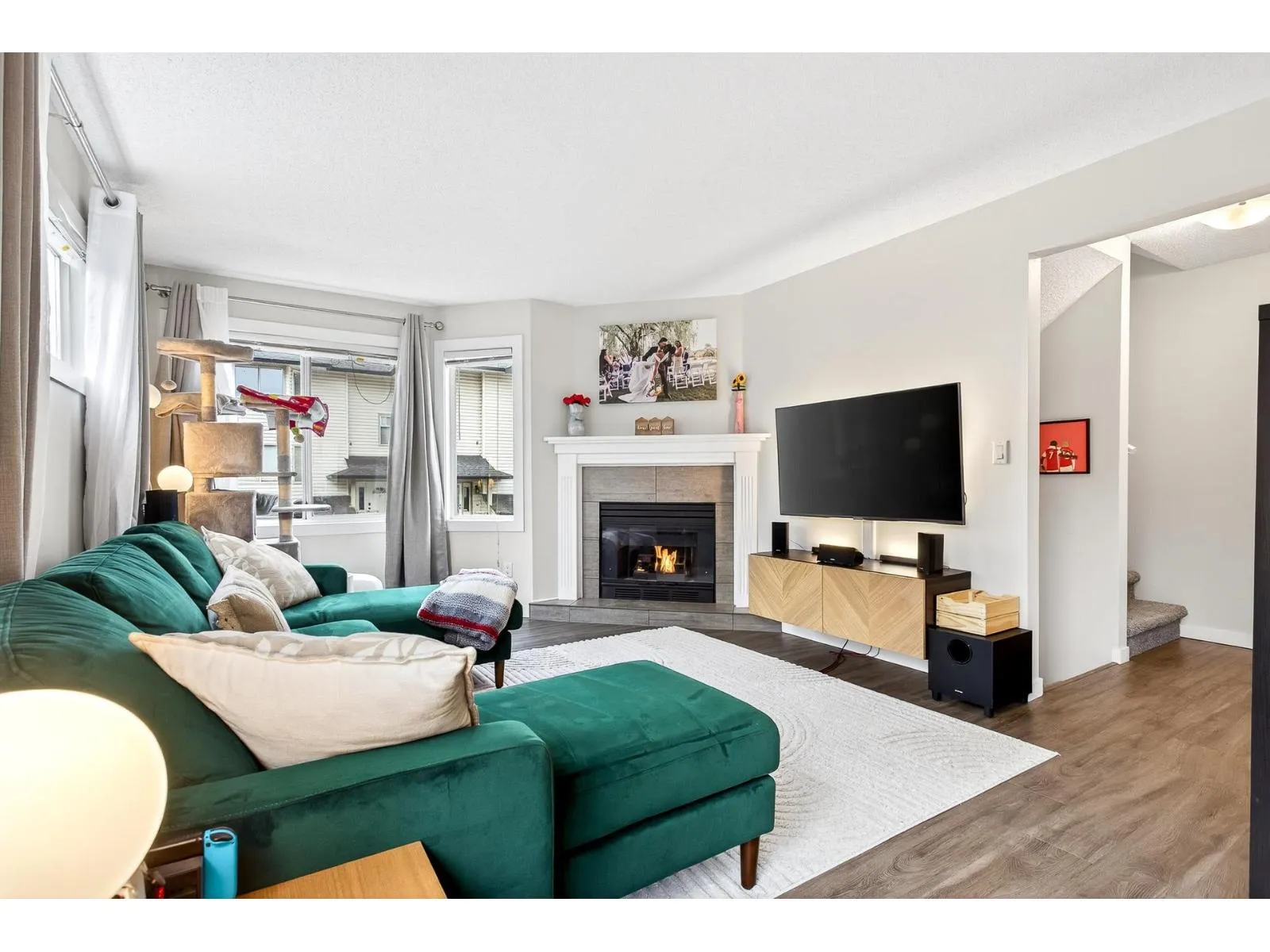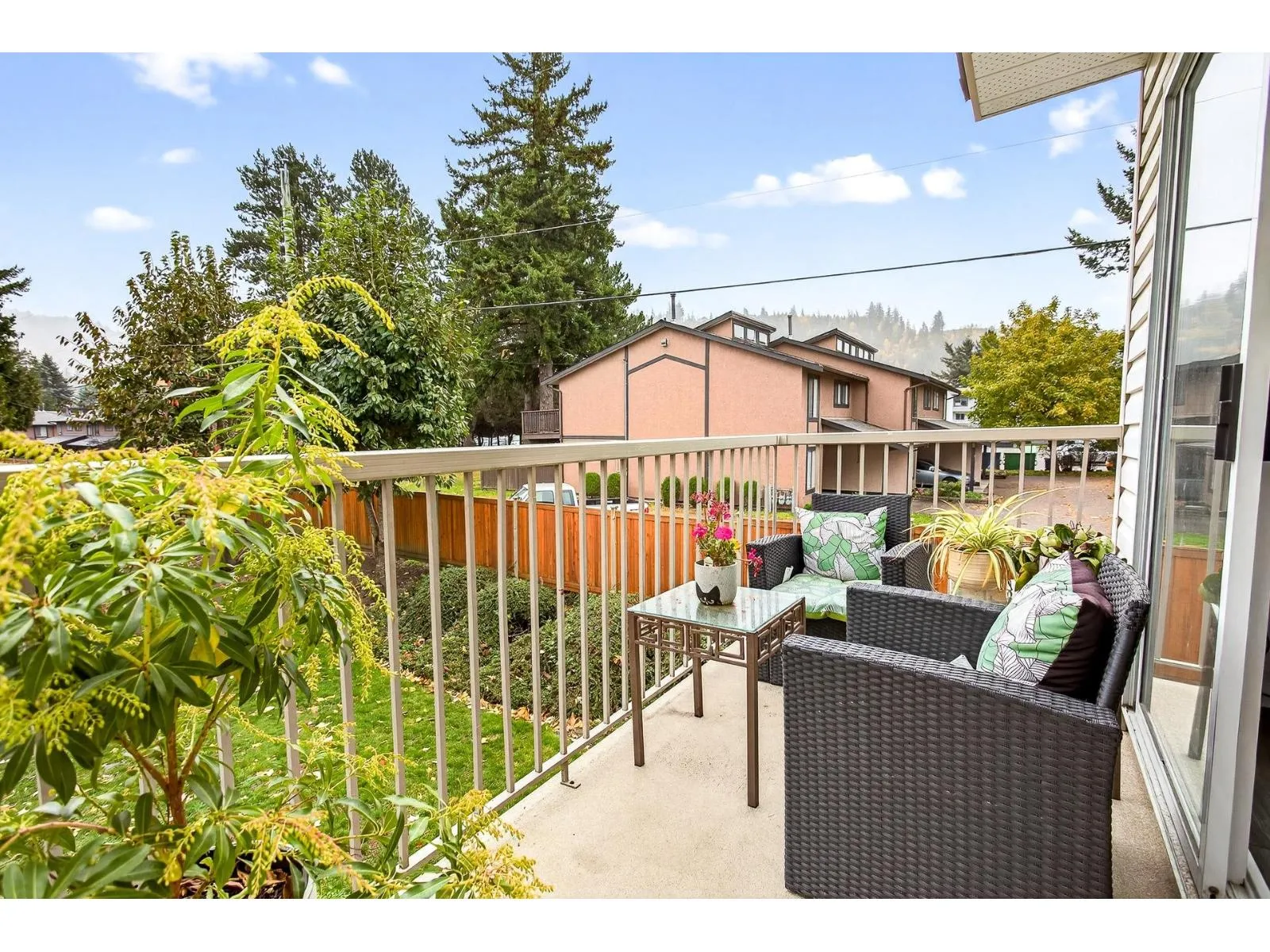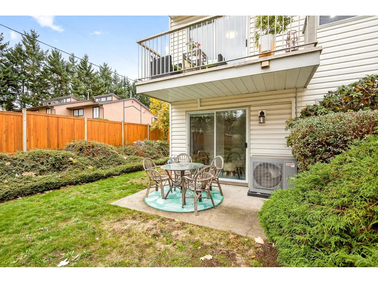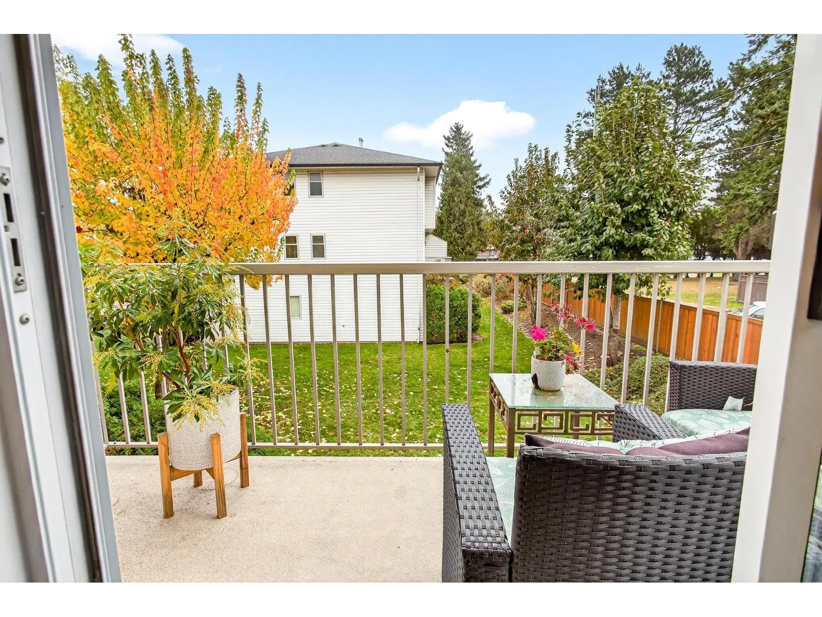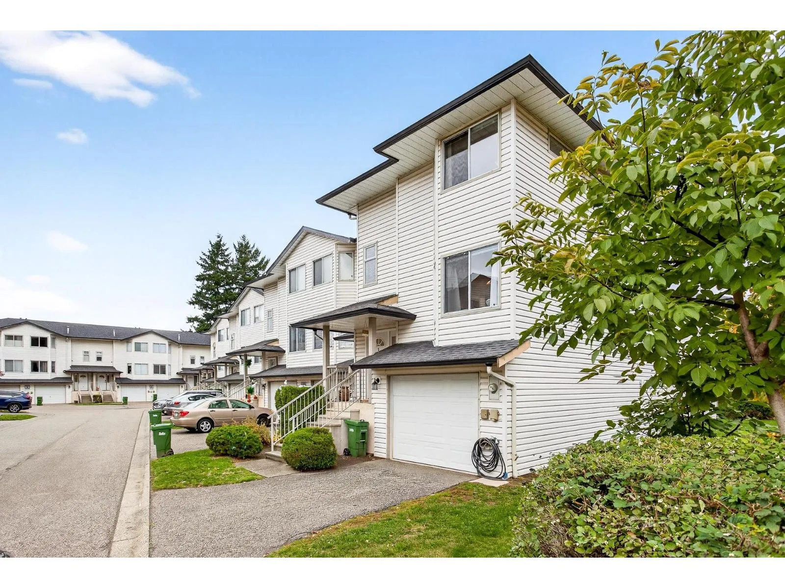 **Parkview Place** Spacious, Bright and updated END UNIT! Extensively renovated in 2021 including all white kitchen with S/S appliances, laminate flooring, baths, sinks, window blinds, pot lights & cozy gas fireplace. New (2024) hot water tank, two stage furnace + HEAT PUMP. Main level features living room with gas fireplace, dining room, updated kitchen + an eating area with access to the balcony. Upstairs has 3 spacious bedrooms including a primary suite with walk-in-closet + 2pc ensuite. Basement rec room + access to patio. Nice open yard, GARAGE and PET FRIENDLY! Close to bus, all levels of schools, shopping, Garrison Crossing, Vedder Crossing, parks and recreation including CULTUS LAKE! (id:27476)
