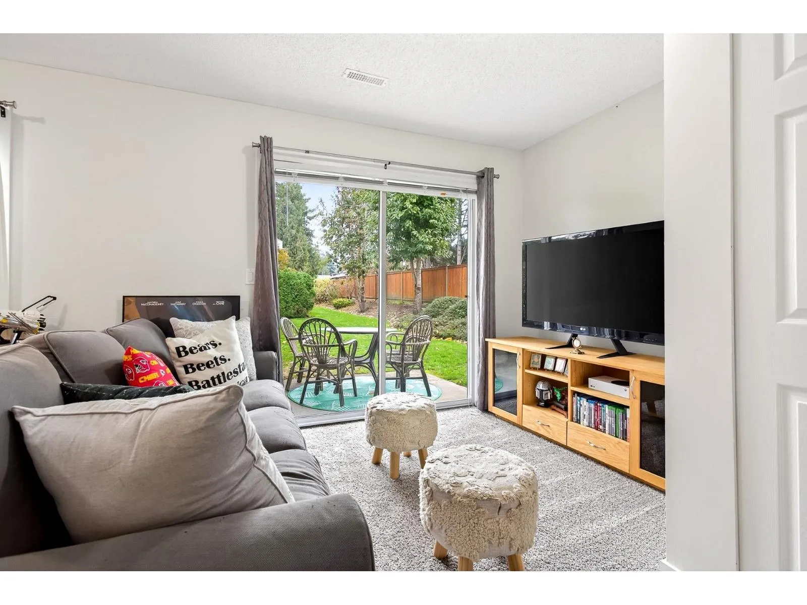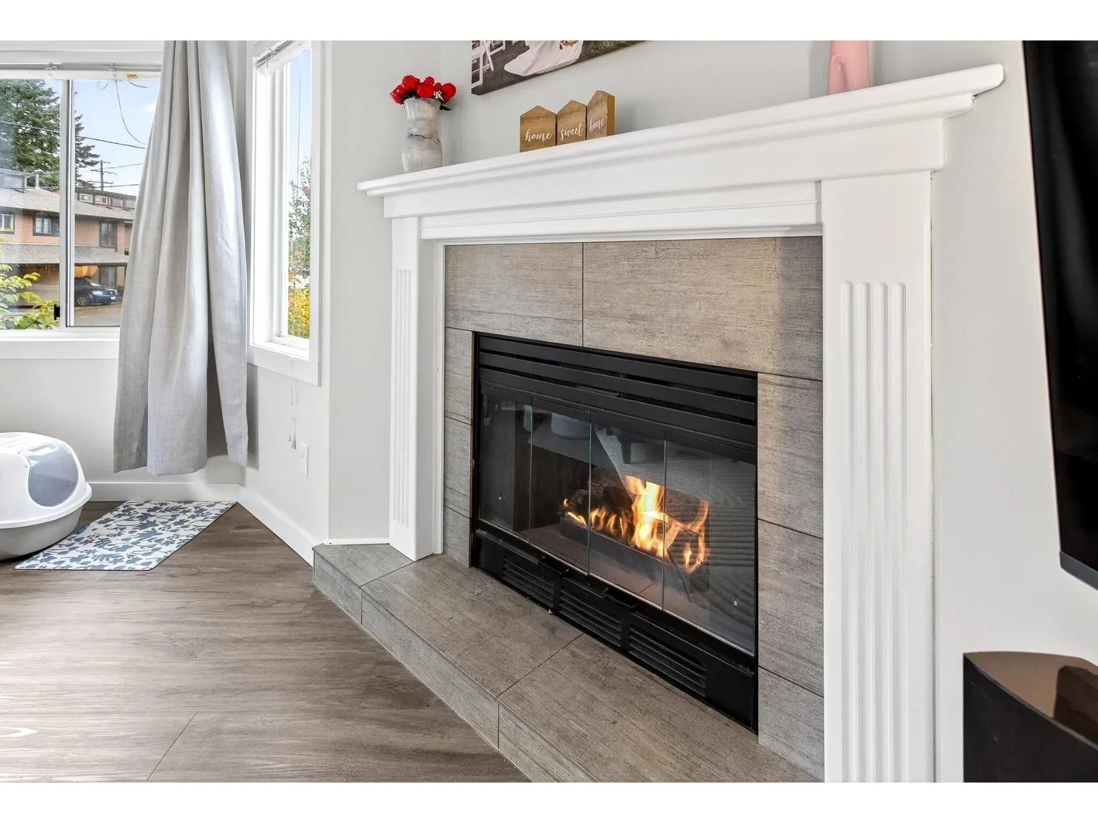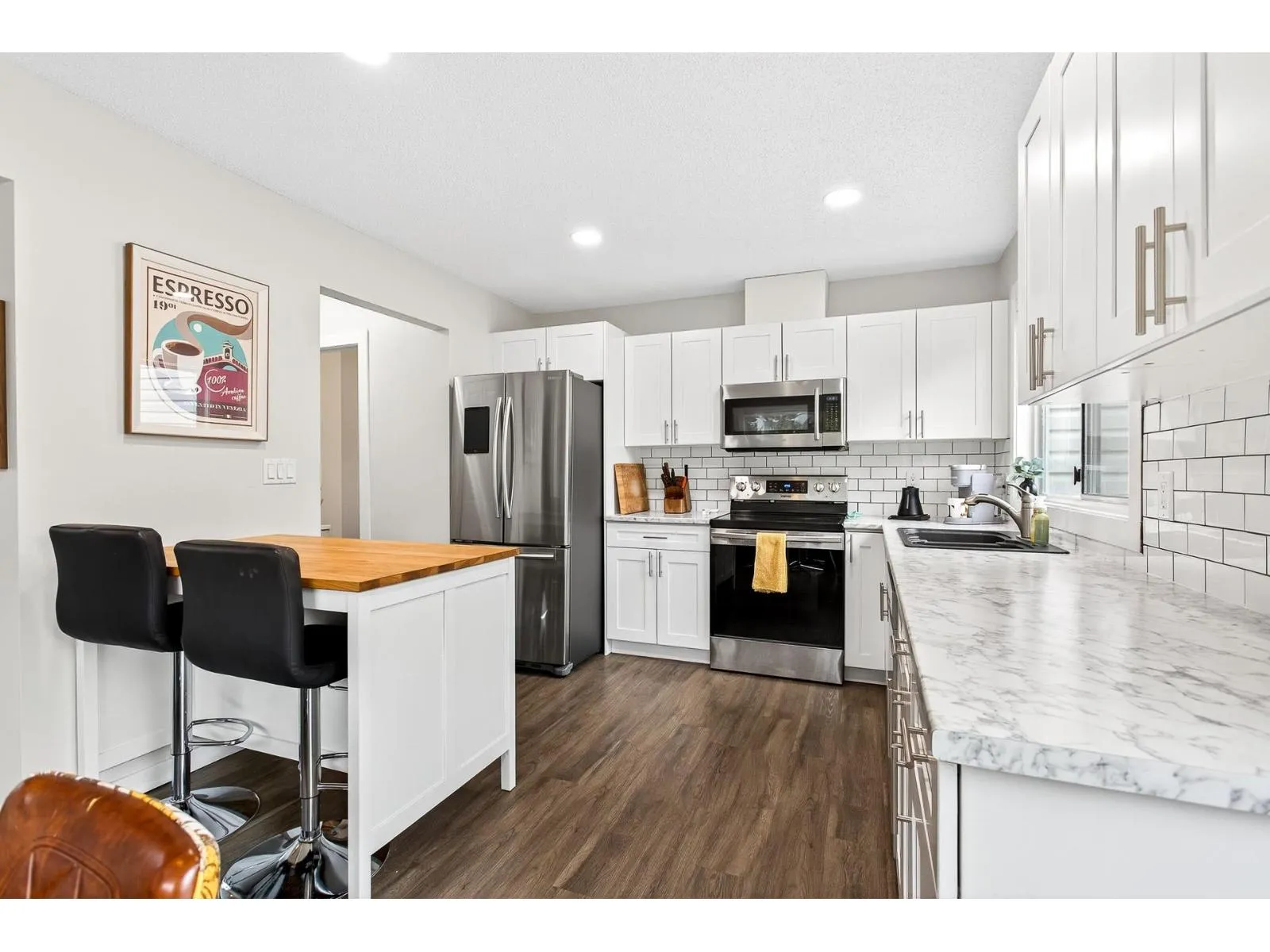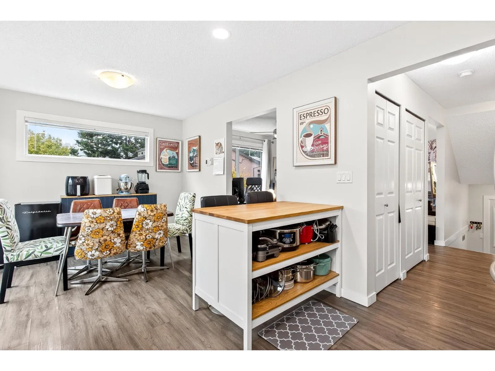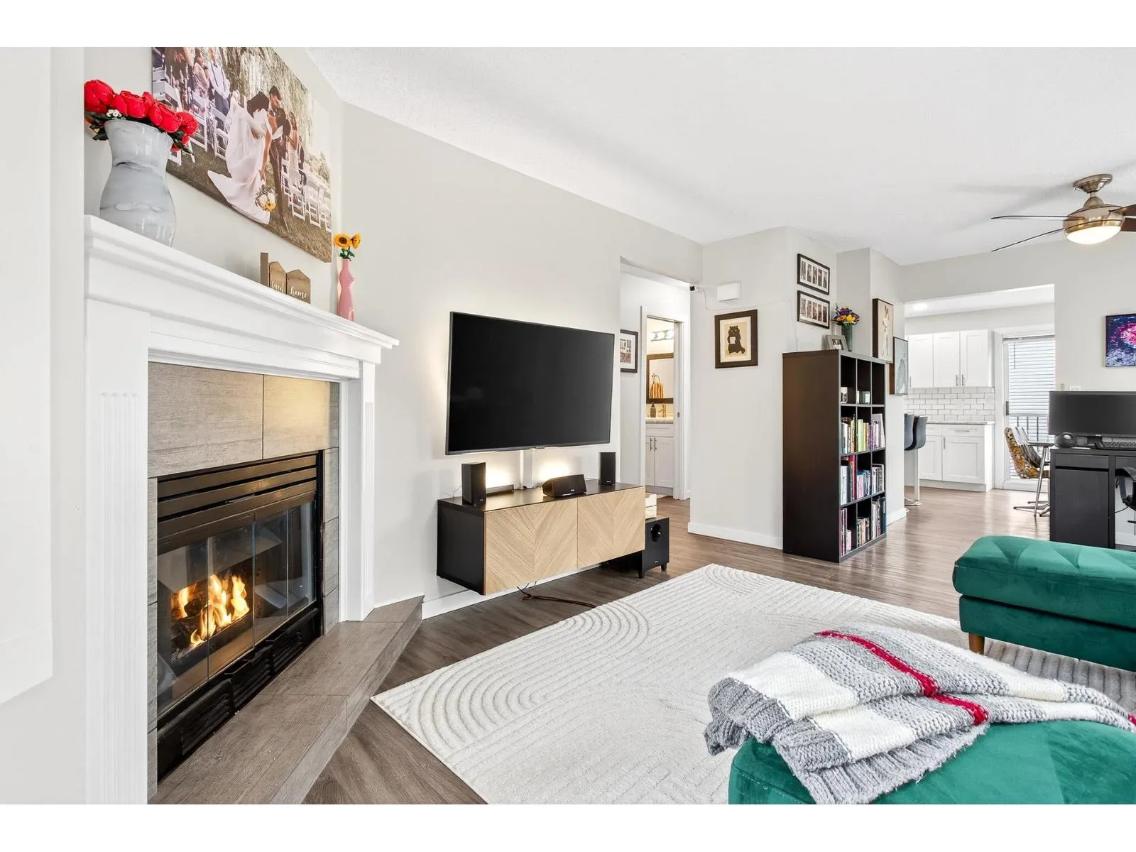 **Parkview Place** Spacious, Bright and updated END UNIT! Extensively renovated in 2021 including all white kitchen with S/S appliances, laminate flooring, baths, sinks, window blinds, pot lights & cozy gas fireplace. New (2024) hot water tank, two stage furnace + HEAT PUMP. Main level features living room with gas fireplace, dining room, updated kitchen + an eating area with access to the balcony. Upstairs has 3 spacious bedrooms including a primary suite with walk-in-closet + 2pc ensuite. Basement rec room + access to patio. Nice open yard, GARAGE and PET FRIENDLY! Close to bus, all levels of schools, shopping, Garrison Crossing, Vedder Crossing, parks and recreation including CULTUS LAKE! (id:27476)