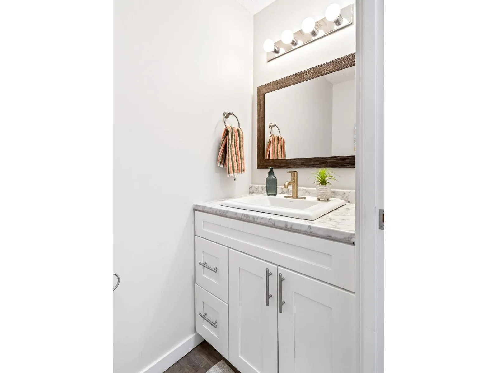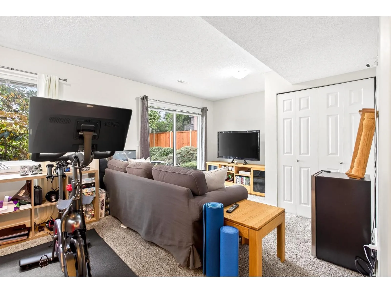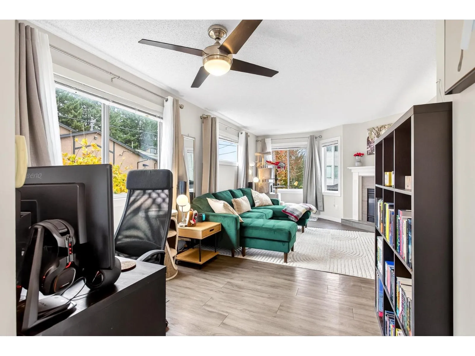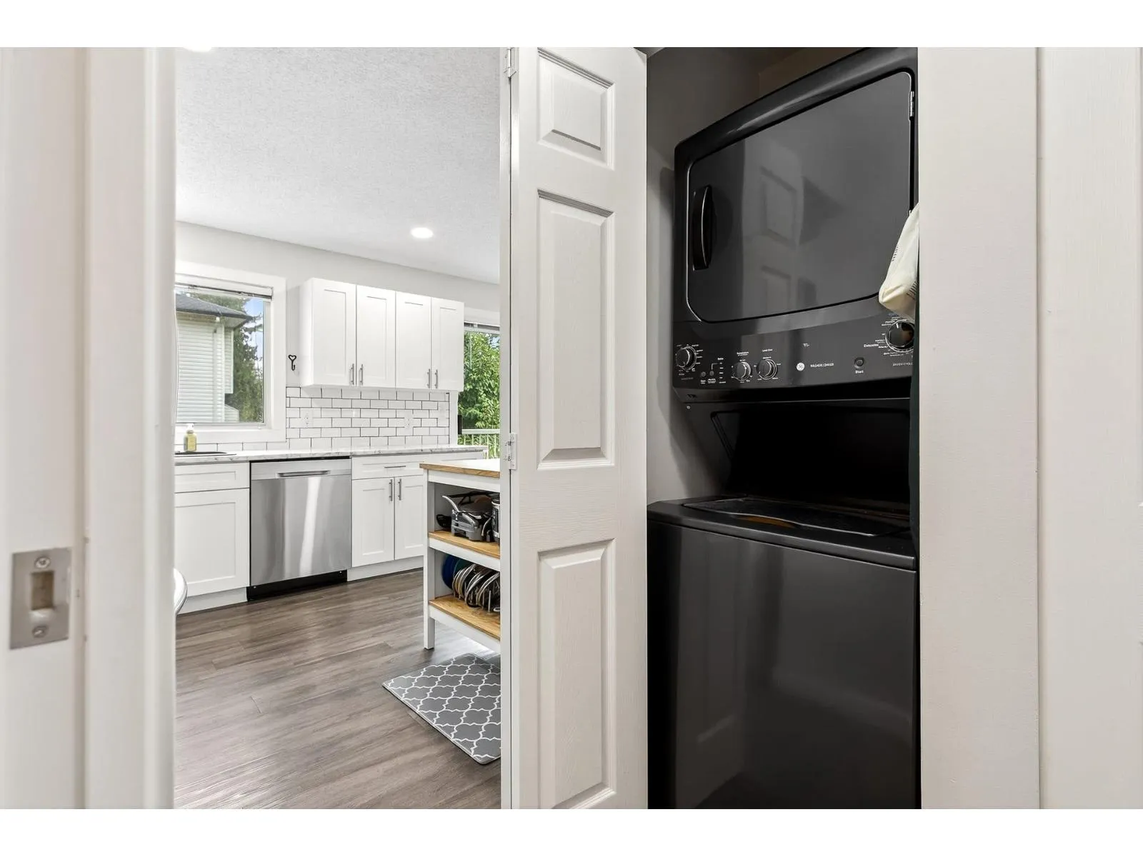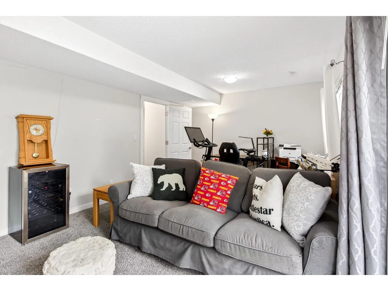 **Parkview Place** Spacious, Bright and updated END UNIT! Extensively renovated in 2021 including all white kitchen with S/S appliances, laminate flooring, baths, sinks, window blinds, pot lights & cozy gas fireplace. New (2024) hot water tank, two stage furnace + HEAT PUMP. Main level features living room with gas fireplace, dining room, updated kitchen + an eating area with access to the balcony. Upstairs has 3 spacious bedrooms including a primary suite with walk-in-closet + 2pc ensuite. Basement rec room + access to patio. Nice open yard, GARAGE and PET FRIENDLY! Close to bus, all levels of schools, shopping, Garrison Crossing, Vedder Crossing, parks and recreation including CULTUS LAKE! (id:27476)