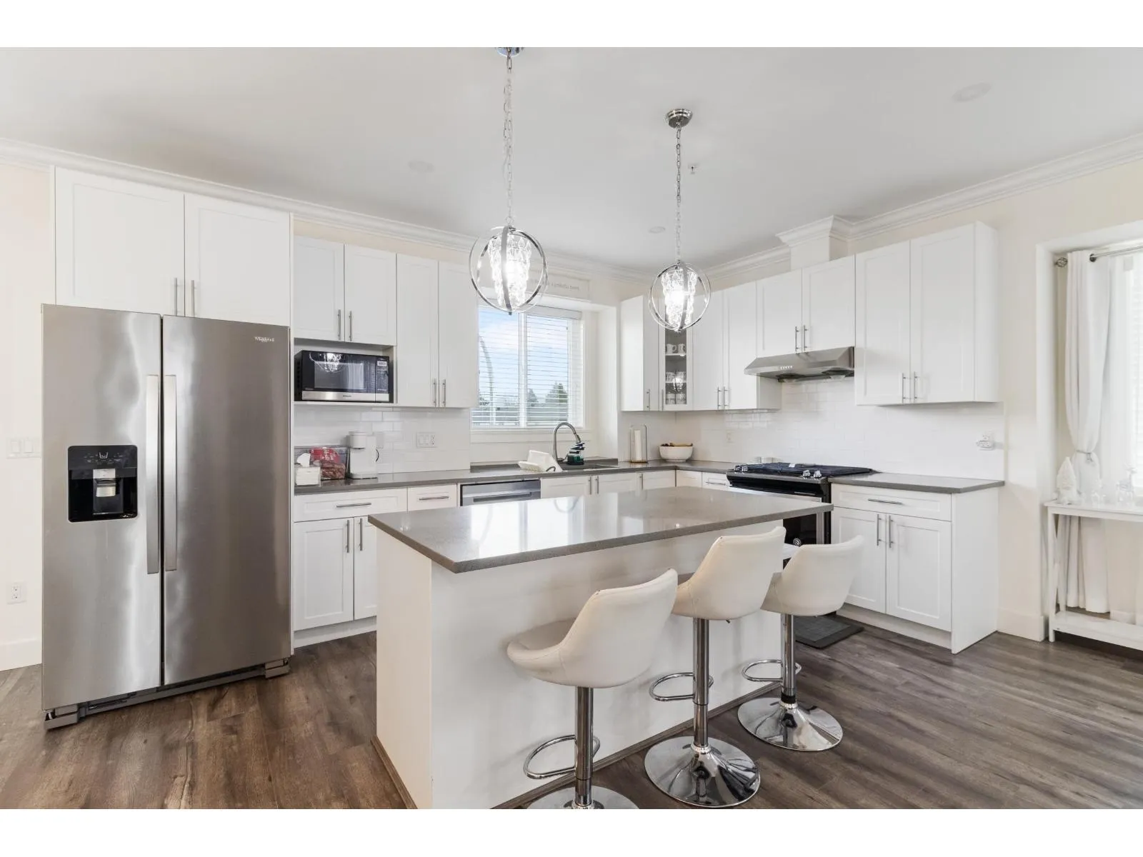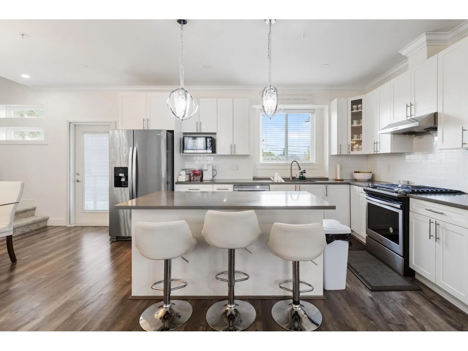 Openhouse- Nov. 15th Sat. 12-2 pm. Stop renting and start owning! This stylish, like-new townhome offers a smart square layout with 3 spacious bedrooms, a versatile rec room, and 3 bathrooms, plus convenient street-level entry and rear access. Enjoy bright open-concept living with a modern kitchen featuring granite countertops, sleek cabinetry, and stainless-steel appliances, along with a balcony perfect for coffee, BBQs, and entertaining. The primary bedroom includes a walk-in closet and private ensuite, and two generous bedrooms complete the upper level. A fully fenced backyard provides great outdoor space, and this boutique community of only four homes on a 10,500 sq. ft. lot offers privacy, a self-managed strata, and low fees. "- with no GST! (id:27476)