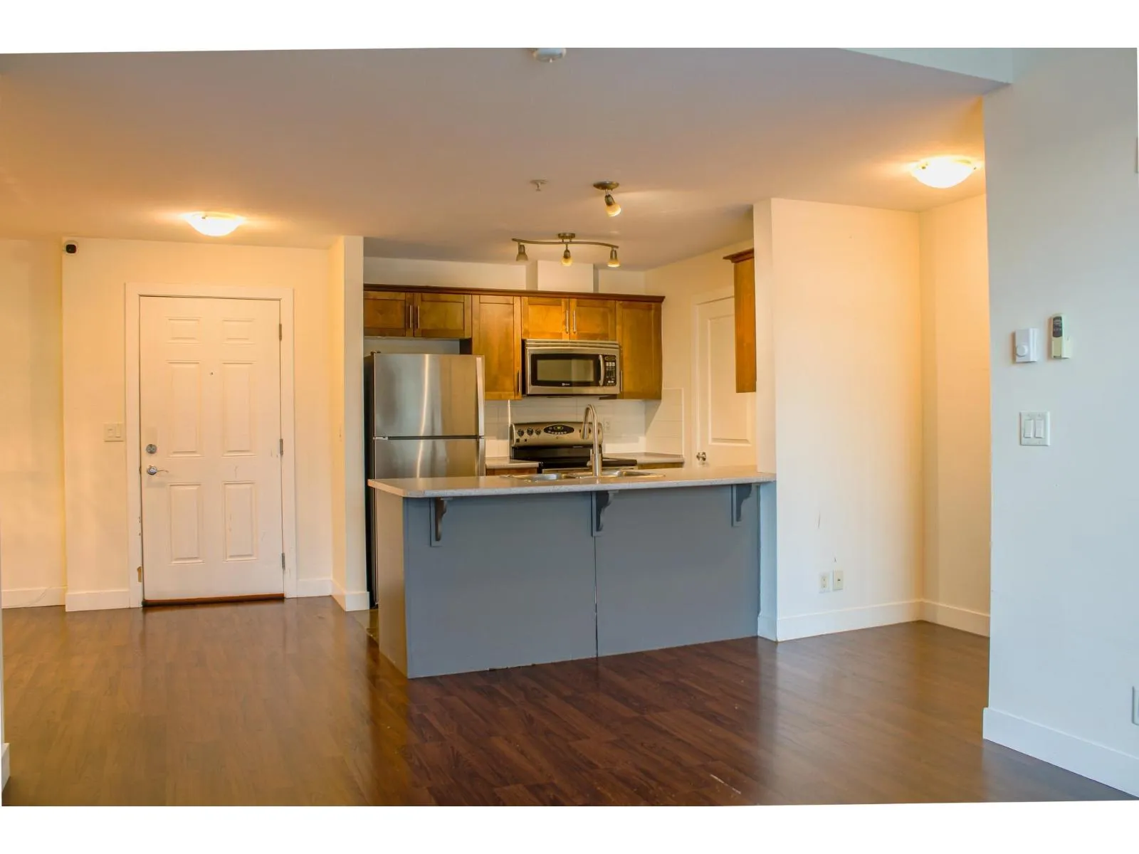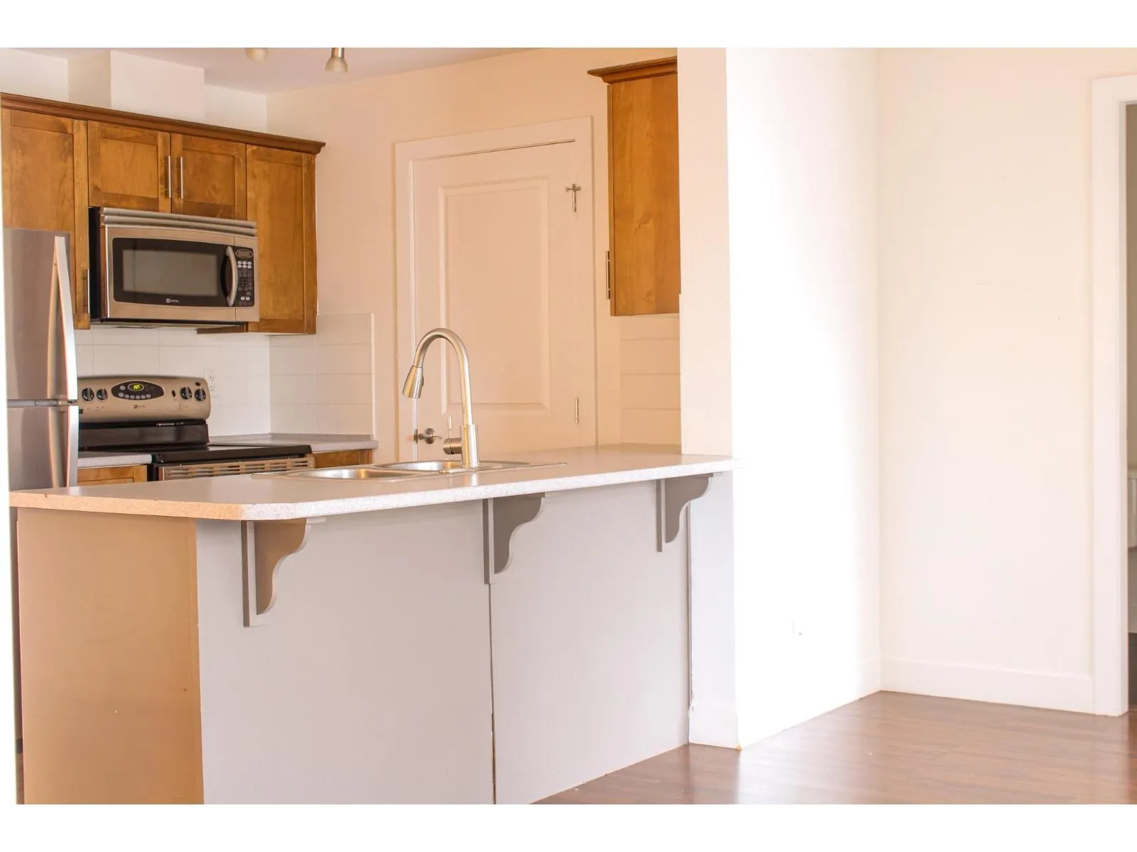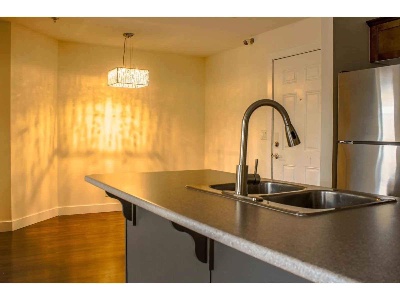 Top-floor 2 bed, 2 bath unit with soaring ceilings and mountain views! Vacant and CMHC-friendly"-perfect for first-time buyers. This bright, functional home features a massive laundry room, smart layout, and 2 parking spots. Located on the quiet side of the complex, just steps from transit, schools, the hospital, and the trendy new shops and restaurants at District 1881. Don't miss this rare top-floor gem! (id:27476)