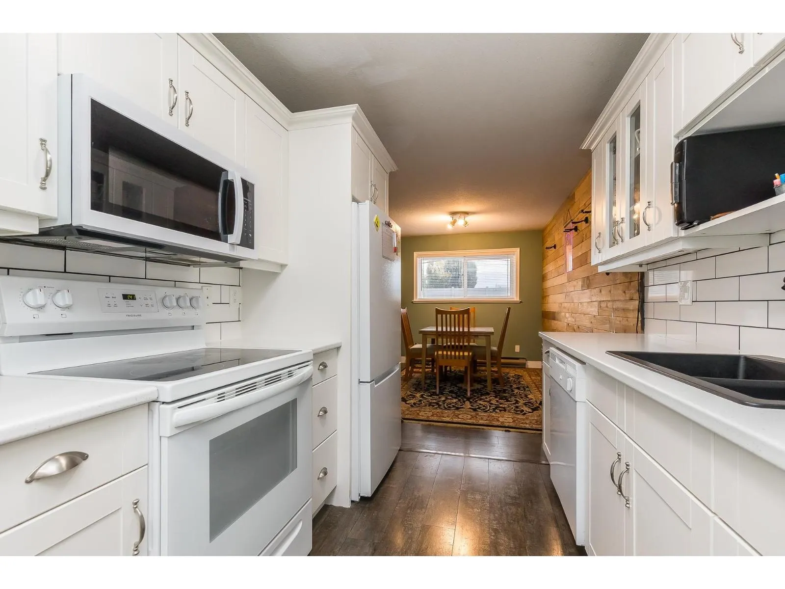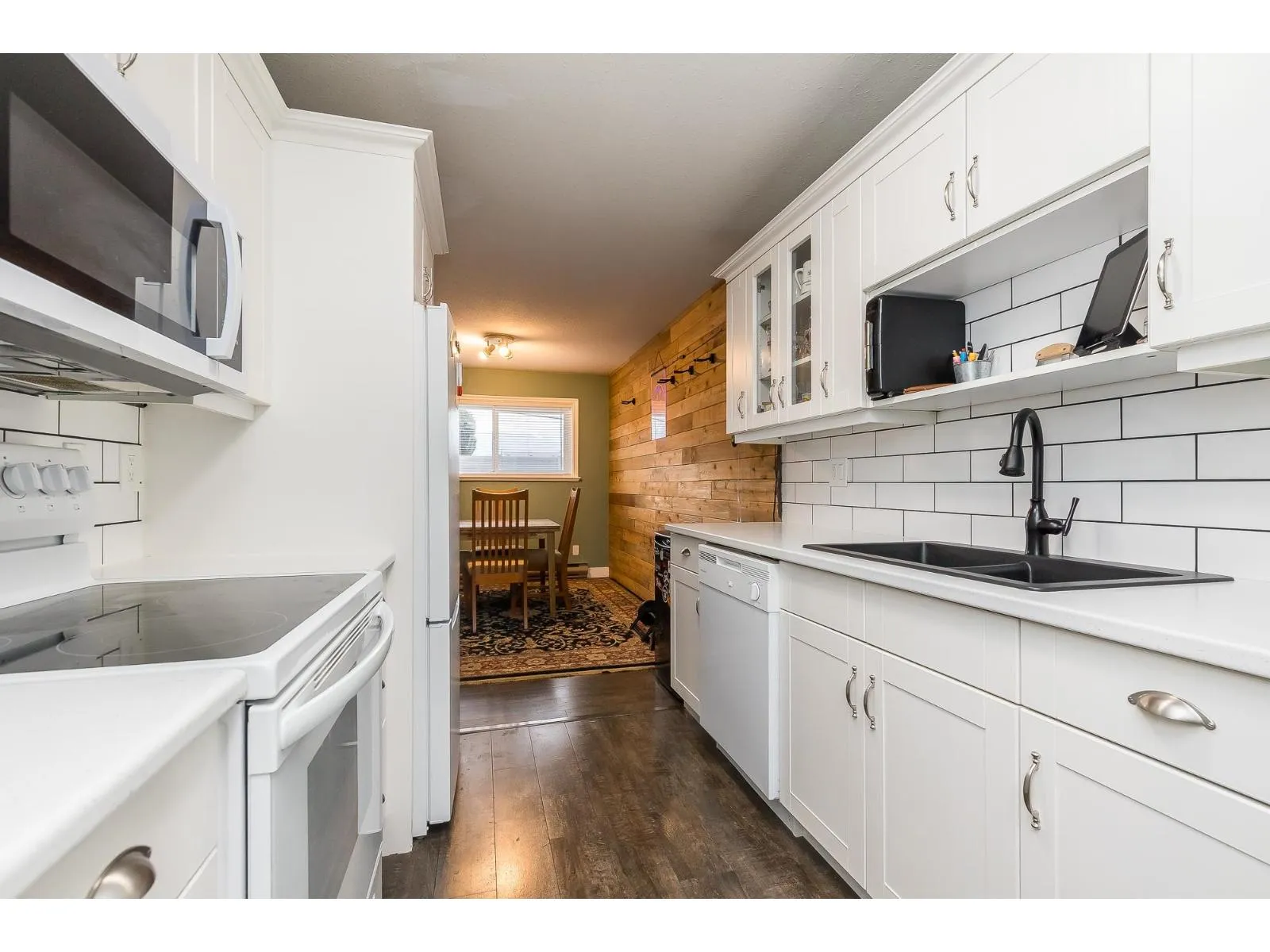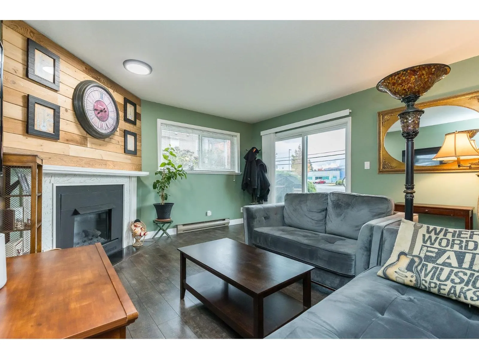 Looking for a great place to call home -"Hazeldene" that is centrally located close to parks, shopping, restaurants and close to the new DISTRICT 1881. This 2 Bedroom unit is nice and shows well. OVER 1000SQFT! !! WHEEL CHAIR FRIENDLY UNIT!! Come see the pride of ownership which shows with the updates over the last few years - newer WHITE KITCHEN cabinets, countertops, under cabinet lighting, custom sliding shelves, appliances , paint, laminate Flooring, Carpet in the primary bedroom, new beautiful modern light fixture, completely renovated bathroom. Living room features a fireplace and the unit has lots of natural light. This unit is also ONE OF THE few that has a covered garage parking spot. Great opportunity at an affordable price. (id:27476)