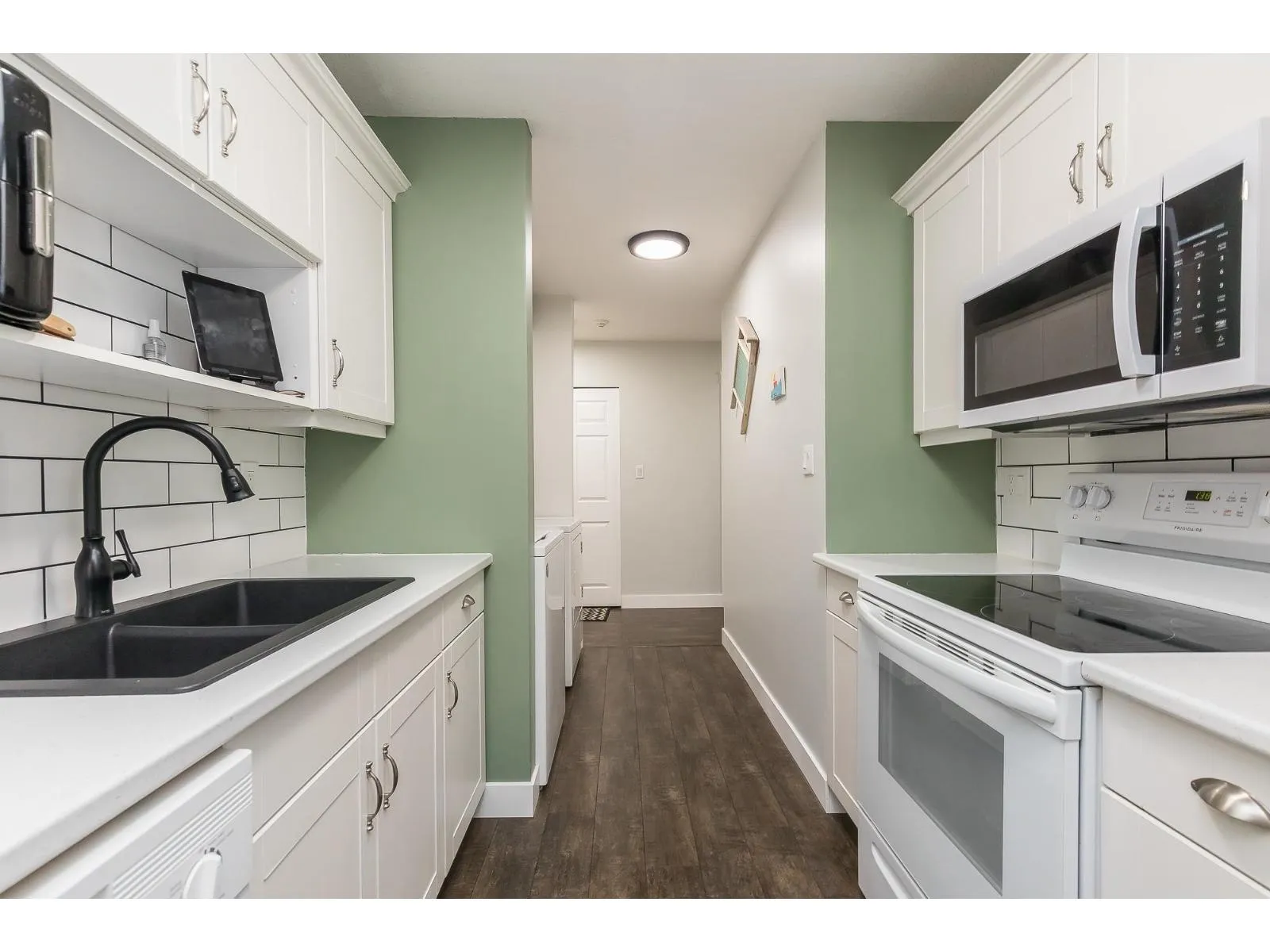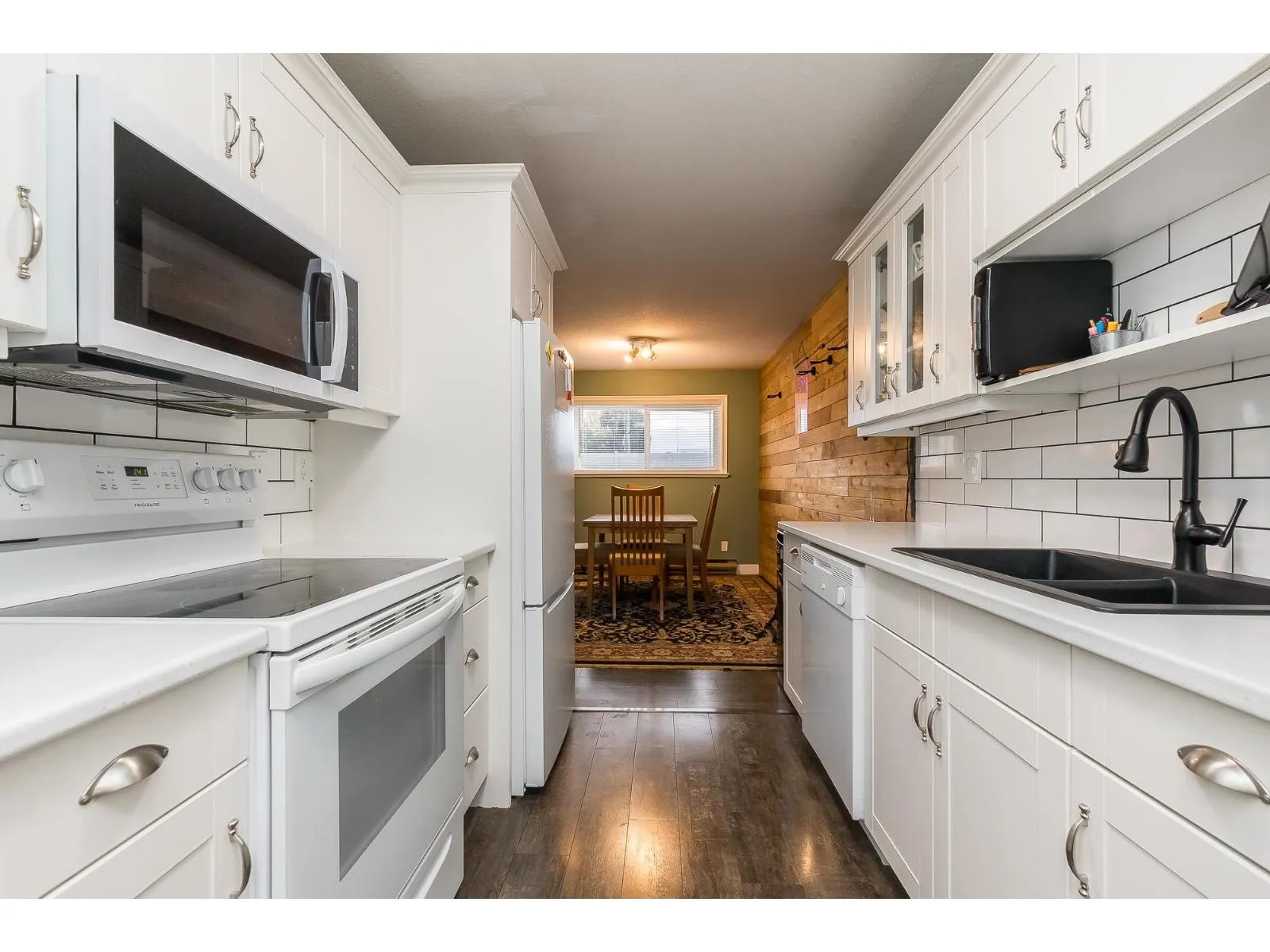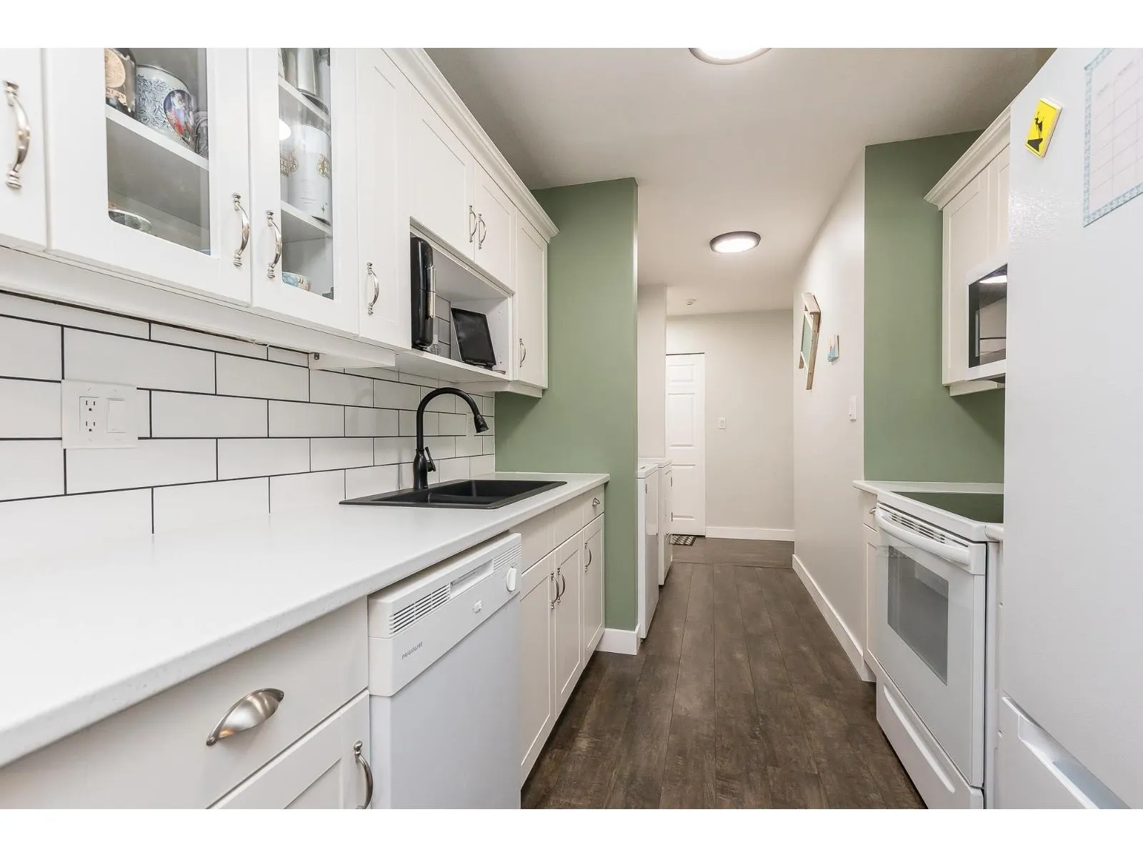 Looking for a great place to call home -"Hazeldene" that is centrally located close to parks, shopping, restaurants and close to the new DISTRICT 1881. This 2 Bedroom unit is nice and shows well. OVER 1000SQFT! !! WHEEL CHAIR FRIENDLY UNIT!! Come see the pride of ownership which shows with the updates over the last few years - newer WHITE KITCHEN cabinets, countertops, under cabinet lighting, custom sliding shelves, appliances , paint, laminate Flooring, Carpet in the primary bedroom, new beautiful modern light fixture, completely renovated bathroom. Living room features a fireplace and the unit has lots of natural light. This unit is also ONE OF THE few that has a covered garage parking spot. Great opportunity at an affordable price. (id:27476)