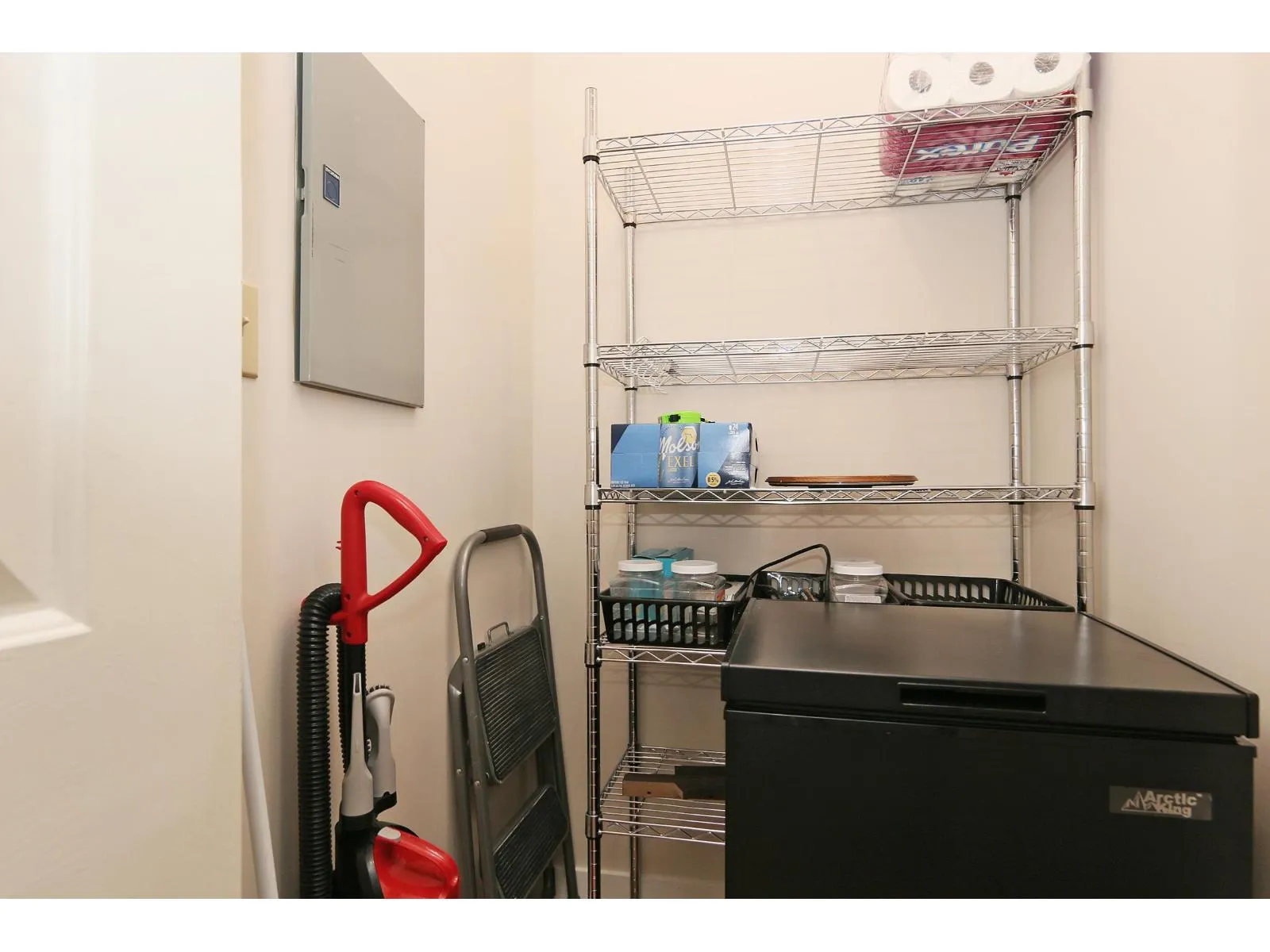 Bright and spacious 2 bdrm, 1 bath corner unit w/ new vinyl plank flooring, recently renovated and ready for you to make your new home.(We can even include the furniture!) Open floor plan w/ big, bright living room & dining open to kitchen. Updated kitchen w/ tile backsplash, b/i microwave, lots of counter space. Large pantry includes new freezer and lots of shelving. Enjoy your morning coffee on the patio w/ stunning mountain views. Storage is in no problem in the unit as well as 2 extra storage lockers, 1 outside your door. The building is very well run & great amenities room w/ pool table & big patios for entertaining. Secure u/g parking (1 spot), but who needs a car when you can walk to all great restaurants & shopping the area has to offer. Don't be shy...bring us an offer. (id:27476)
