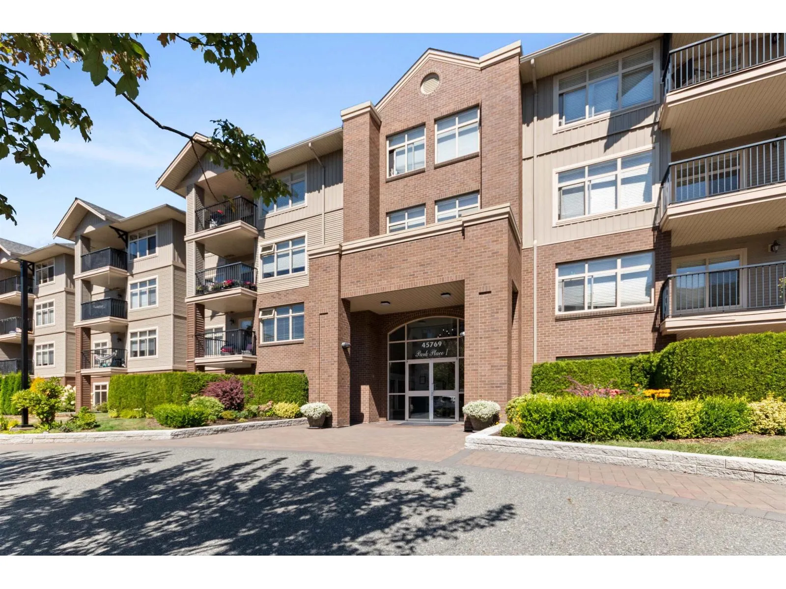 OPEN Sat 15th. 11:30-2:00pm. Sun 11-1pm. BEST VALUE IN SARDIS!! Immaculate 2 Bedroom, 2 full bathrooms condo. Great Sardis Location! Terrific floorplan! A bedroom & 'full' bathroom on "each side" of the large living room gives privacy/practicality! Mountain view from south facing sundeck! "Quiet" location less than "1" block walk tp Tim's, Pizza Hut, BMO & Shoppers Drugs in Vedder Pointe Shopping Center!! Great kitchen. Ample countertops. Breakfast Bar opens to the living room. Walk in storage, laundry & Pantry! His & hers closets to large '2 seat' shower ensuite! Only steps to Transit. Schools & recreation nearby! Dog & cat or 2 cats OK. Wheelchair friendly; Level access, open floorplan! U/G parking. 2 Elevators. Visitors parking at front entrance! Move fast for this super deal! (id:27476)