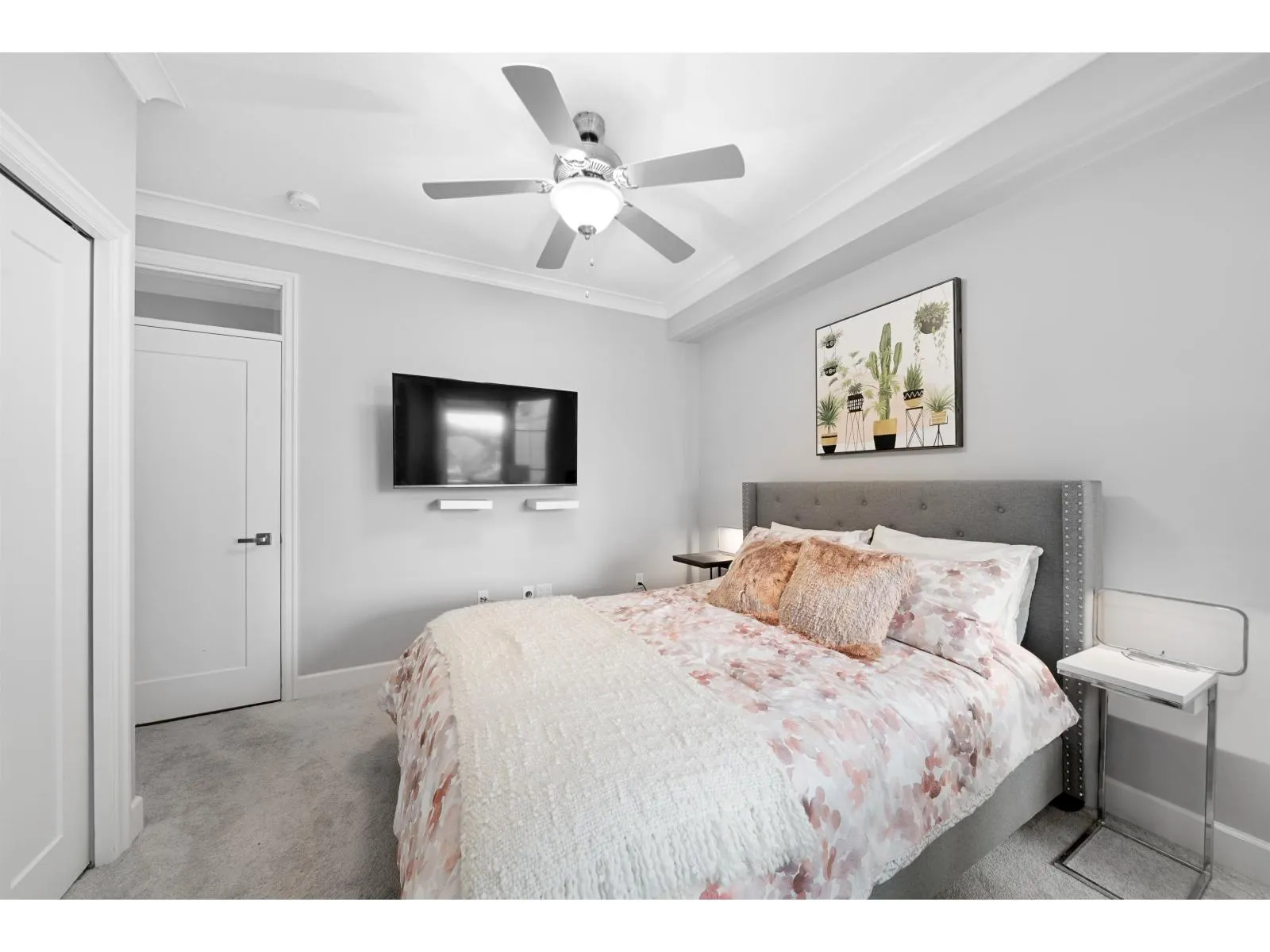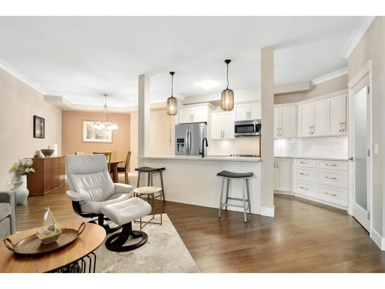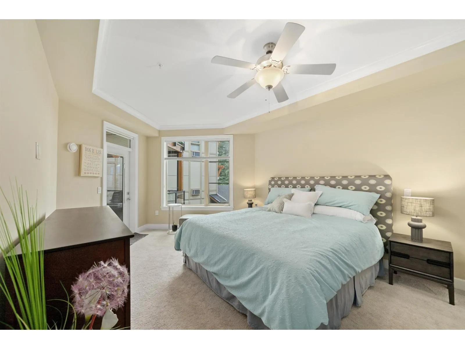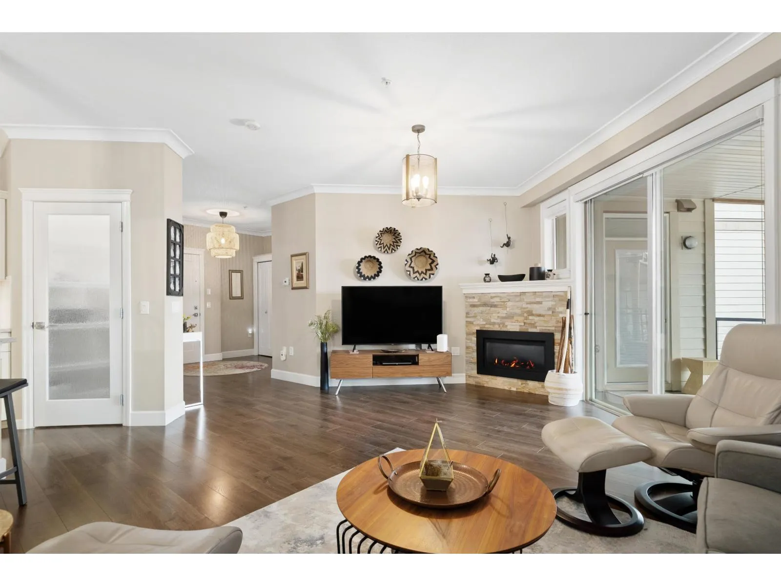 Englewood Courtyard "â master-planned, gated 45+ community near Garrison Crossing & Rotary Trail. Spacious inside corner unit, one of the largest in the building! Features 2 bedrooms + den, 2 baths, laminate flooring, 9' ceilings, quartz counters, maple shaker cabinets with roll-outs, pantry, under-cabinet lighting, and upgraded appliances. Includes 1 parking stall & 2 storage lockers. Large walk-in closet, A/C, gas fireplace, and gas BBQ hookup on the sunny patio. Enjoy the clubhouse, guest suites, RV parking"-a pet & people-friendly community! Call today to view. (id:27476)