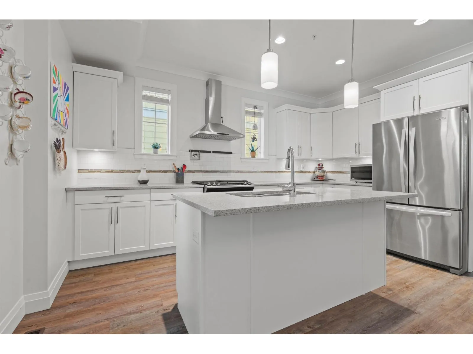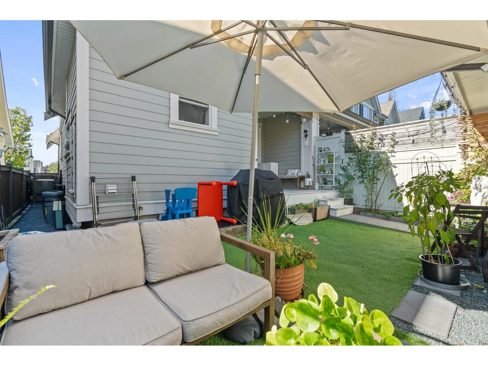This end-unit rowhome with no strata fees sits on highly sought-after Peach Road, just steps from the Vedder River and Rotary Trail. Featuring 4 bedrooms and 4 bathrooms w/ central A/C, it offers exceptional space, style, and location. The bright kitchen showcases granite countertops and a gas range, opening to the dining area and cozy living room with a gas fireplace. Upstairs are 3 spacious bedrooms, including a primary suite with ensuite and walk-in closet. The fully finished basement adds a large rec room, bedroom, and full bath - perfect for guests or family. Enjoy a private fenced yard, detached garage, and extra parking. Walking distance to Unsworth & Stito:s La:lem Toti:lt schools, this home combines comfort, community, and outdoor living by the river. BEST LOCATION IN CHILLIWACK! (id:27476)