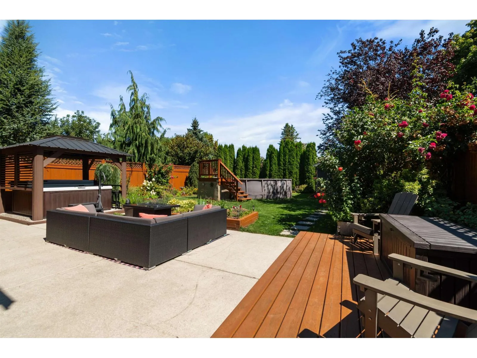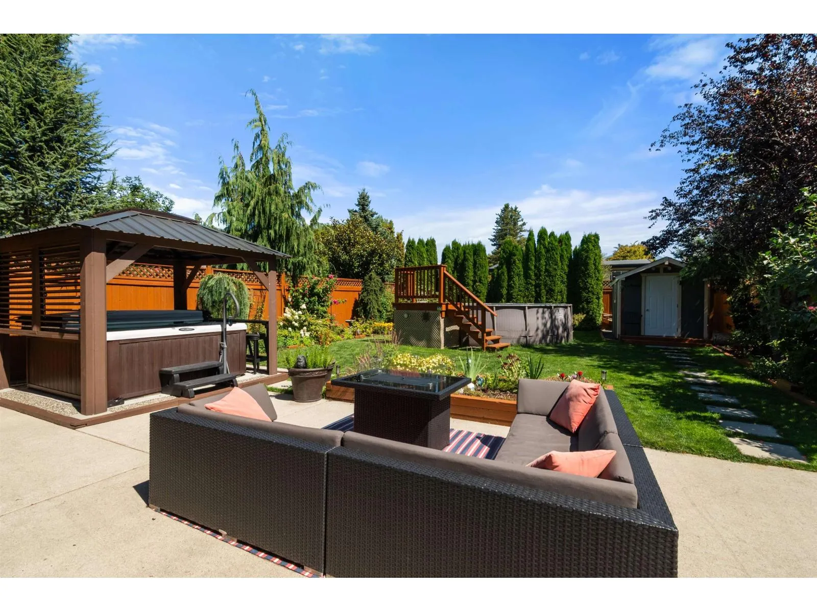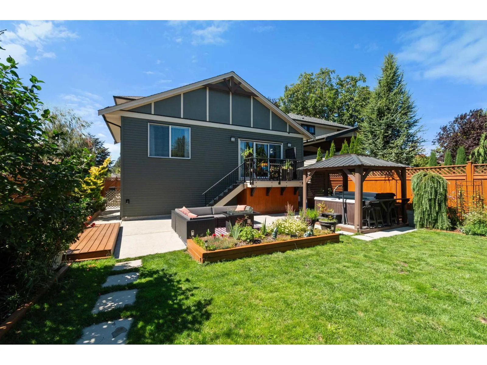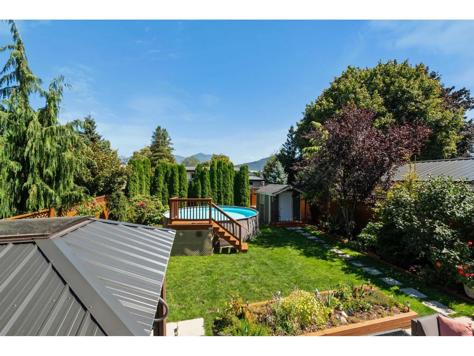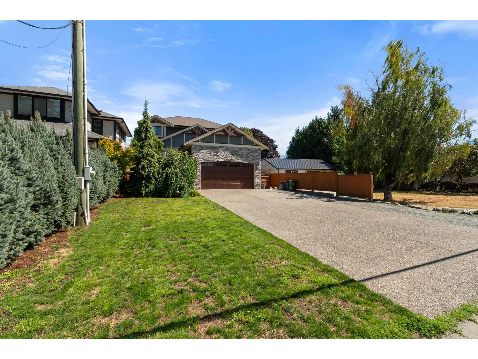 Located in a desirable area of Sardis, this 3,604sqft 2 storey w/basement home sits on a large lot and offers a total of 6 bedrooms and 4 bathrooms. This beautiful, like-new custom home has a legal 2-bedroom basement suite with separate access! The main floor boasts an open-concept design with a spacious great room, den, and a primary suite featuring a luxurious ensuite and walk-in closet. The stunning white kitchen includes stainless steel appliances (gas stove), stone countertops, tile backsplash, pantry, and rich dark flooring. Outside, enjoy a large, fenced yard with hot tub and take in the beautiful mountain views! Additional highlights include hot water on demand, air conditioning, laundry on both levels, double garage, RV parking & a garden shed. (id:27476)