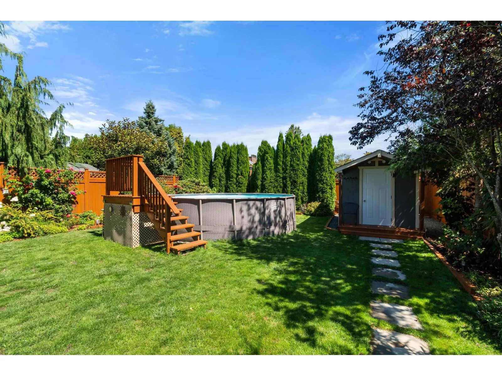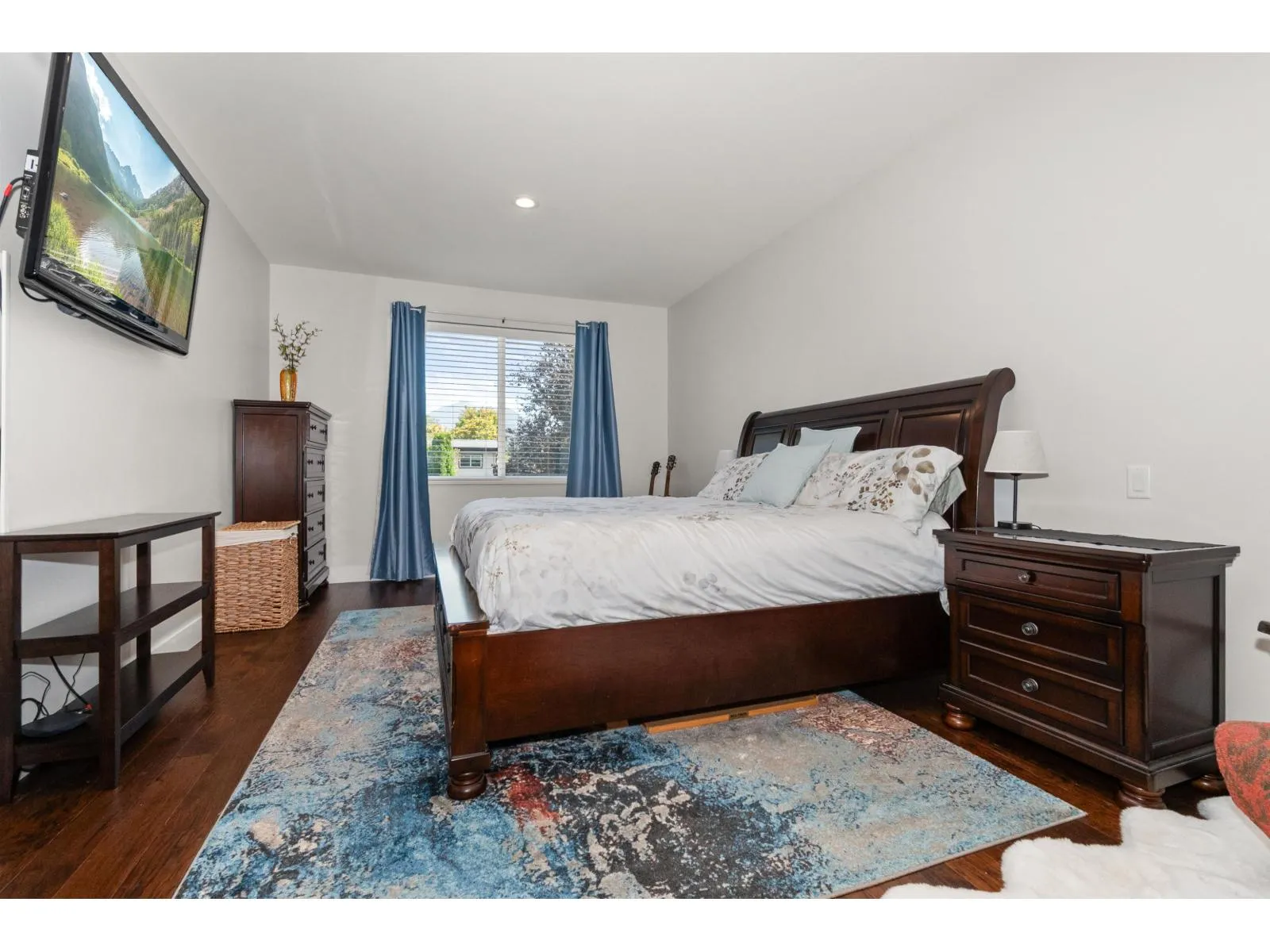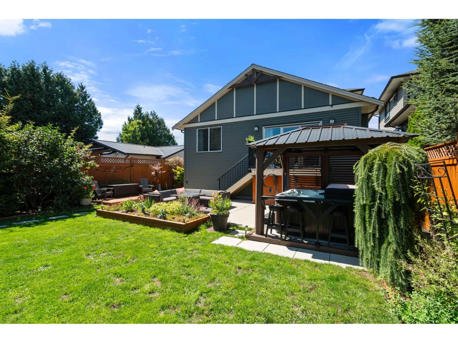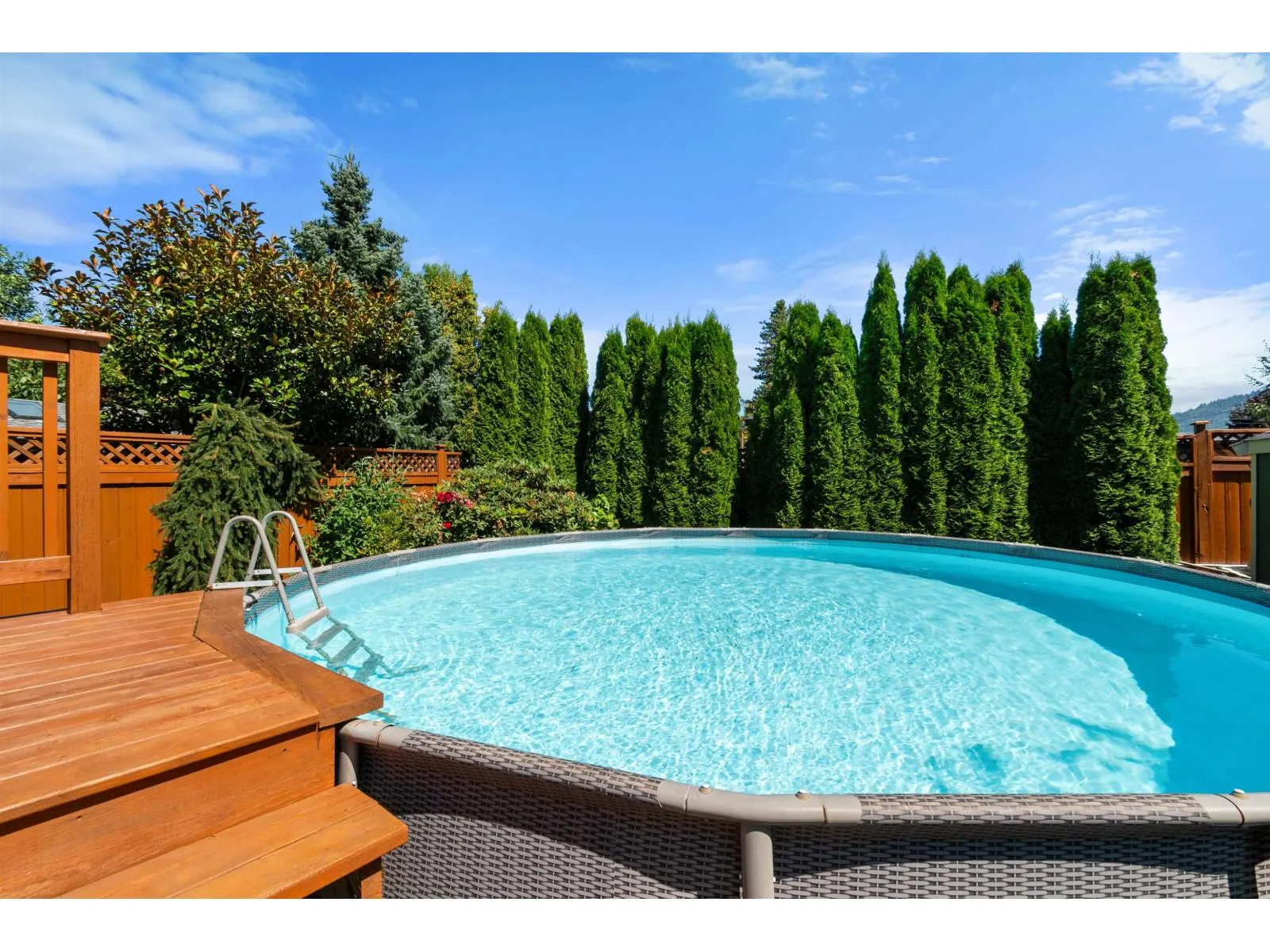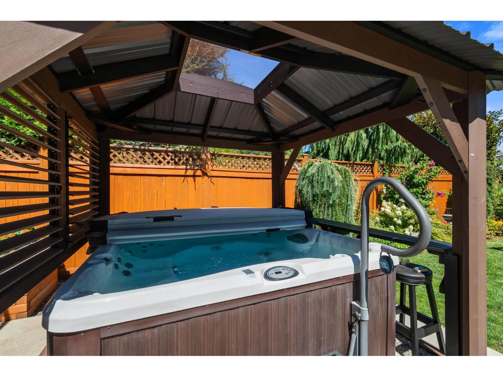 Located in a desirable area of Sardis, this 3,604sqft 2 storey w/basement home sits on a large lot and offers a total of 6 bedrooms and 4 bathrooms. This beautiful, like-new custom home has a legal 2-bedroom basement suite with separate access! The main floor boasts an open-concept design with a spacious great room, den, and a primary suite featuring a luxurious ensuite and walk-in closet. The stunning white kitchen includes stainless steel appliances (gas stove), stone countertops, tile backsplash, pantry, and rich dark flooring. Outside, enjoy a large, fenced yard with hot tub and take in the beautiful mountain views! Additional highlights include hot water on demand, air conditioning, laundry on both levels, double garage, RV parking & a garden shed. (id:27476)