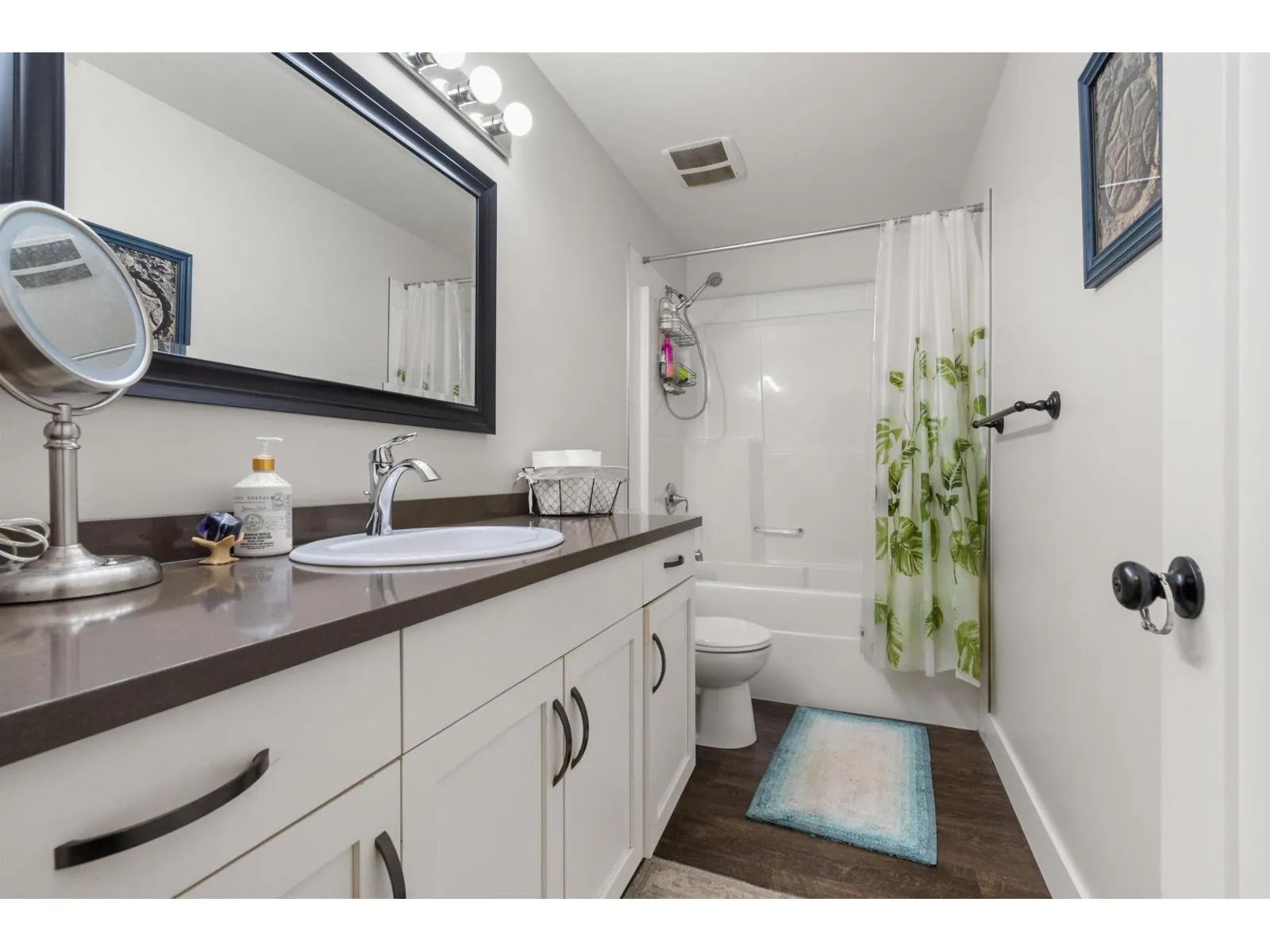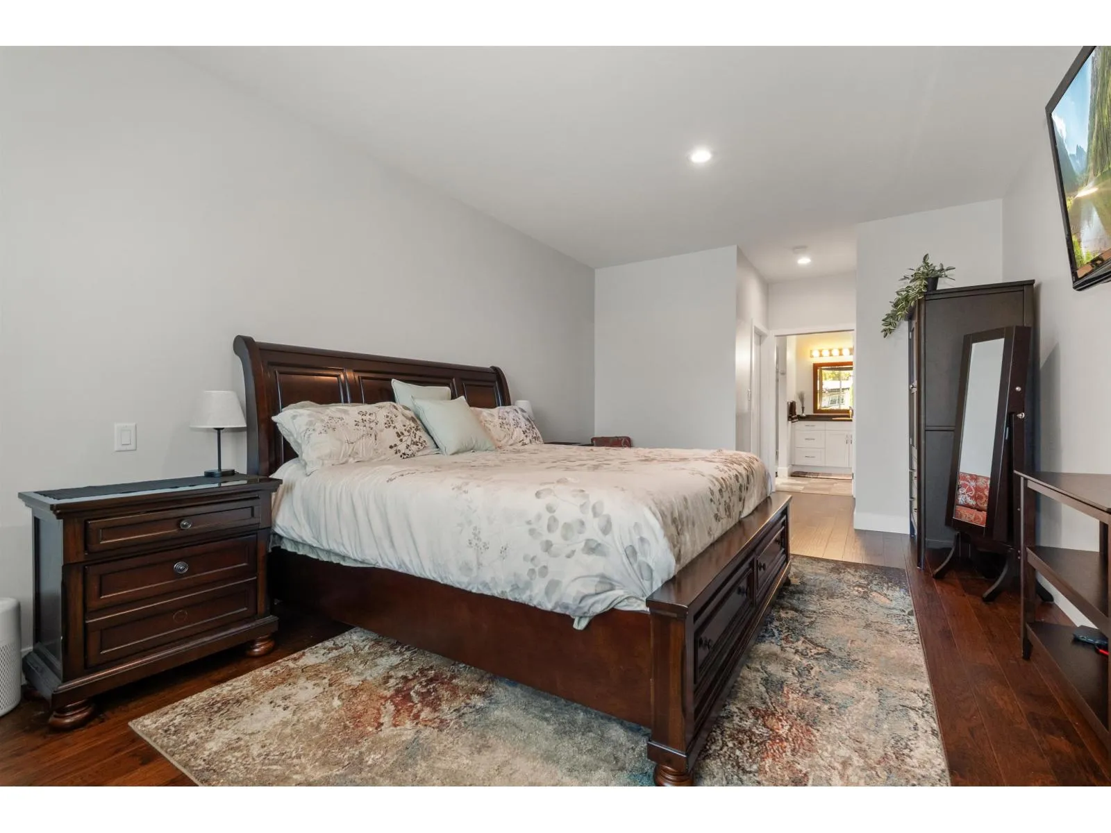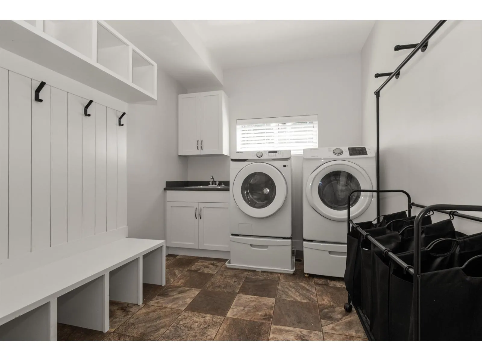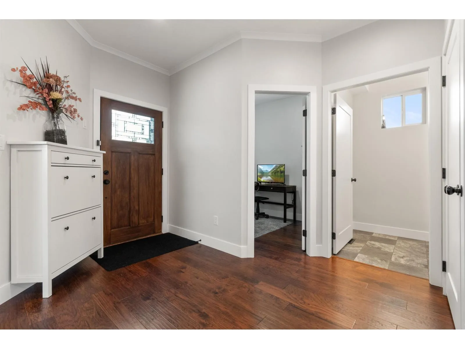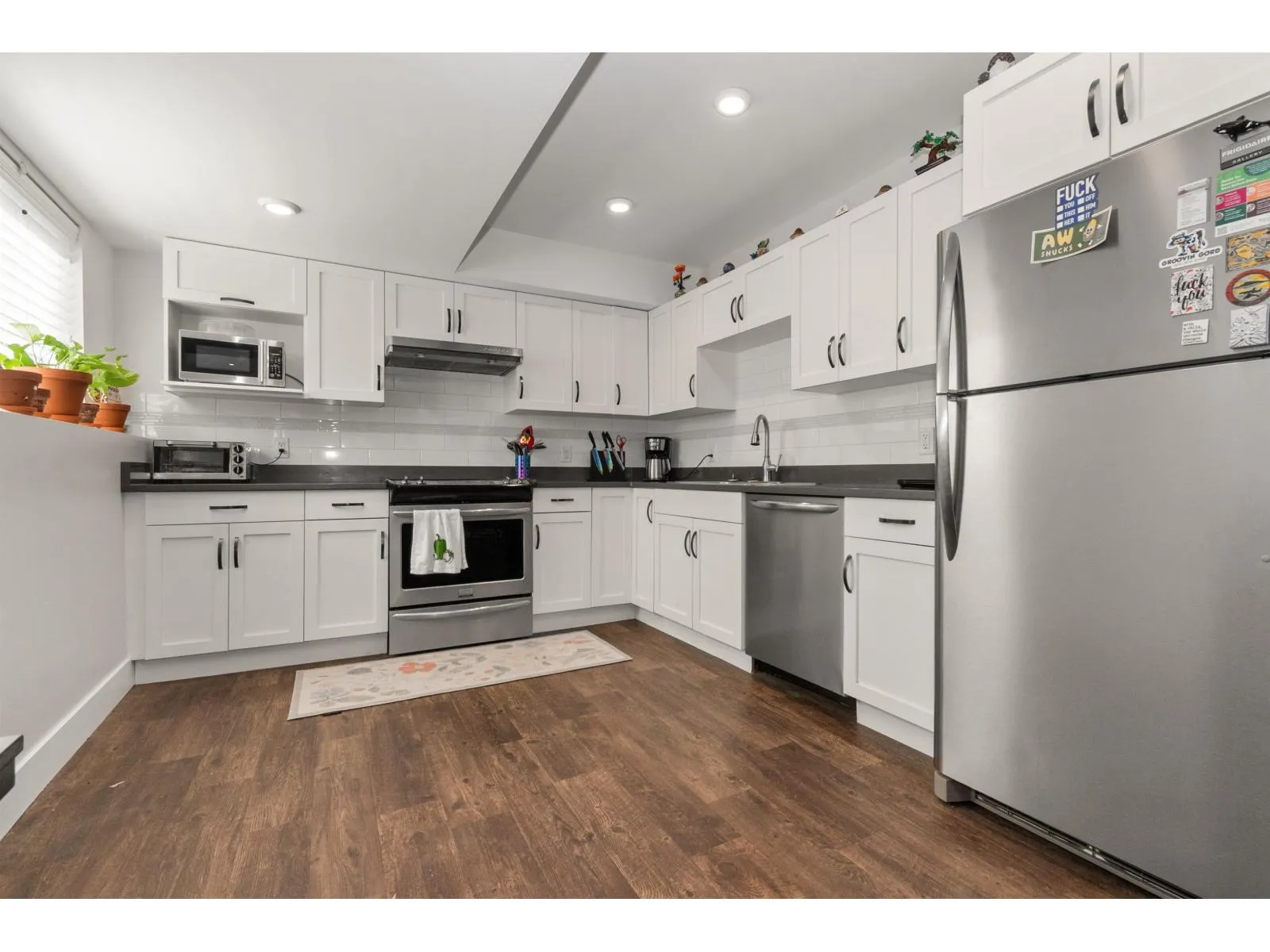Located in a desirable area of Sardis, this 3,604sqft 2 storey w/basement home sits on a large lot and offers a total of 6 bedrooms and 4 bathrooms. This beautiful, like-new custom home has a legal 2-bedroom basement suite with separate access! The main floor boasts an open-concept design with a spacious great room, den, and a primary suite featuring a luxurious ensuite and walk-in closet. The stunning white kitchen includes stainless steel appliances (gas stove), stone countertops, tile backsplash, pantry, and rich dark flooring. Outside, enjoy a large, fenced yard with hot tub and take in the beautiful mountain views! Additional highlights include hot water on demand, air conditioning, laundry on both levels, double garage, RV parking & a garden shed. (id:27476)