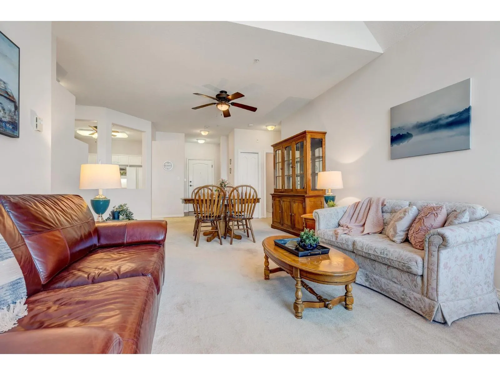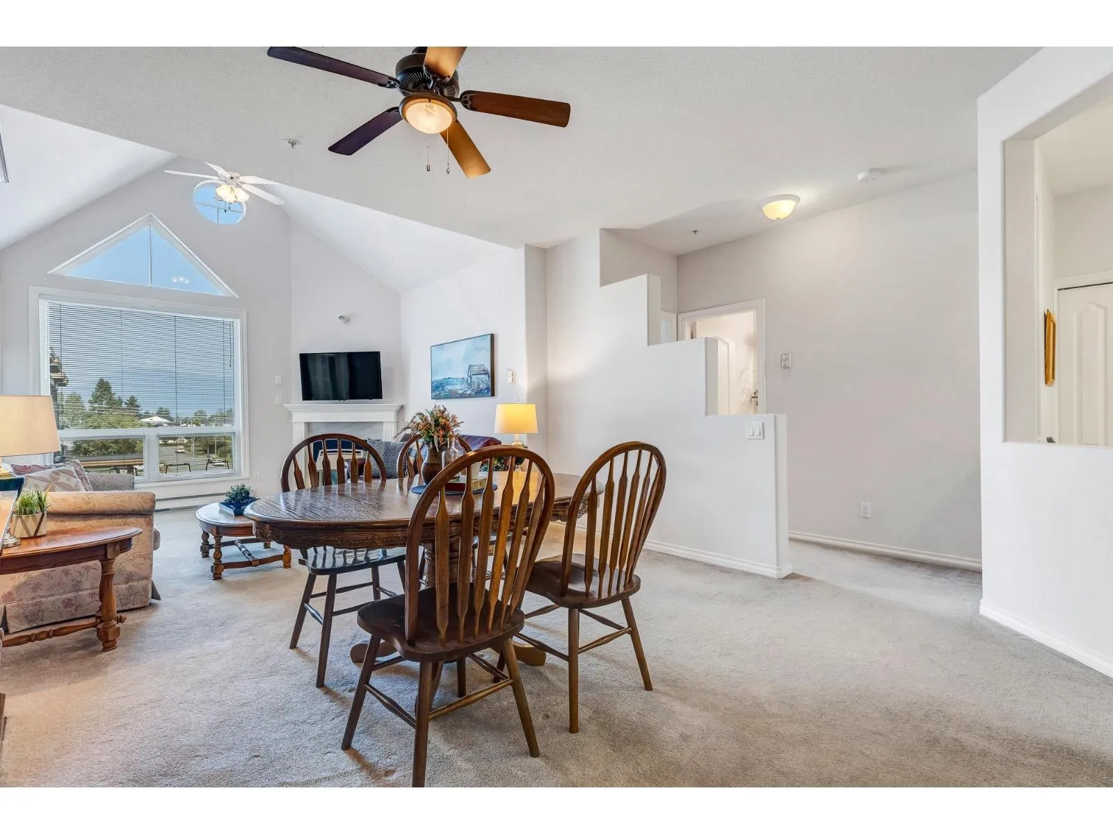 TOP FLOOR PENTHOUSE @ The Devonshire! Fabulous 2 bedroom and 2 bathroom condo in walking distance to the trendy DISTRICT 1881 with ample shops and restaurants. This building backs onto a park and is blocks from the Chilliwack Cultural Center, the Landing Leisure Center, Chilliwack curling club, pickleball courts- you name it! Step inside this PENTHOUSE unit and be amazed at the 12' vaulted ceilings, abundance of natural light, and great layout. Large rooms, spacious kitchen, & primary suite w/ dual closets & ensuite washroom. Well maintained home ready for your decorating touches! This building features underground parking, amenities, a guest suite, & is very well managed. 2 small pets allowed up to 15 lbs each and all ages welcome. * PREC - Personal Real Estate Corporation (id:27476)