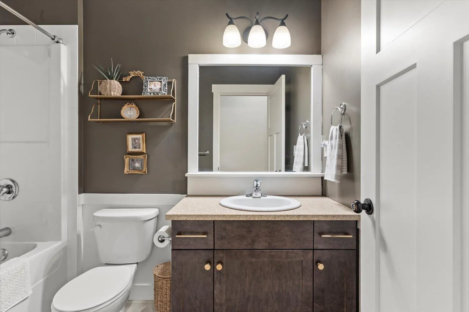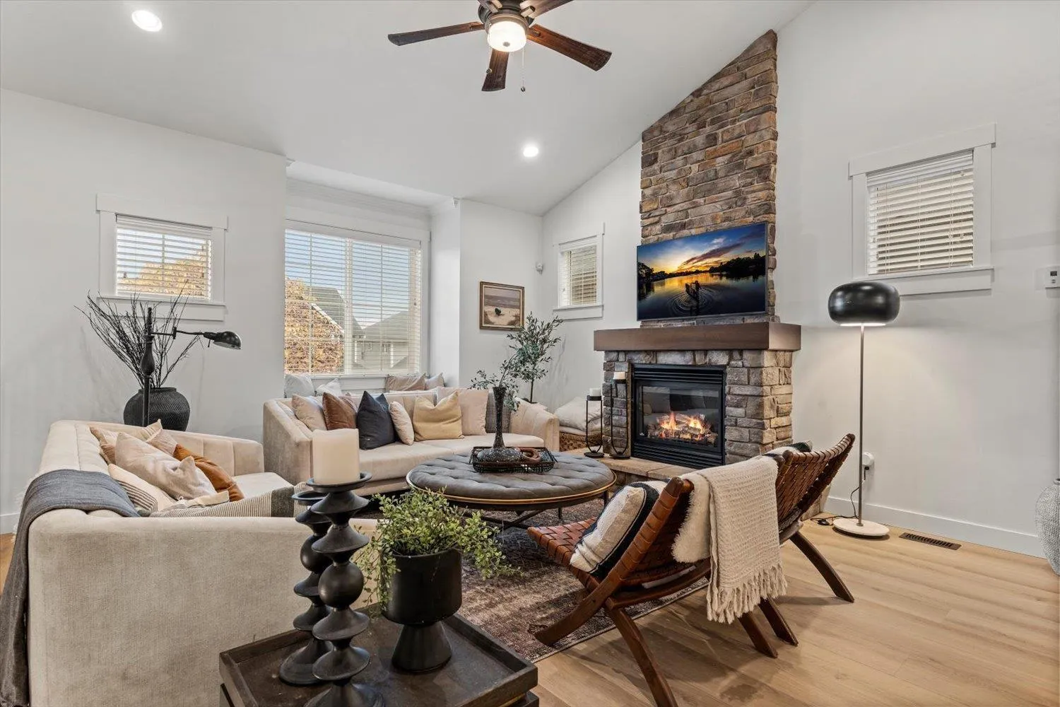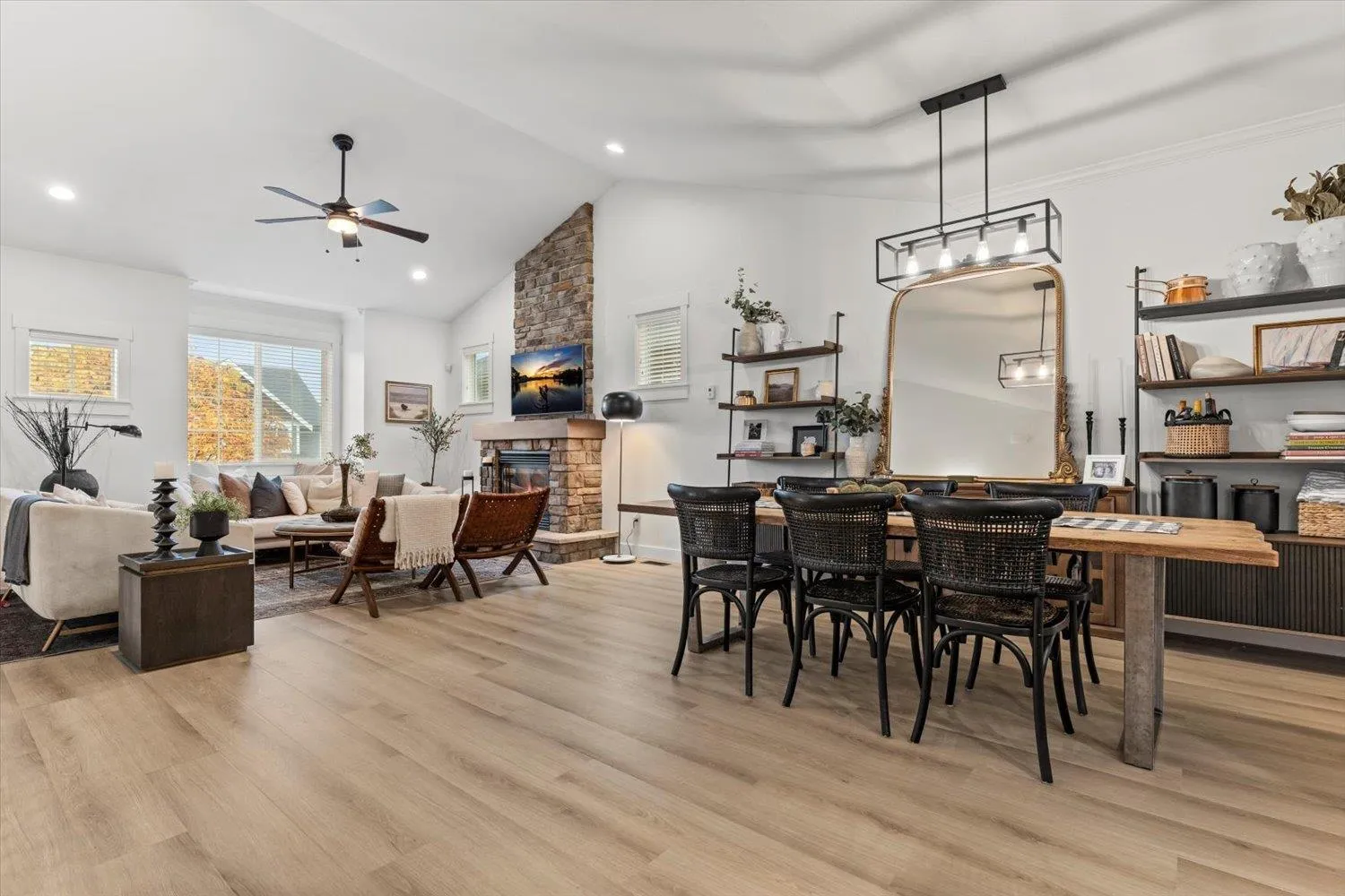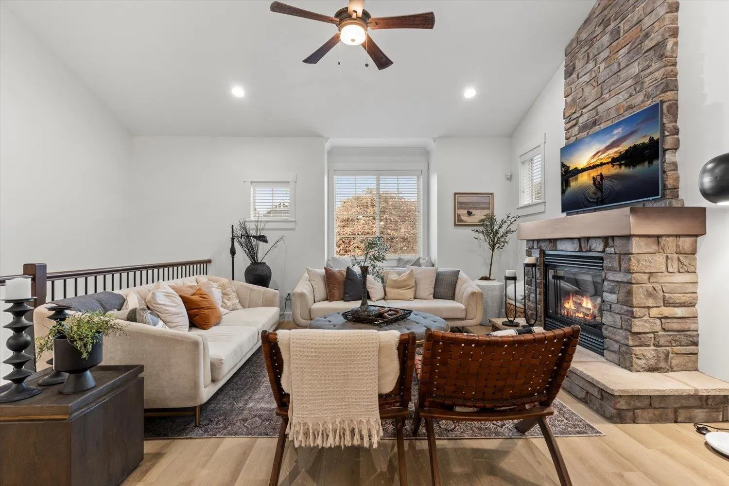 Vaulted ceilings, modern finishes, and a private backyard "- this 5 bed, 3 bath Promontory home has it all. Complete with mountain views, this family-friendly residence offers space, style and flexibility. The bright, open-concept kitchen features stainless steel appliances, a large island and seamless flow into a stunning living room with vaulted ceilings and a stone-accented gas fireplace. Step outside to your fully fenced, tree-lined yard with hot tub - relax enjoy! Upstairs, three spacious bedrooms include a luxurious primary suite with a walk-in closet, double vanity and walk-in shower. The lower level has a separate entrance, office and 2 bedrooms plus rough-ins to create a 1 bedroom suite "- perfect for guests or extra income potential. (id:27476)