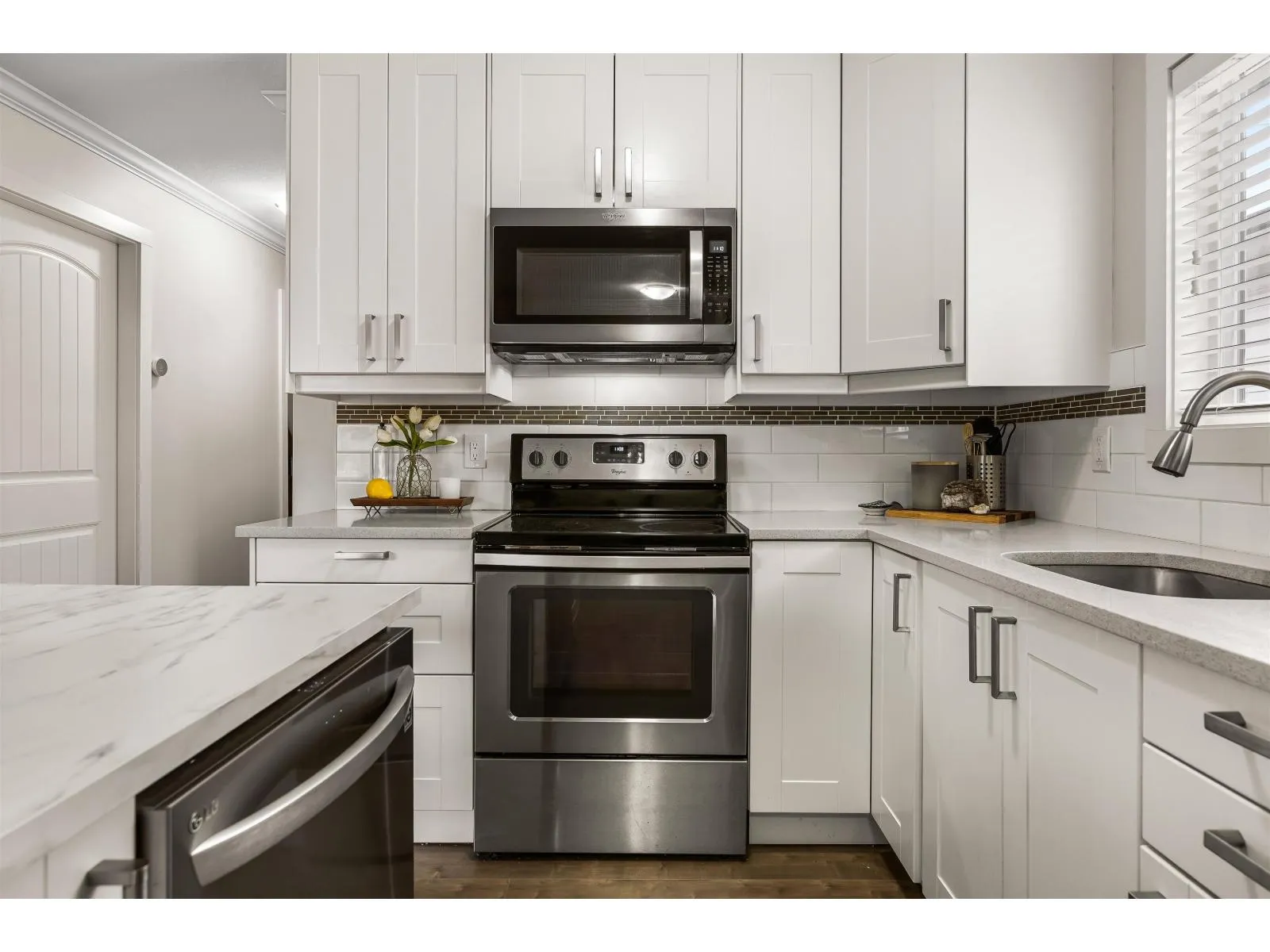 WELCOME HOME! This CHARMING 2 bed, 2 bath detached rancher-style townhouse is tucked away in a sought-after Sardis location. Enjoy a bright, well-maintained home with a smart layout and modern touches, including kitchen island with built-in dishwasher & eating bar, quartz countertops, soft close shaker cabinets, and newer stainless steel appliances! The SPACIOUS primary suite features a walk-in closet and FULL ensuite. Not to mention, covered parking, generous storage shed, no age restrictions, and two pets of any size allowed! Just STEPS from the Vedder River, walking trails, world-class fishing, Cultus Lake, and Garrison Village this home offers comfort, convenience, and an unbeatable lifestyle! * PREC - Personal Real Estate Corporation (id:27476)
