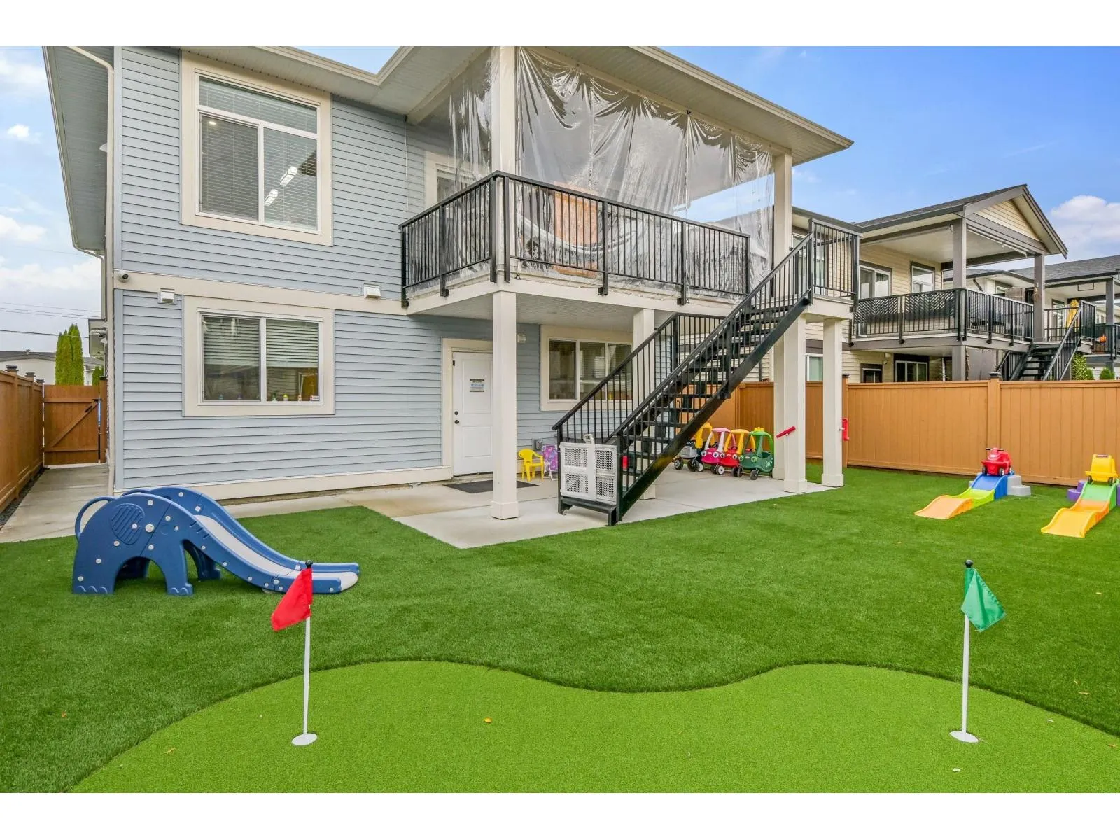WALK TO WORK!!!! Looking for that Modern Daycare that also has a newer 1344 Sq Ft, 3-Bedroom, 2 Full Bathrooms Upper Residence, which also boasts a spacous bright Kitchen with an Island and a walk-in Pantry. Both the Diniroom and Livingroom with a Gas Fireplace, opens to a covered sundeck overlooking the backyard. The Master Bedroom has both a large Ensuite and a walk-in closet and the 2 extra bedrooms are good sizes as well. This handicap-accessible Daycare is Zoned through a (TUP) Tempory Use Permit.....and allows for 20 children. All Equipment used for the Daycare is included and the backyard also has a 878 Sq Ft playground and a 276 Sq Ft Giggle Room for the childrens use. Ample parking is available for both the Residence and the Daycare. Great Revenue Maker, with the allowance of 20 Children and plus the ability to live on site with all Revenues paying down your mortgage, paying yourself and staff, and yes, You get to live and work happily ever after in this beautiful home and home-based business!!! (id:27476)