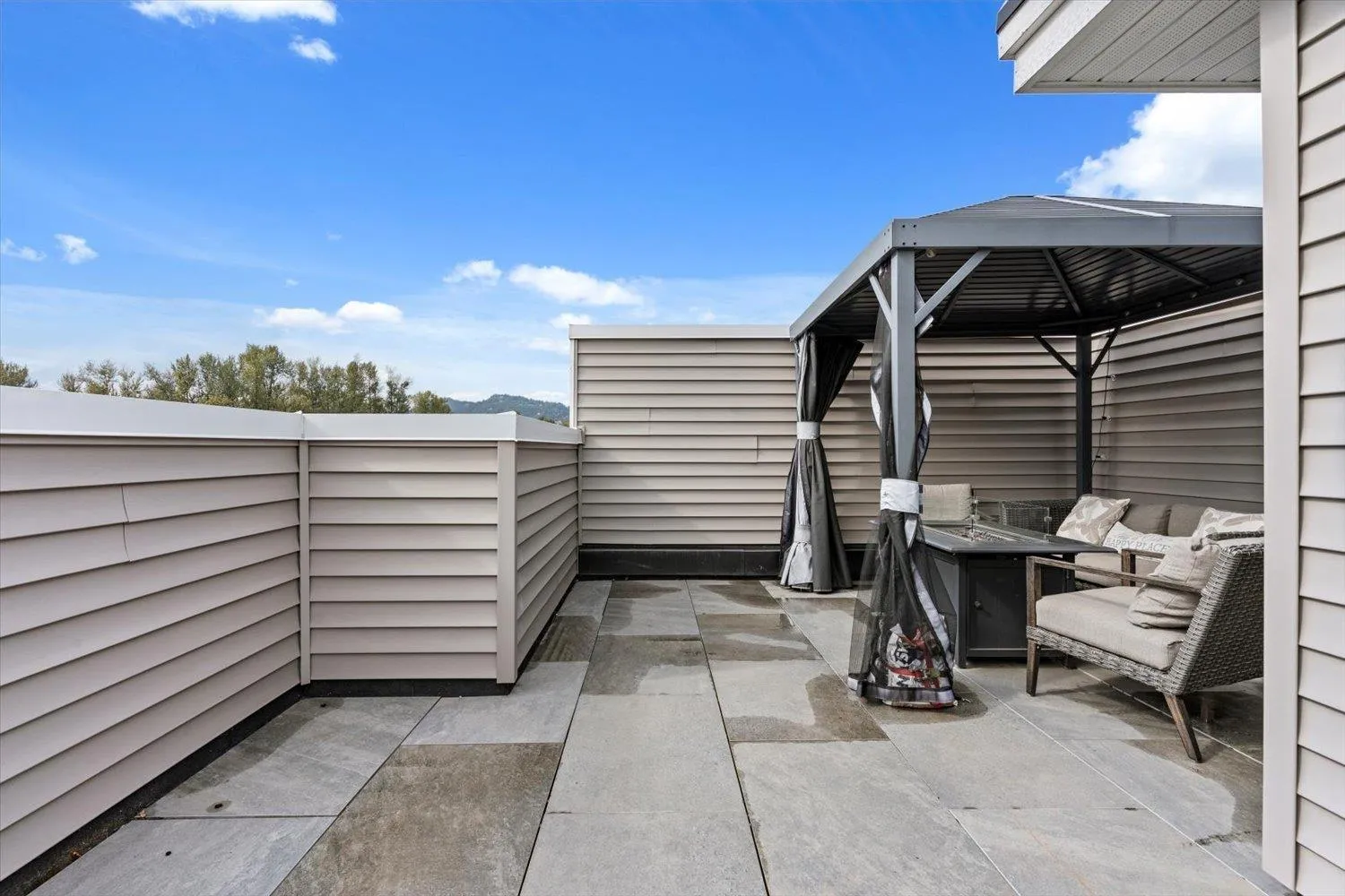 Midtown 2 STUNNER! This BRIGHT & SPACIOUS 3bd/3ba CORNER END UNIT townhouse has it all. OPEN CONCEPT main floor featuring quartz counters, gas range, SS appliances, custom wall accents, cozy FIREPLACE & convenient powder room on the main. BRAND NEW hot water on DEMAND! Upstairs you'll find 3 bedrooms including a LUXURIOUS primary retreat w/ walk-in closet w/ built-ins, double-sink ensuite & BALCONY. Head up to your very own ROOFTOP PATIO boasting MOUNTAIN VIEWS"-perfect for morning coffee or evening sunsets. With a side-by-side double garage, low strata fees, and being PET & RENTAL friendly (2 dogs/cats, NO size restriction) & A/C for comfortable summers, this home truly checks all the boxes. Meticulously cared for, move-in ready & located minutes away from schools, parks, shopping & HWY 1! (id:27476)